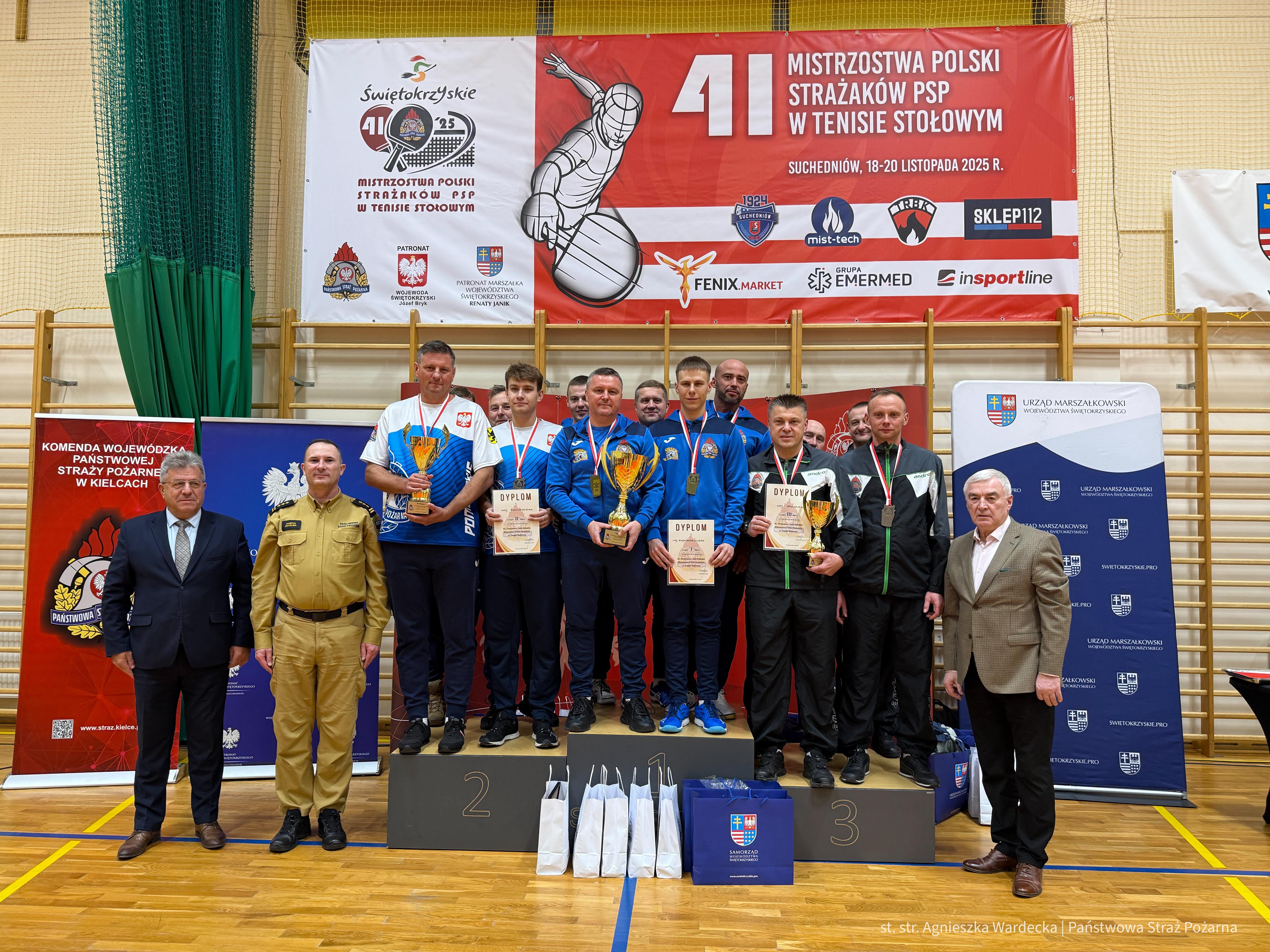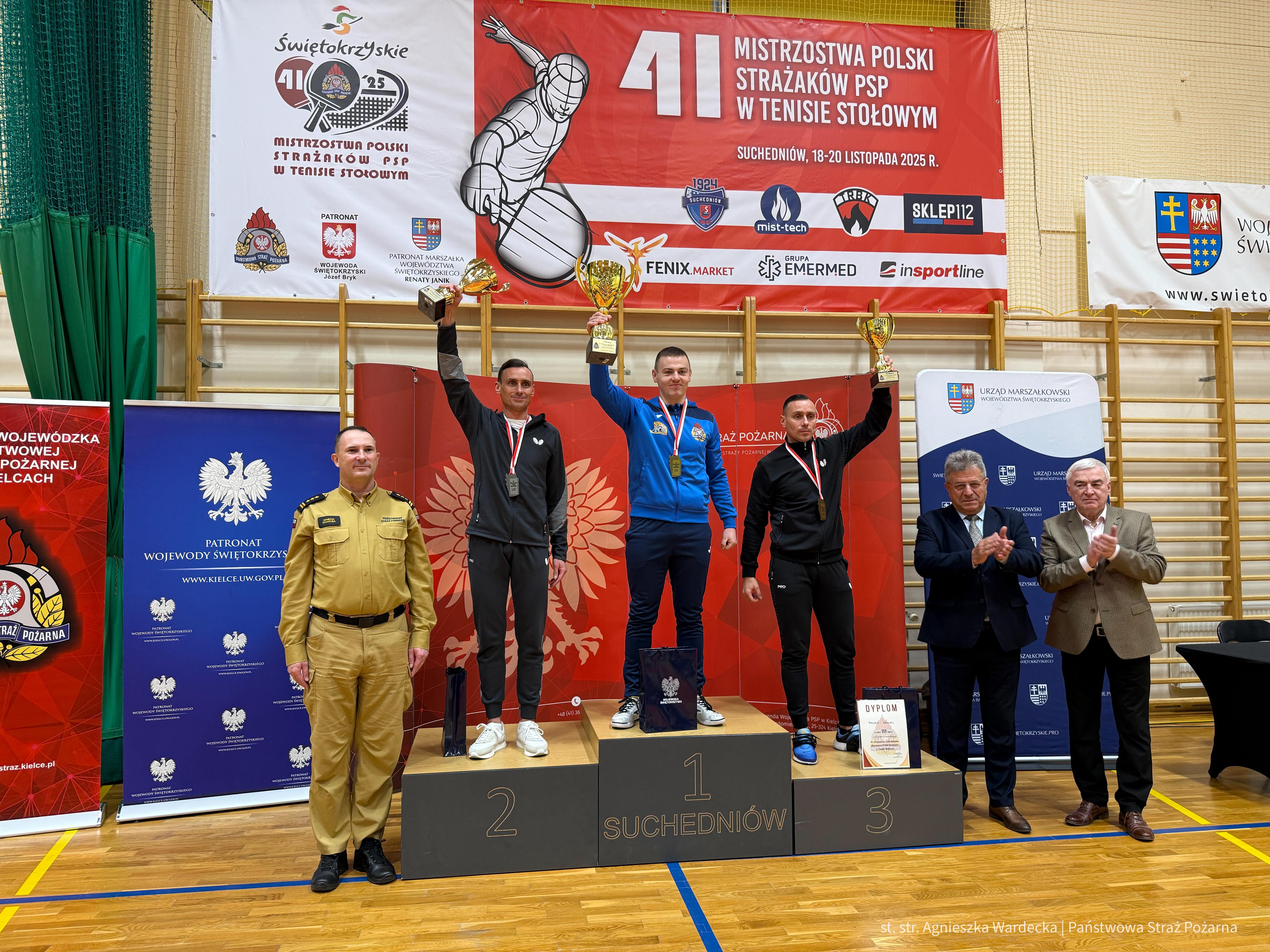 Zakończyły się 41. Mistrzostwa Polski Strażaków PSP w Tenisie Stołowym w Suchedniowie. W dniach 19-20 listopada 2025 r. w Suchedniowie (pow. skarżyski) odbył się dwudniowy Turniej. Do rywalizacji przystąpili reprezentanci komend wojewódzkich i szkół pożarniczych, konkurując o tytuły mistrzów Polski w kategoriach indywidualnych i drużynowych.