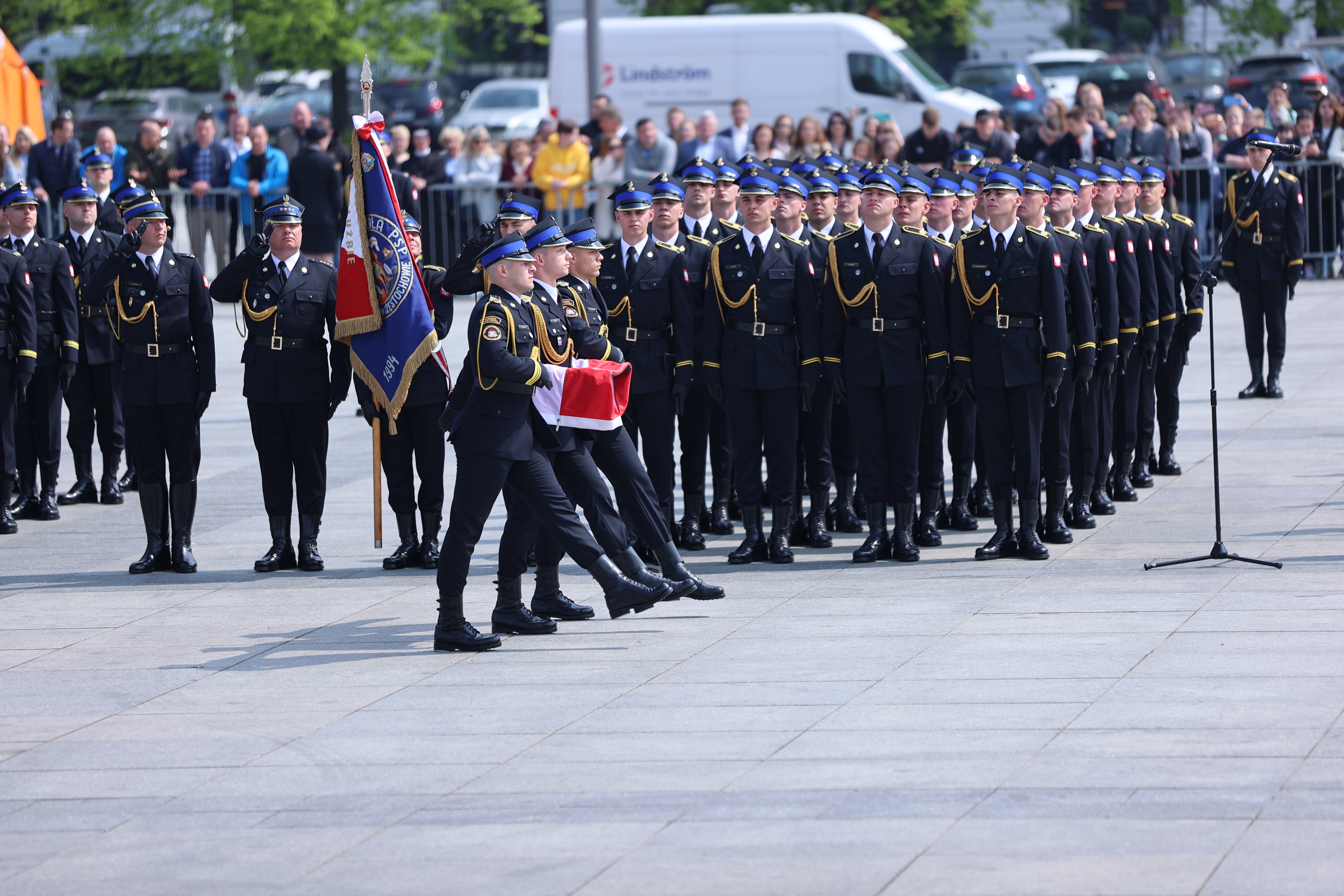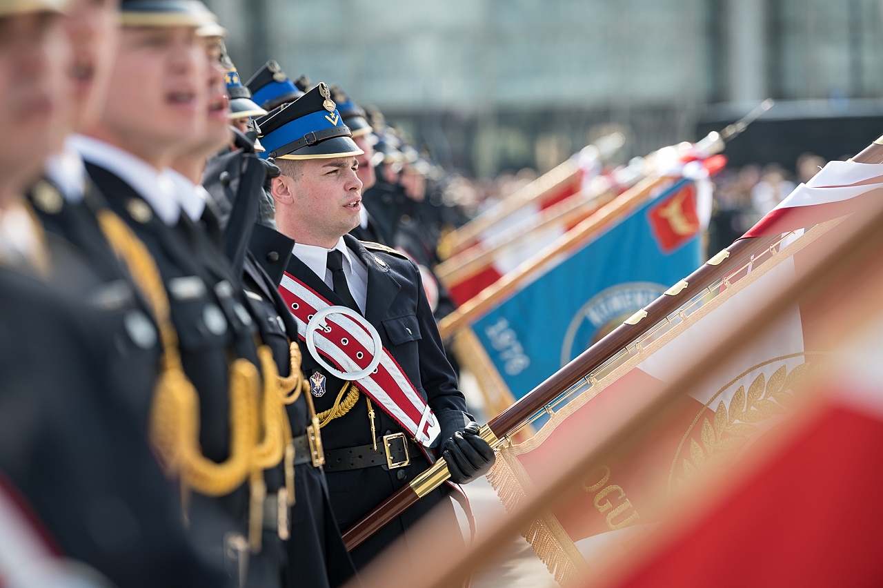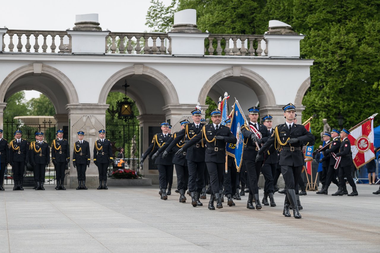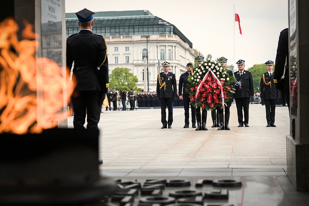 Po przemówieniach delegacja na czele z Prezydentem RP Andrzejem Dudą, złożyła wieniec na płycie Grobu Nieznanego Żołnierza a ostatnim elementem uroczystości była defilada pododdziałów Państwowej Straży Pożarnej w oprawie muzycznej wykonanej przez Orkiestrę Ochotniczej Straży Pożarnej z Nadarzyna pod kierownictwem Mirosława Chilmanowicza.