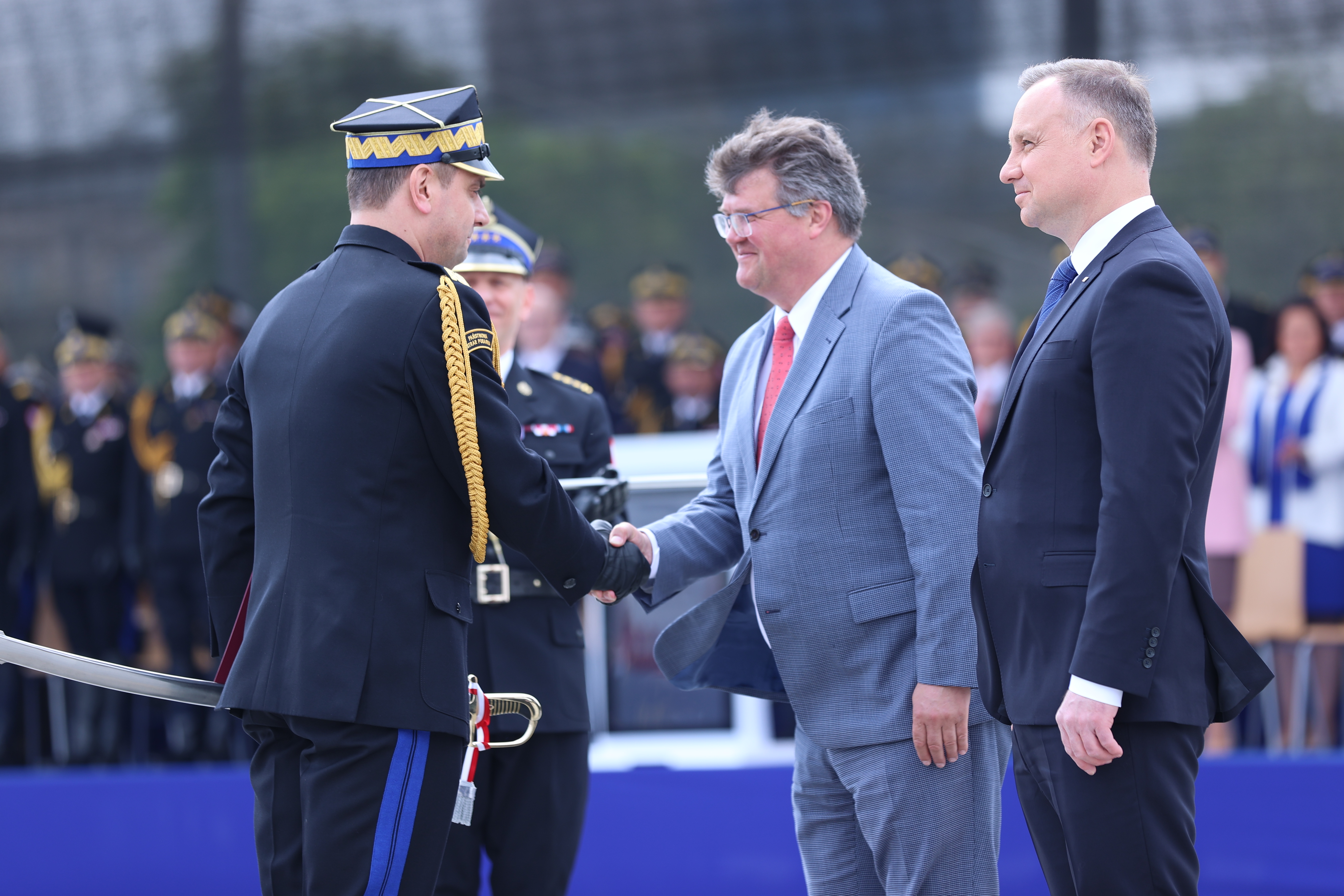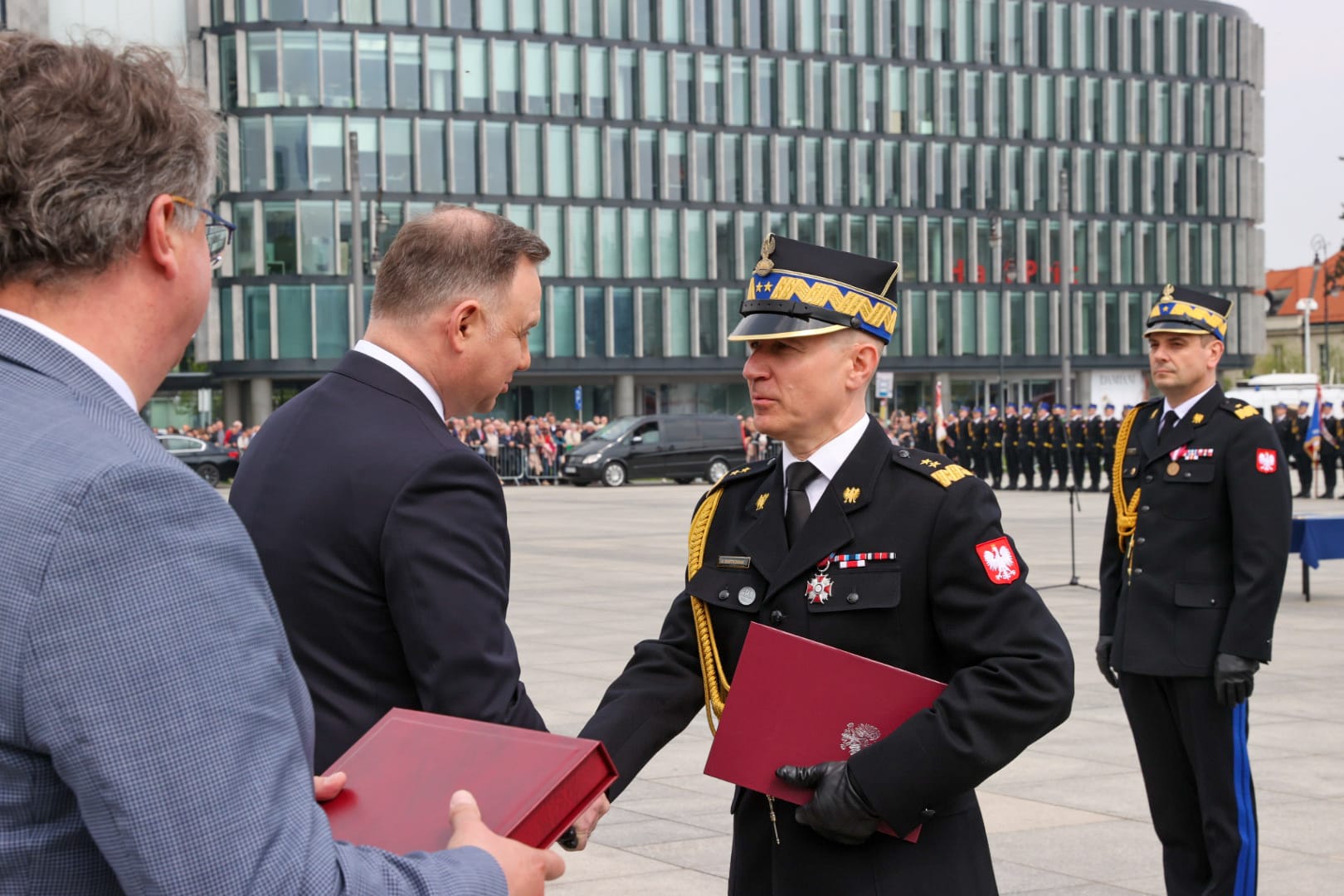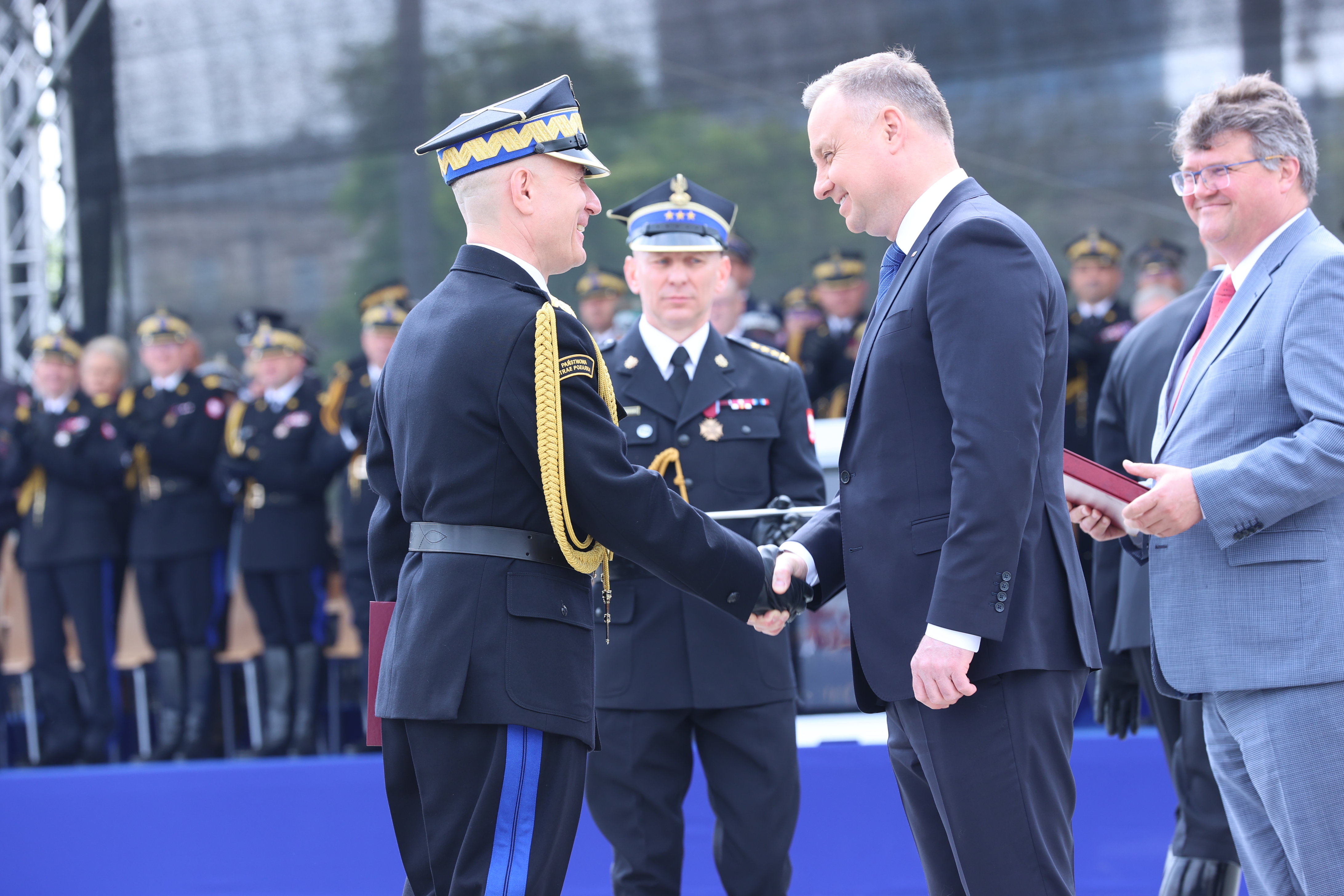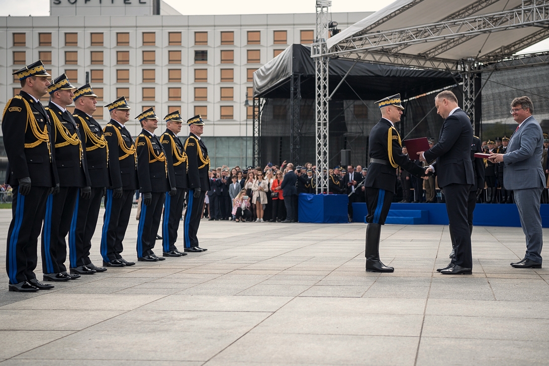 Podczas uroczystości Prezydent RP Andrzej Duda wręczył ośmiu oficerom Państwowej Straży Pożarnej nominacje generalskie: