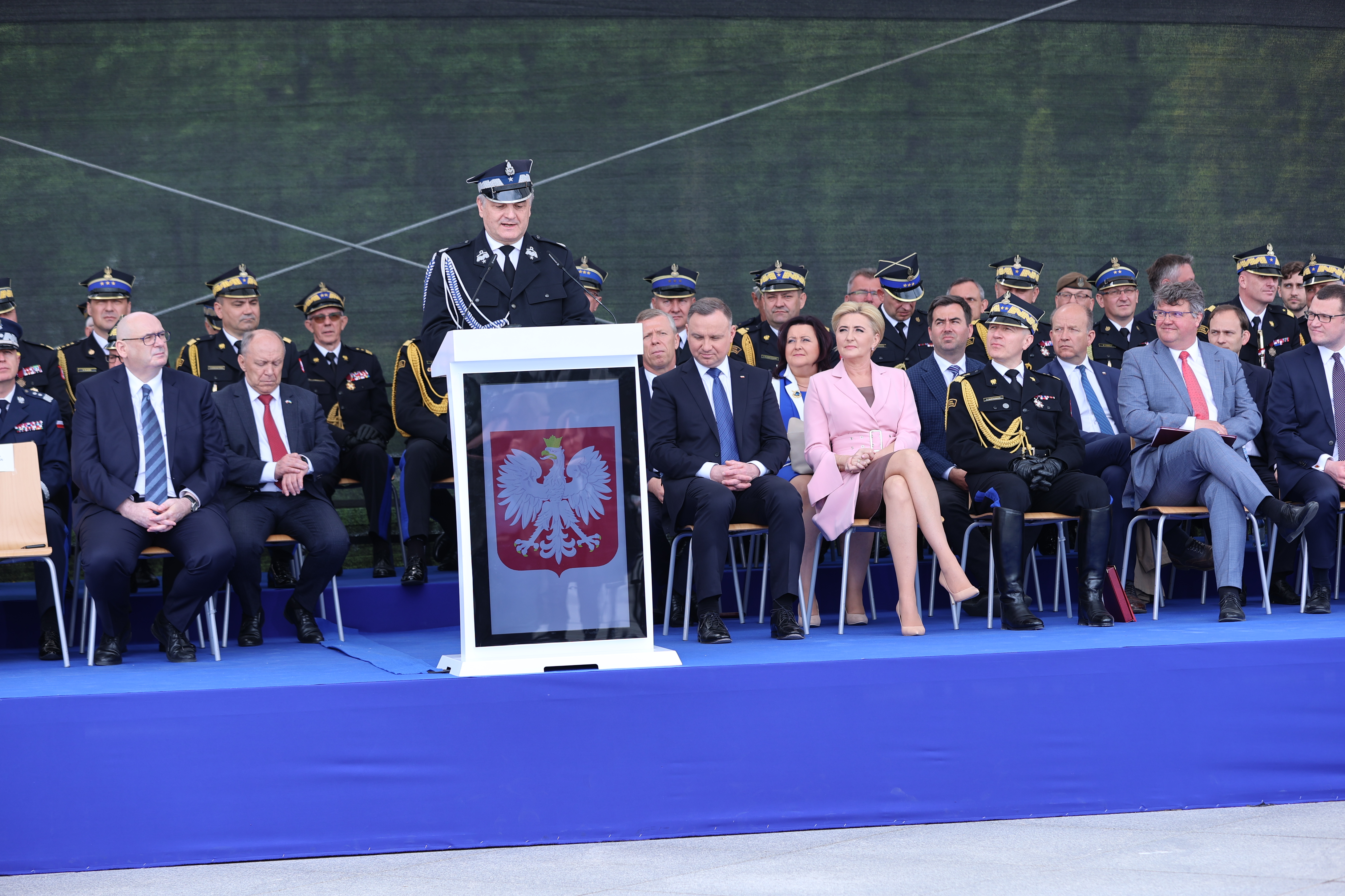 "Chcę z całą mocą podkreślić, że do każdego z tych zadań, mimo, że jak sami Państwo widzą wachlarz działań jest bardzo szeroki, każdy polski strażak jest świetnie przygotowany. Mam tu na myśli zarówno kwalifikacje zawodowe, wyposażenie sprzętowe, ale również hart ducha, poziom empatii, ciepło i uśmiech, którego często oczekują poszkodowani. Dziś osiągnęliśmy stan, w którym każda jednostka ratowniczo-gaśnicza, niezależnie od tego w jak odległym zakątku się znajduj, posiada doskonały sprzęt, a ratownicy najwyższe kwalifikacje i świetne doświadczenie ratownicze... Panie Prezydencie melduję, że polscy strażacy stają na wysokości zadania-są wszędzie tam, gdzie są potrzebni i niosą pomoc każdemu, kto jej potrzebuje. Wypełniają swoje powołanie! Dziękuję każdej Polce i Polakowi za wszelkie wsparcie, za słowa uznania, zaufanie, którym darzycie strażaków. To dla Nas bardzo cenne i ważne".