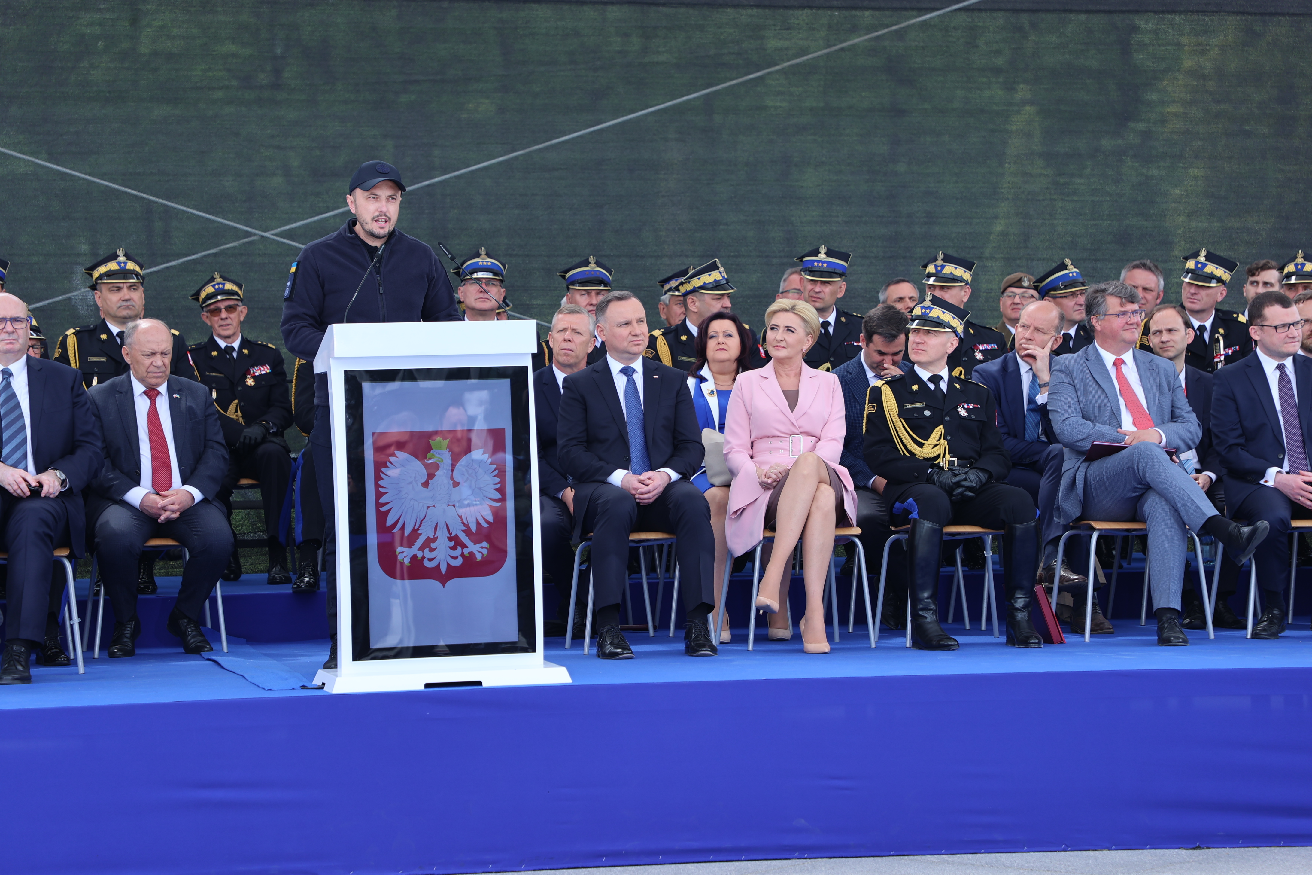 Na tegorocznych Centralnych Obchodach Dnia Strażaka w Warszawie pośród wielu znamienitych osobistości znaleźli się również wyjątkowi w tym czasie goście tj. strażacy z Ukrainy na czele z Szefem Państwowej Służby Ukrainy ds. Sytuacji Nadzwyczajnych gen. Siergiejem Krukiem, który w swoim przemówieniu skierował do zebranych słowa: