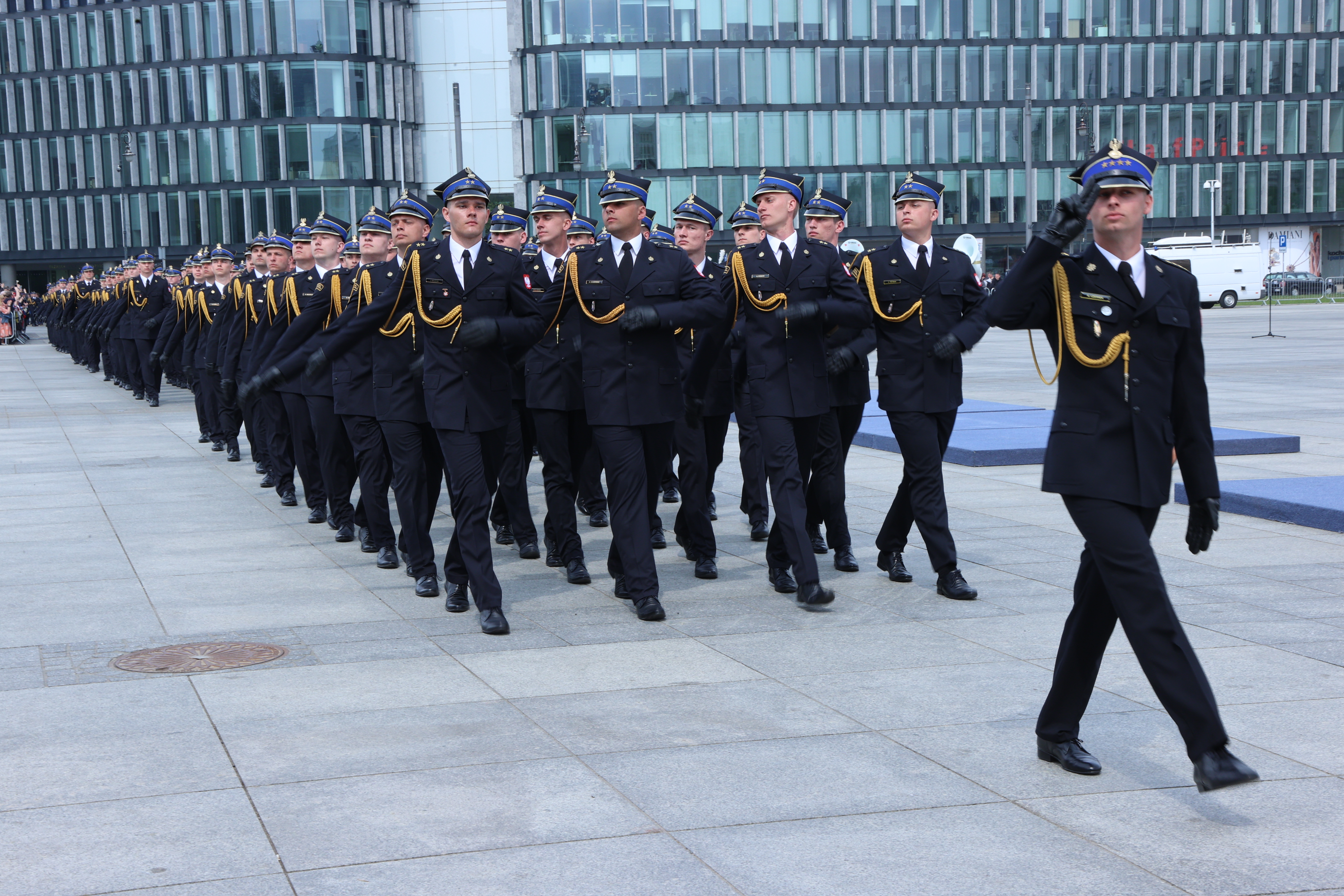 Następnie, na Placu Marszałka Józefa Piłsudskiego w Warszawie odbyły się uroczystości Centralnych Obchodów Dnia Strażaka z udziałem najwyższych władz państwowych. Komendant Główny PSP generał brygadier Andrzej Bartkowiak złożył meldunek Prezydentowi RP Andrzejowi Dudzie, po czym dokonali przeglądu pododdziałów.