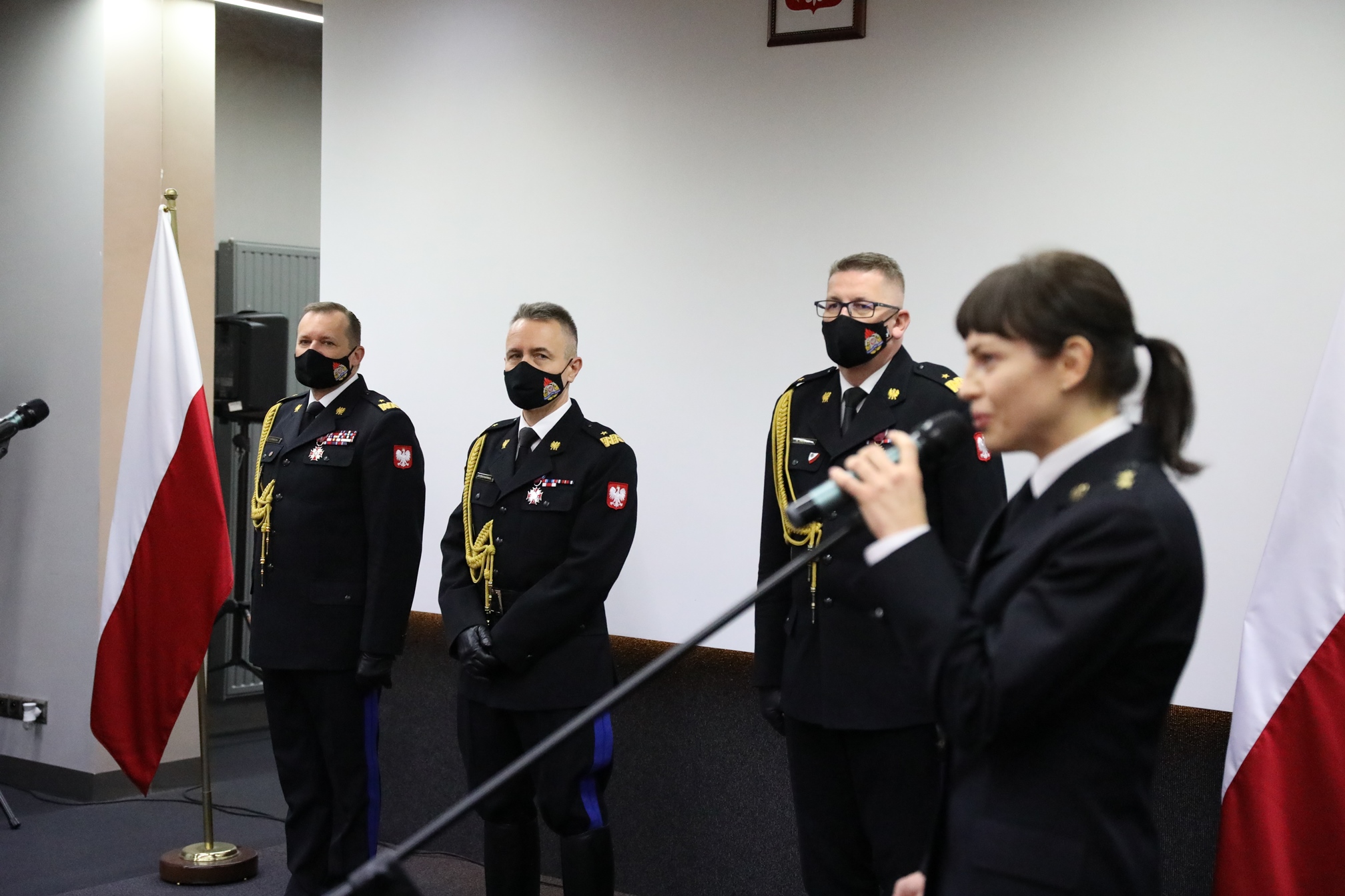 Szanowni Państwo, gratuluję z całego serca wyróżnionym… To jest ukoronowanie Waszej kariery ale to początek kolejnej ścieżki, wszystko przed Wami… Życzę Wam żeby Wasza kariera się rozwijała jak najlepiej, żebyście byli zadowoleni ze służby, żebyście nigdy nie zwątpili w to, że to było to, co najlepsze zrobiliście czyli wybór zostania funkcjonariuszem Państwowej Straży Pożarnej…”