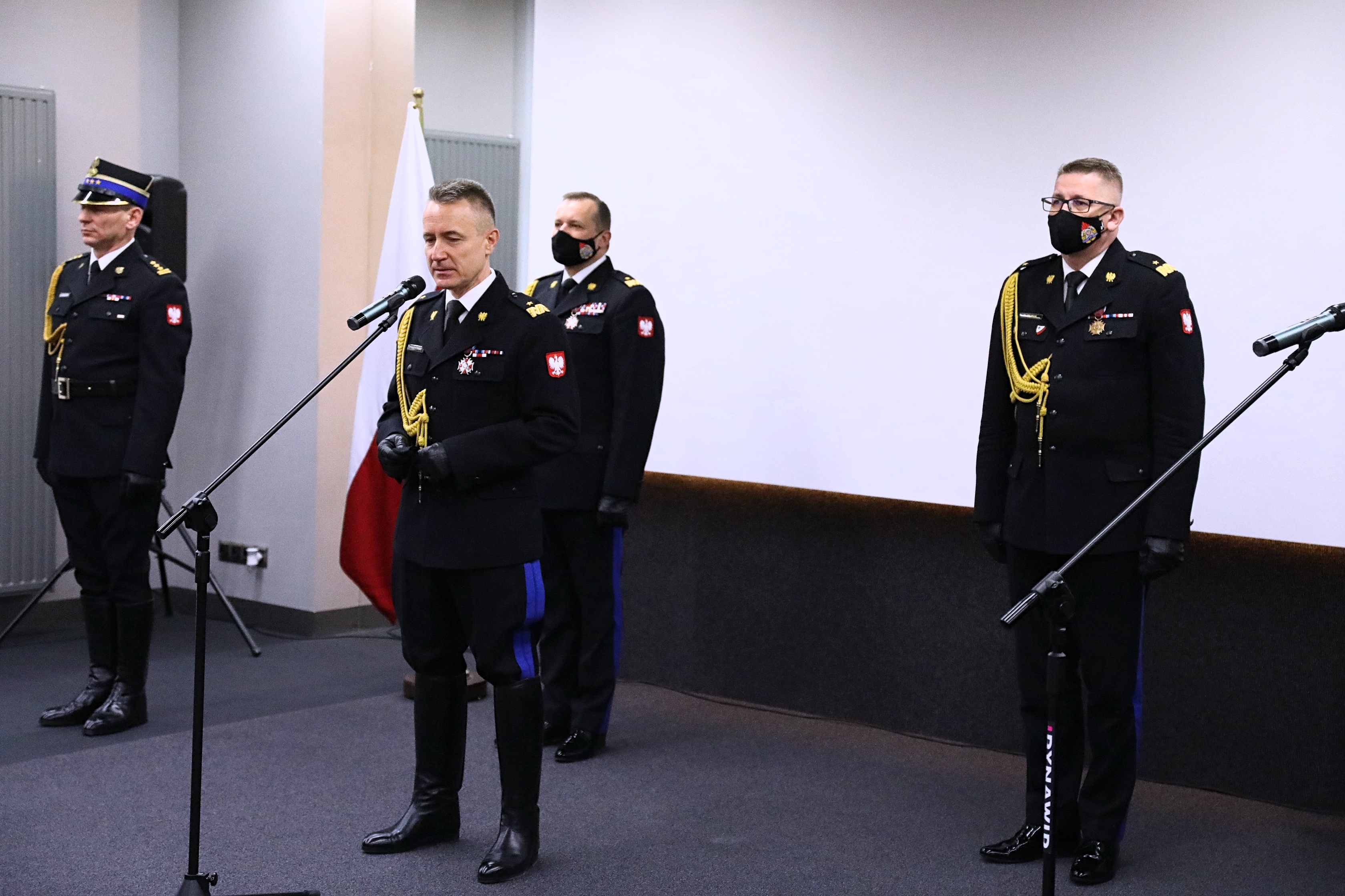„Murem za Polskim Mundurem! Dzisiaj zostaliście młodszymi kapitanami – oficerami Państwowej Straży Pożarnej, a to nie tylko wyróżnienie i owoc Waszej wieloletniej służby i pracy ale to też jest wielkie wyzwanie - to honor - to Ojczyzna. A jak wiecie, dzisiaj stajemy w różnych miejscach i walczymy nie tylko z żywiołami ale też z przeciwnościami losu i innymi zdarzeniami: jesteśmy w szpitalach, przy szpitalach, jesteśmy w bankach tlenu, ale też od niedawna jesteśmy na granicy. Mocno wspieramy naszych przyjaciół z innych służb, gorąco pozdrawiam strażaków Ochotniczych Straży Pożarnych i Państwowej Straży Pożarnej, którzy wspierają działania polskiej policji, wojska polskiego i straży granicznej. To dzisiaj, tam na Podlasiu, trwa poważna walka o integralność i niezależność Polski i naszych granic.