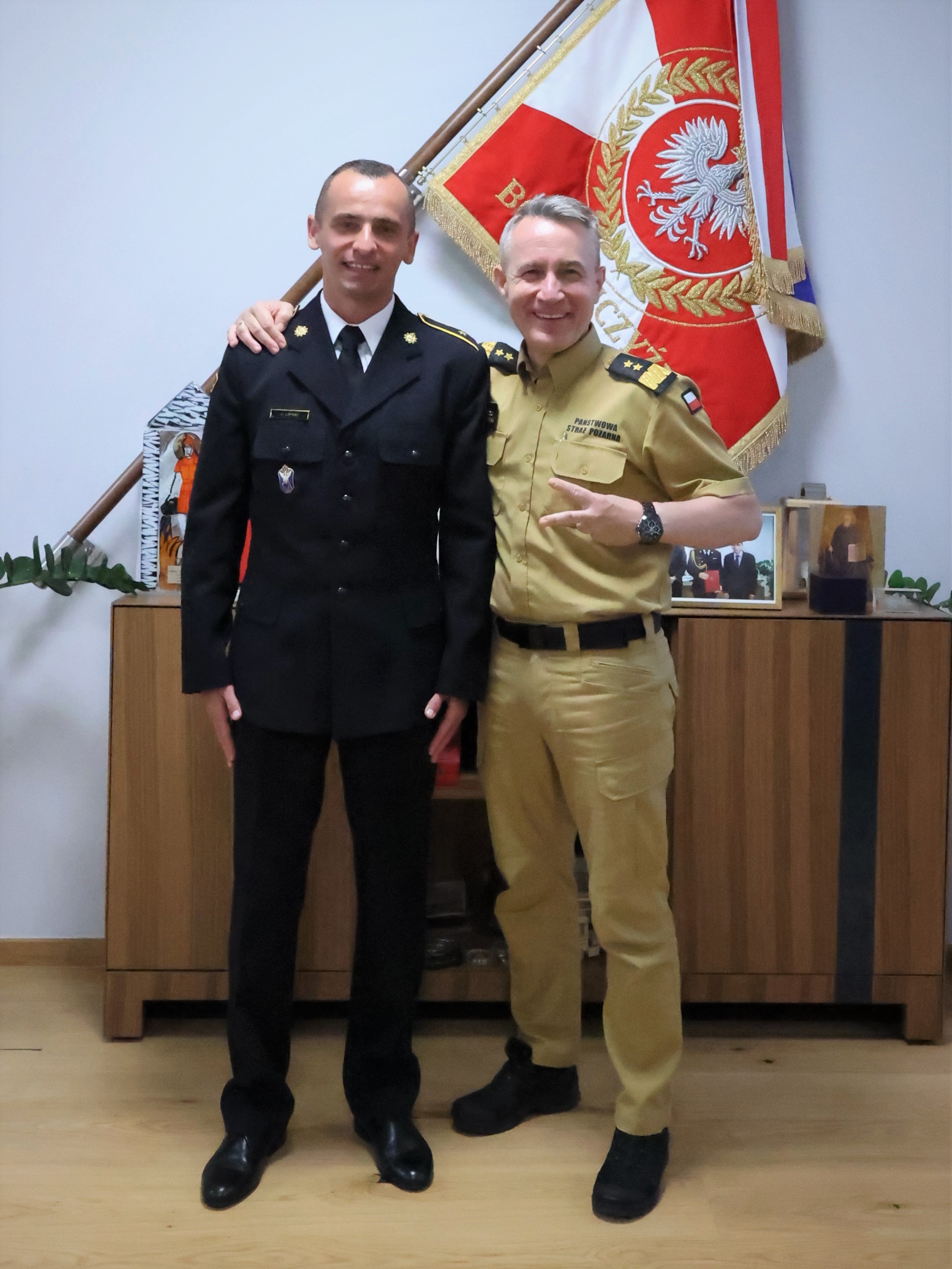 Na co dzień Jacek Lipski pełni służbę w Komendzie Powiatowej PSP w Choszcznie a dzisiejsze spotkanie odbyło się w siedzibie Komendy Głównej PSP na zaproszenie gen. brygadiera Bartkowiaka, który chciał osobiście podziękować za wysiłek włożony w napisanie i wykonanie okolicznościowego utworu.