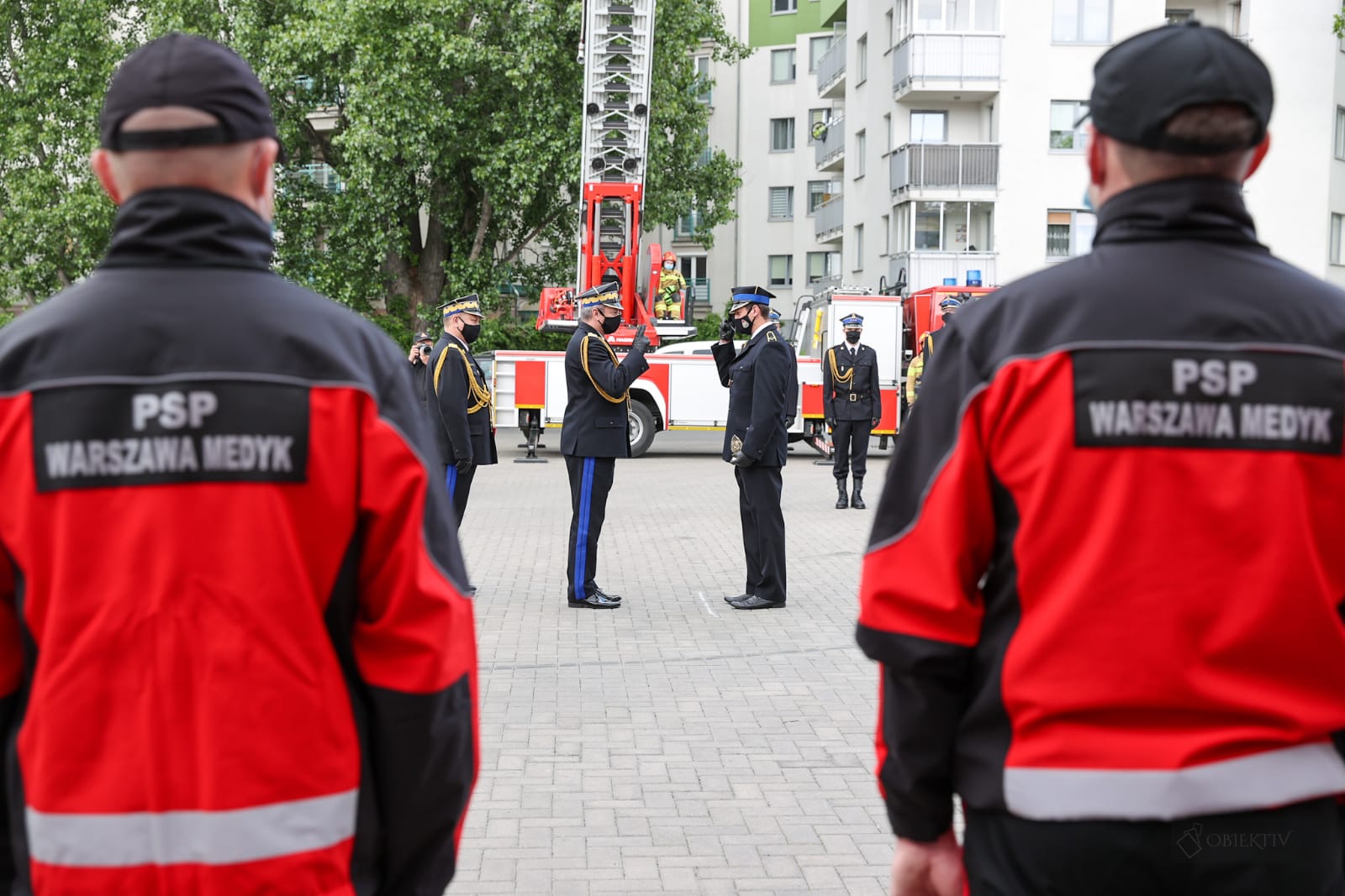 1 czerwca 2021 r. na terenie Ośrodka Szkolenia Komendy Wojewódzkiej PSP w Warszawie zorganizowano uroczysty apel na okoliczność wręczenia awansów i wyróżnień ratownikom medycznym Państwowej Straży Pożarnej z woj. mazowieckiego, pełniącym dyżury w Centralnym Szpitalu Klinicznym MSWiA w Warszawie w związku z pandemią COVID-19.