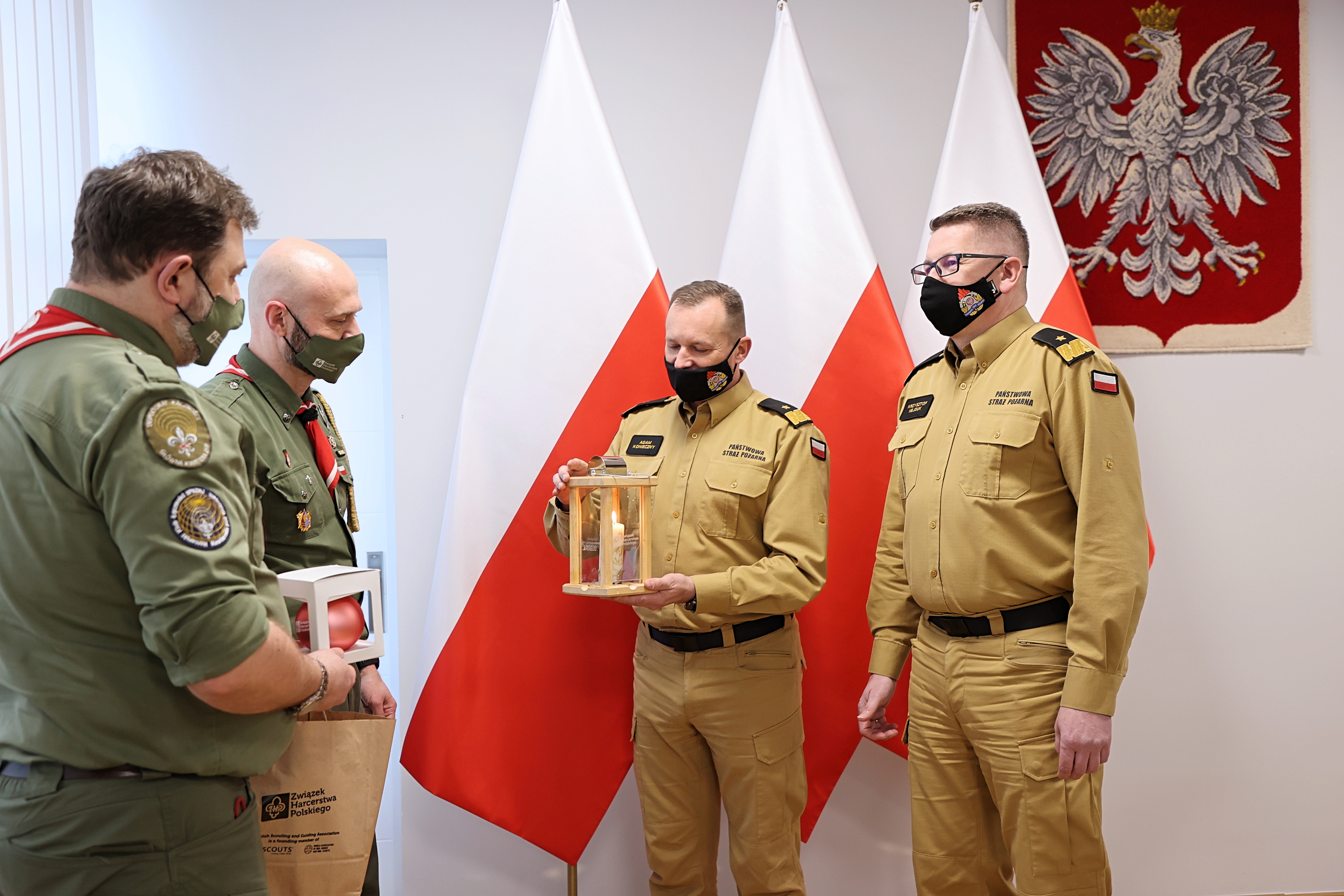 We wtorek 21 grudnia 2021 r. harcerze ZHP odwiedzili Komendę Główną PSP aby właśnie podzielić się Betlejemskim Światłem Pokoju, którego hasło towarzyszące w 2021 r. brzmi „ŚWIATŁO NADZIEI”.