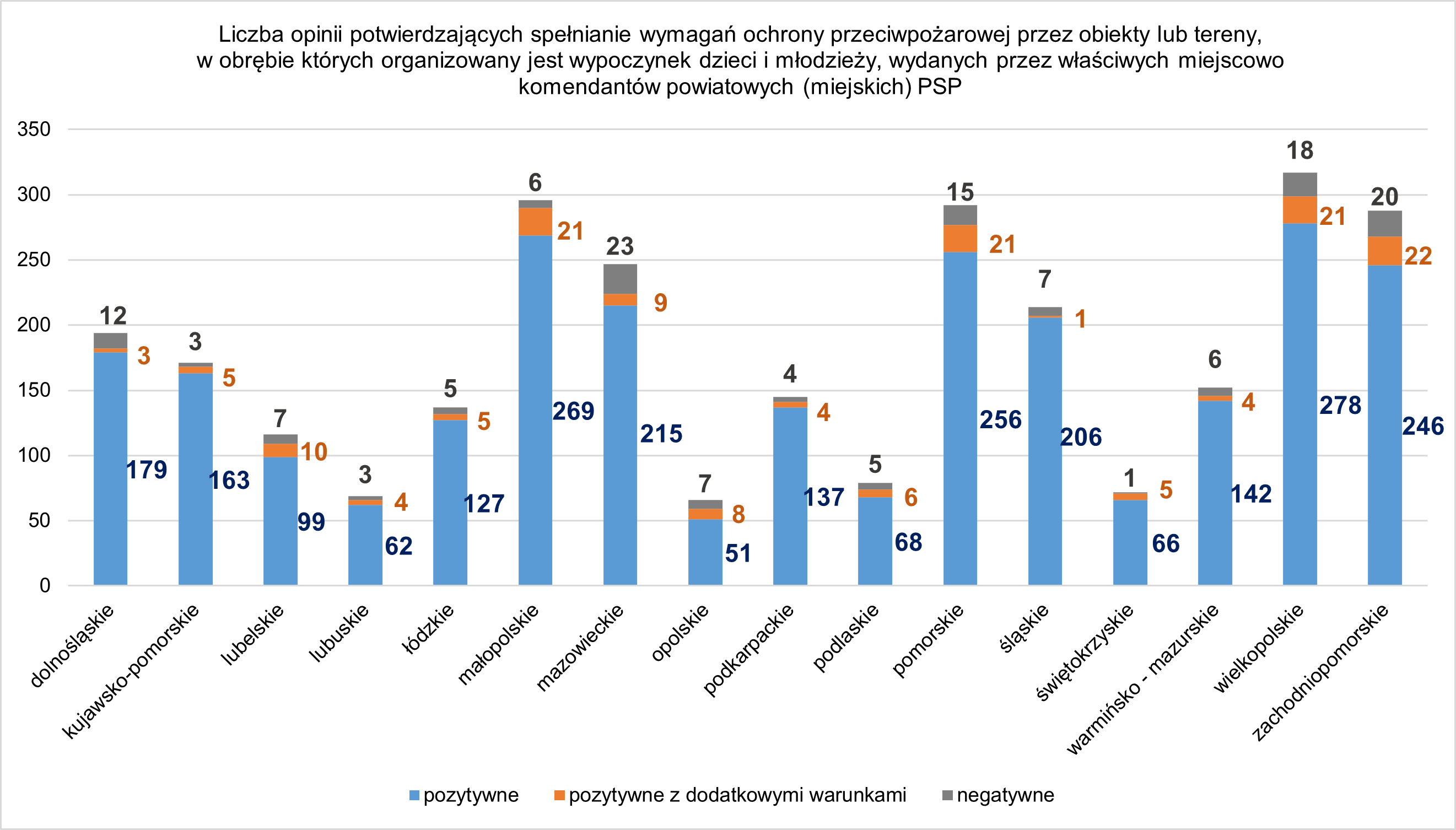 Działania te obejmują m. in. wydawanie przez właściwych miejscowo komendantów powiatowych (miejskich) PSP opinii potwierdzających spełnianie wymagań ochrony przeciwpożarowej przez obiekty lub tereny, w obrębie których organizowany jest wypoczynek dzieci i młodzieży.