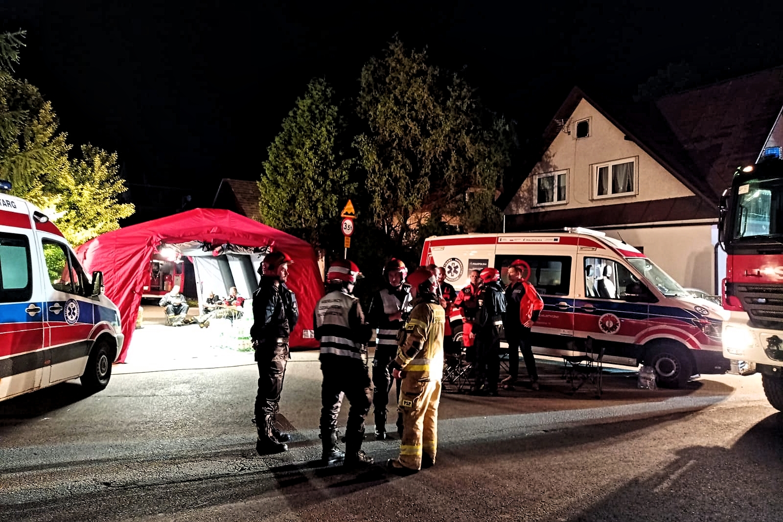 Z uwagi na rozmiar i rodzaj zdarzenia na miejscu pożaru zawiązano sztab działań na bazie samochodu dowodzenia i łączności z KW PSP Kraków, oraz w budynku szkoły podstawowej. W skład sztabu weszli: Małopolski Komendant Wojewódzki, Komendant Powiatowy PSP w Nowym Targu, oficerowie KW PSP Kraków, Komendant Powiatowy Policji w Nowym Targu, przedstawiciele samorządu gminnego oraz innych instytucji. Na miejscu działań obecna była Grupa Operacyjna KG PSP.