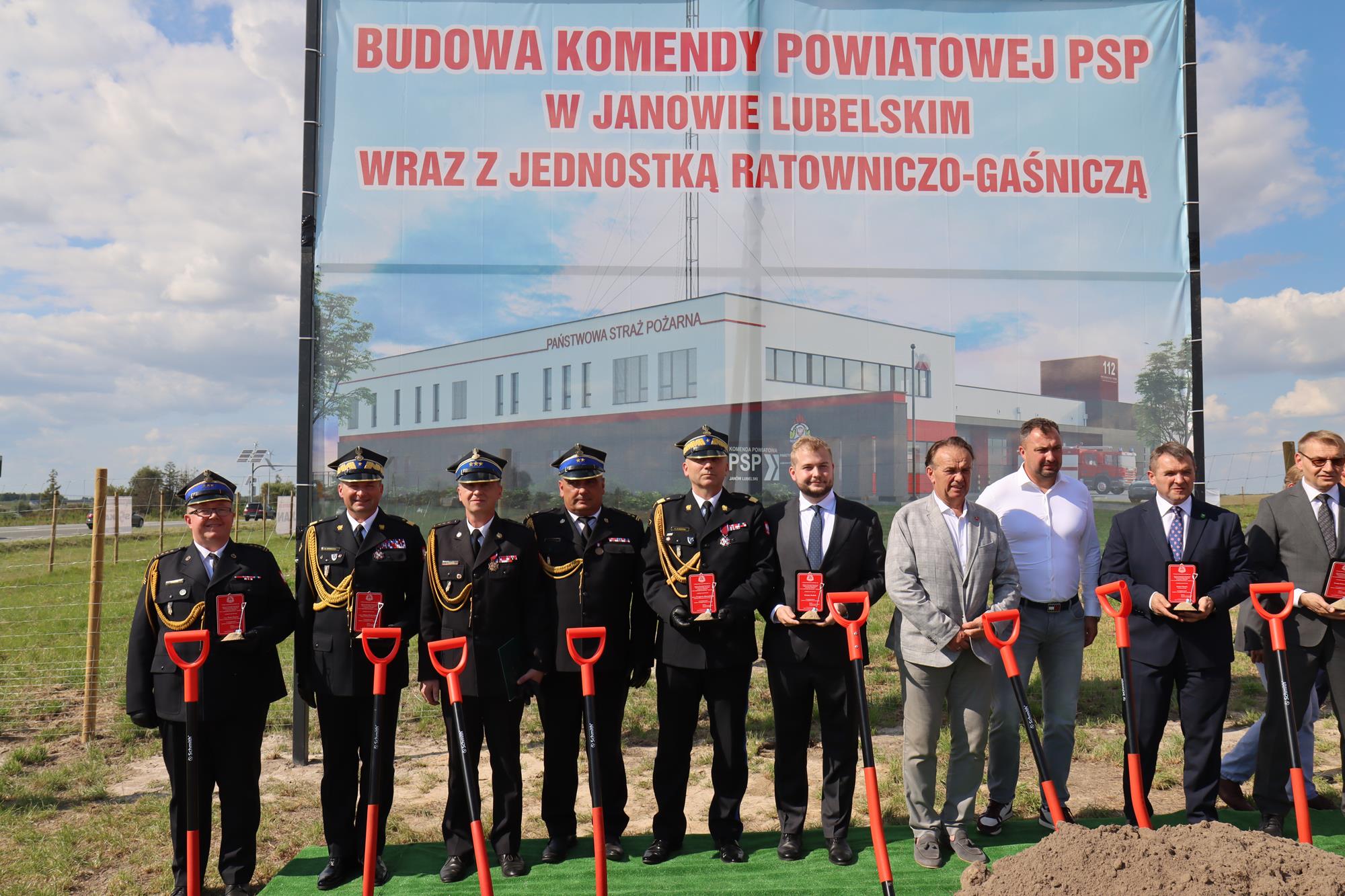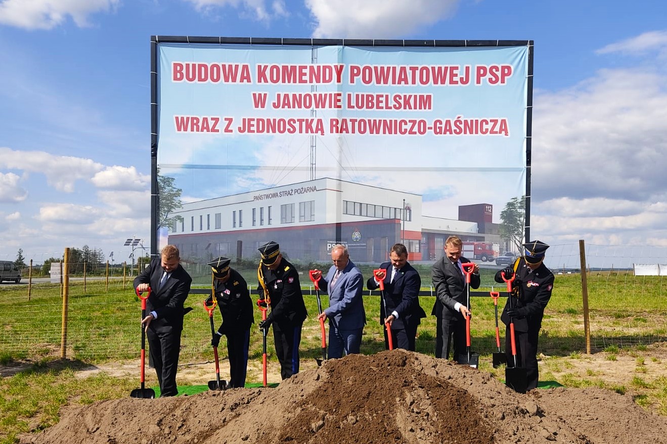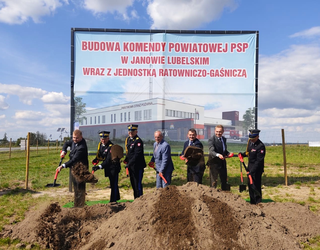 Symbolicznego rozpoczęcia budowy poprzez „wbicie łopaty” dokonali dziś zastępca komendanta głównego PSP nadbryg. dr inż. Adam Konieczny, lubelski komendant wojewódzki PSP nadbryg. Grzegorz Alinowski, gospodarz terenu komendant powiatowy PSP w Janowie Lubelskim st. bryg. Grzegorz Pazdrak wraz z zaproszonymi gośćmi, wśród których byli: Pan Michał Moskal reprezentujący wiceprezesa Rady Ministrów Pana Jarosława Kaczyńskiego, posłowie na Sejm RP: Kazimierz Choma, Jan Kanthak, Sylwester Tułajew, wicewojewoda lubelski Pan Bolesław Gzik, starosta janowski Pan Artur Pizoń a także szefowie służb i instytucji współpracujących oraz przedstawiciele władz samorządowych.