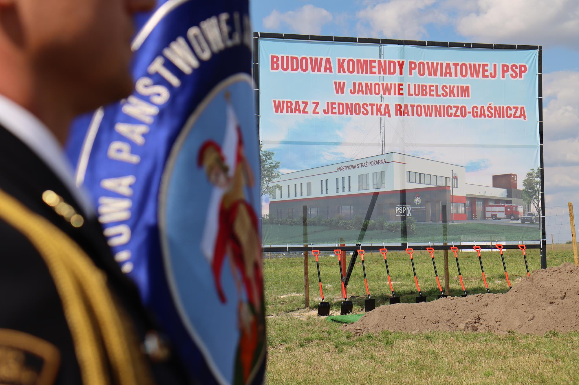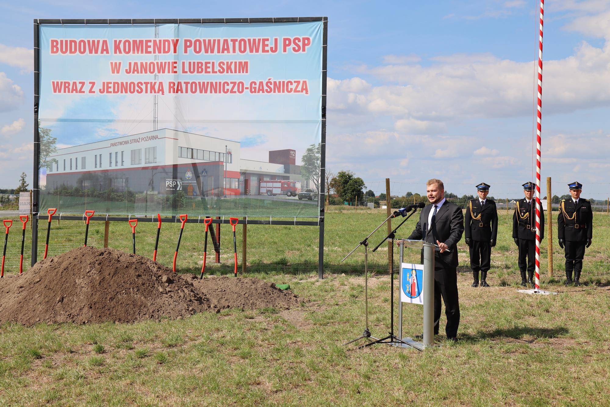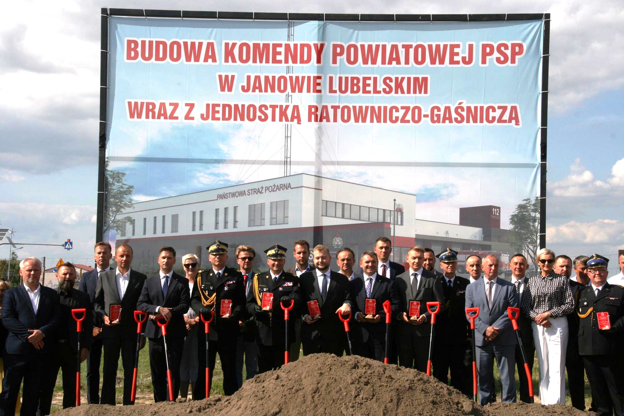 Symbolicznego rozpoczęcia budowy poprzez „wbicie łopaty” dokonali dziś zastępca komendanta głównego PSP nadbryg. dr inż. Adam Konieczny, lubelski komendant wojewódzki PSP nadbryg. Grzegorz Alinowski, gospodarz terenu komendant powiatowy PSP w Janowie Lubelskim st. bryg. Grzegorz Pazdrak wraz z zaproszonymi gośćmi, wśród których byli: Pan Michał Moskal reprezentujący wiceprezesa Rady Ministrów Pana Jarosława Kaczyńskiego, posłowie na Sejm RP: Kazimierz Choma, Jan Kanthak, Sylwester Tułajew, wicewojewoda lubelski Pan Bolesław Gzik, starosta janowski Pan Artur Pizoń a także szefowie służb i instytucji współpracujących oraz przedstawiciele władz samorządowych.