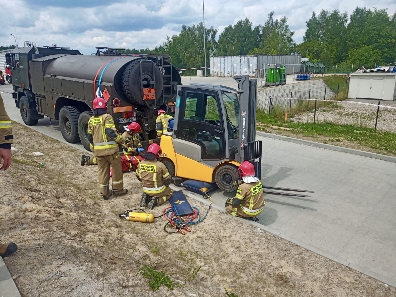 W kraju natomiast ćwiczenia z zakresu pożarów lasu realizowały zastępy KM PSP w Kaliszu wraz z jednostkami OSP z powiatu; - doskonalenie taktyki działań ratowniczych podczas miejscowych zagrożeń w zakładach operujących załadunkiem gabarytowym trenowały siły JRG Chojnice, OSP Rytel, OSP Zapędowo. Przyjęty scenariusz zakładał zdarzenie, w którym w trakcie rozładunku palety z gotowym wyrobem drewna, doszło do przygniecenia pracownika i awarii dźwigu typu HDS;