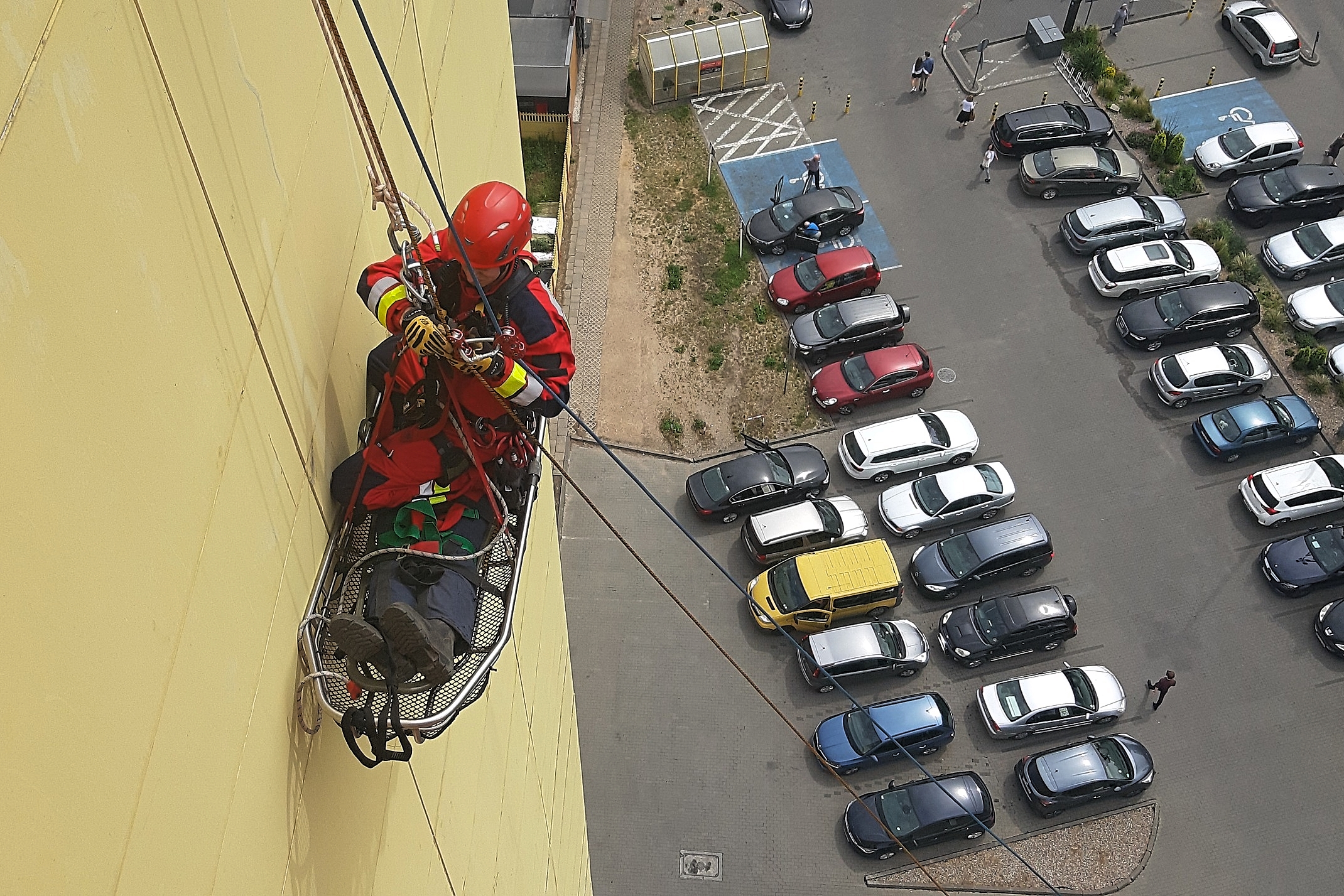 - ratownicy wysokościowi KM PSP w Poznaniu doskonalili swoje umiejętności z zakresu ewakuacji osoby poszkodowanej z dachu obiektu wysokiego. Również Specjalistyczna Grupa Ratownictwa Wysokościowego Gołdap zorganizowała i przeprowadziła ćwiczenia z udziałem swoich sił i środków;