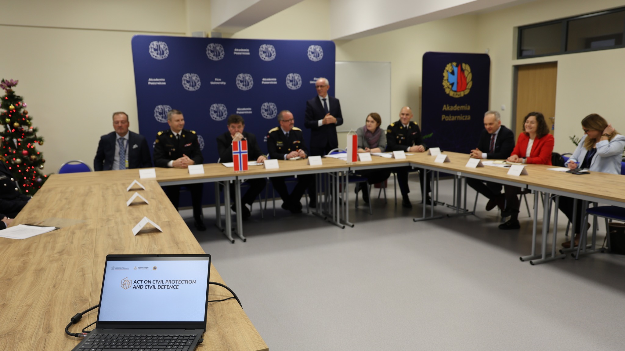 11 grudnia 2025 r. w Akademii Pożarniczej gościli przedstawiciele norweskich instytucji odpowiedzialnych za ochronę ludności i obronę cywilną.