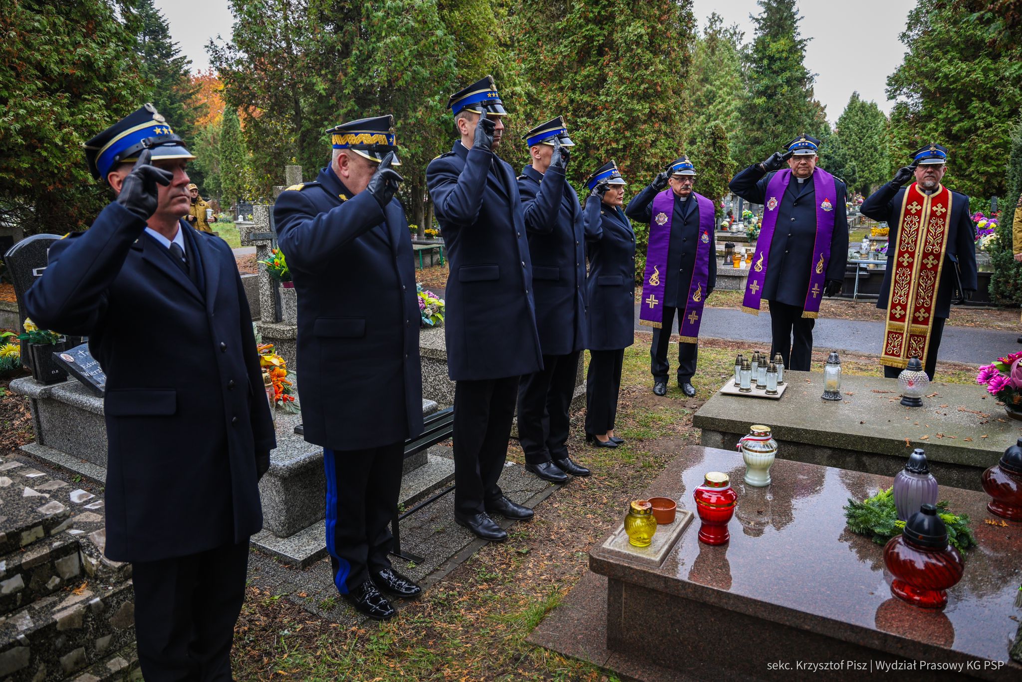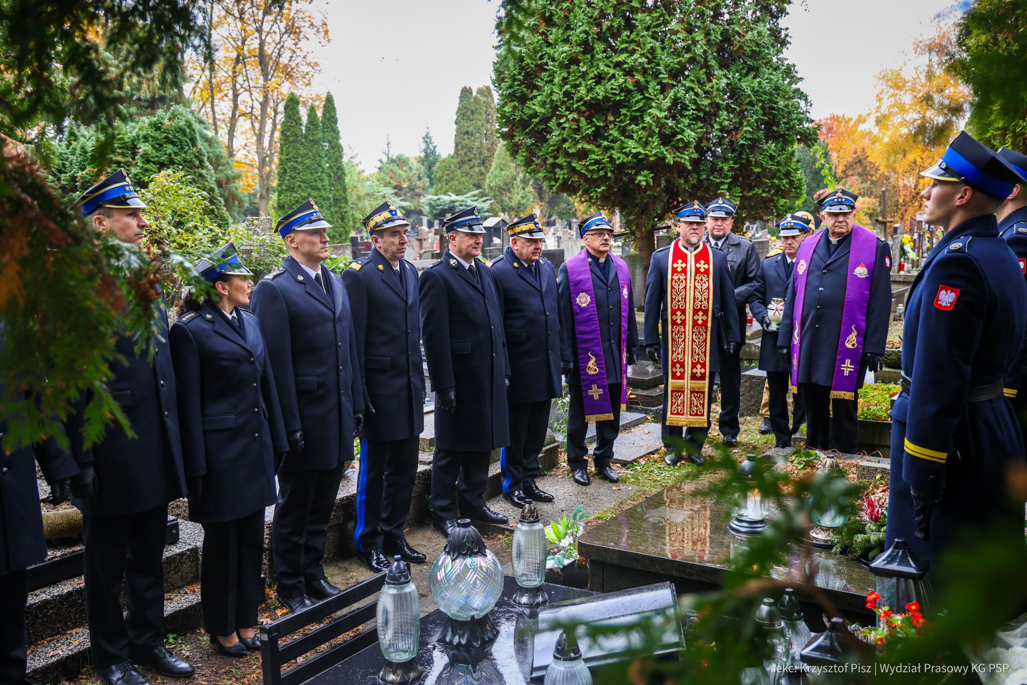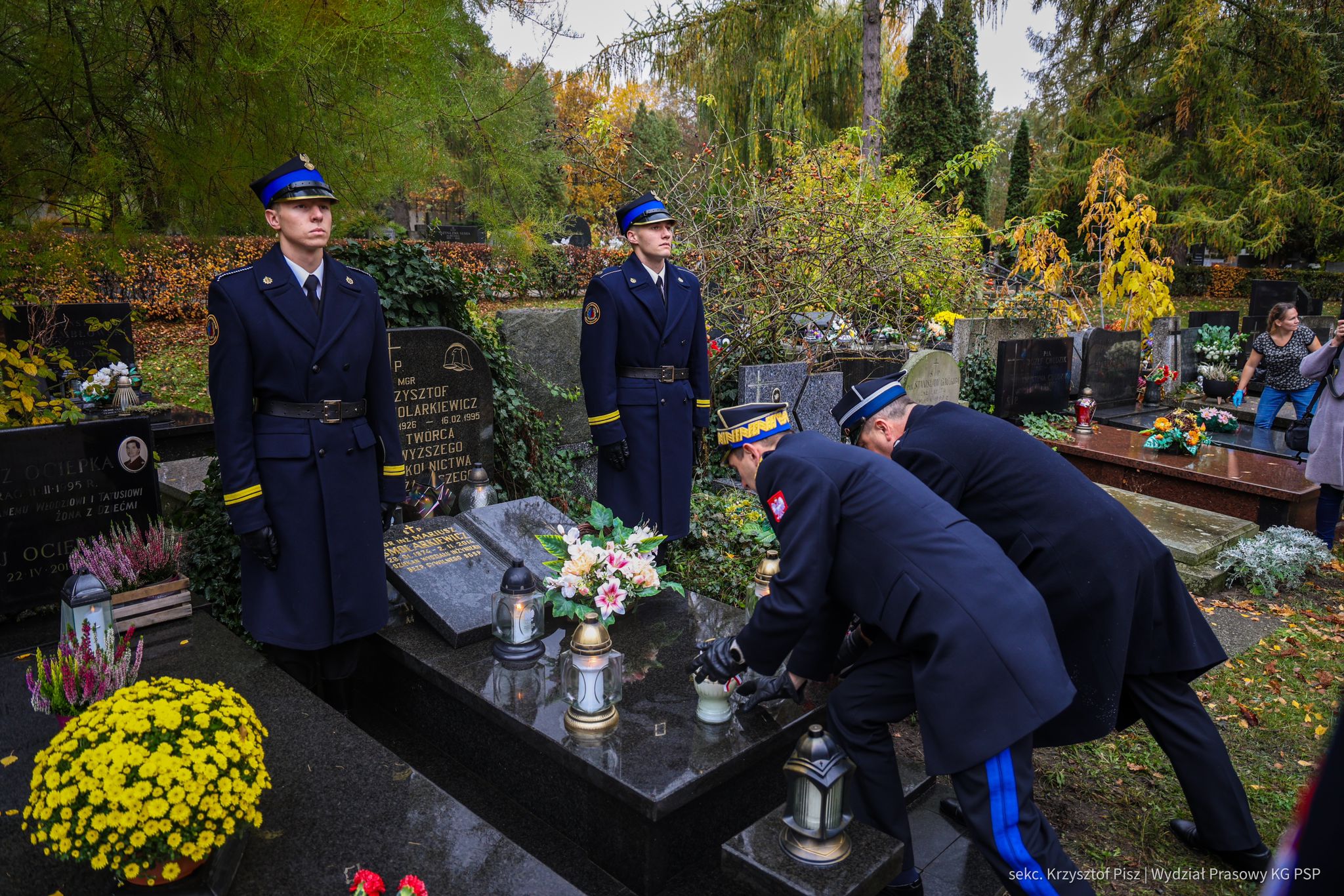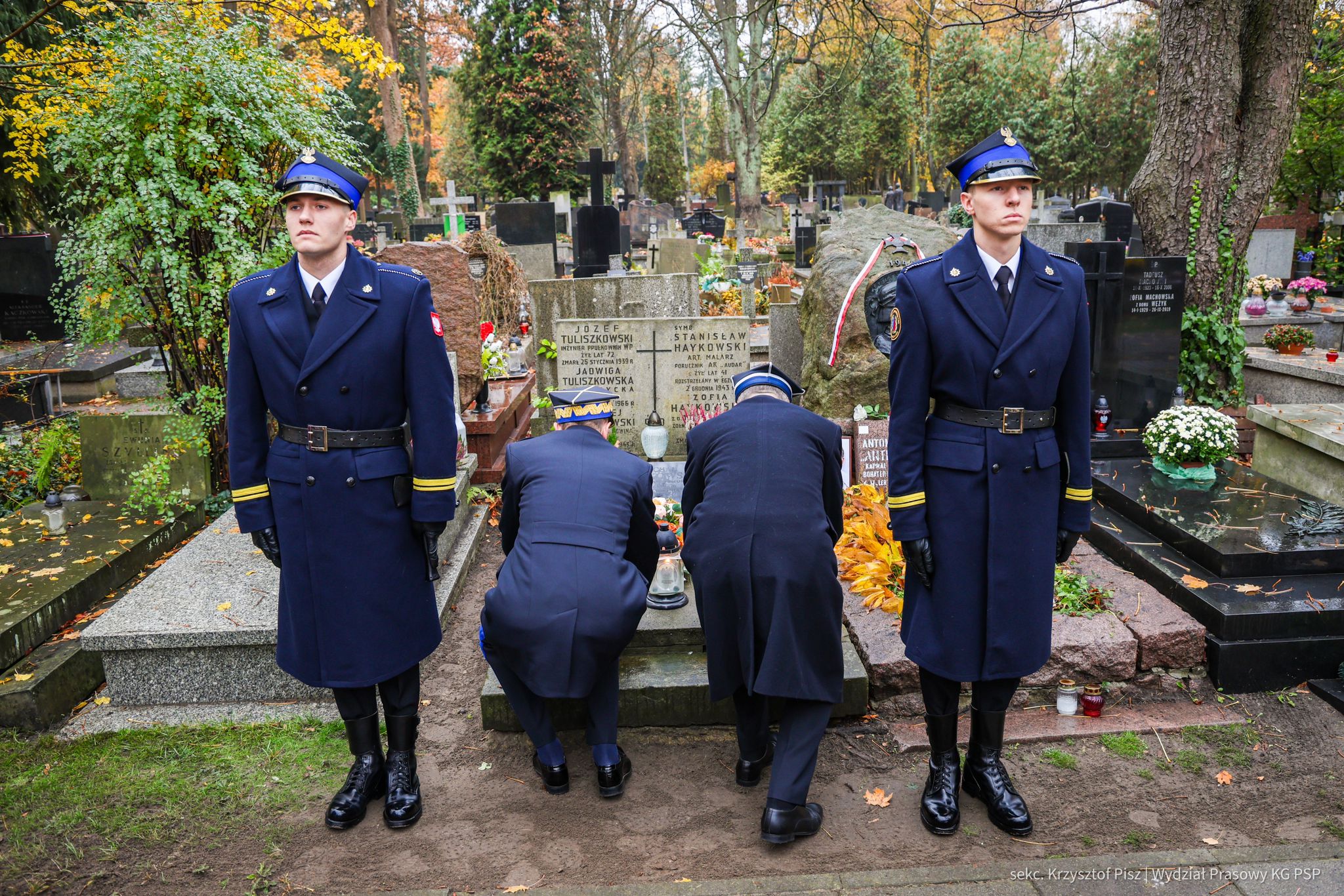 We wtorek, 29 października, delegacja Państwowej Straży Pożarnej pod przewodnictwem nadbryg. dr. inż. Mariusza Feltynowskiego wraz z przedstawicielami Związku Ochotniczych Straży Pożarnych RP na czele z Panem Edwardem Siarka, wiceprezesem Zarządu Głównego ZOSP RP, oddali hołd strażakom spoczywającym na cmentarzu Powązkowskim w Warszawie.