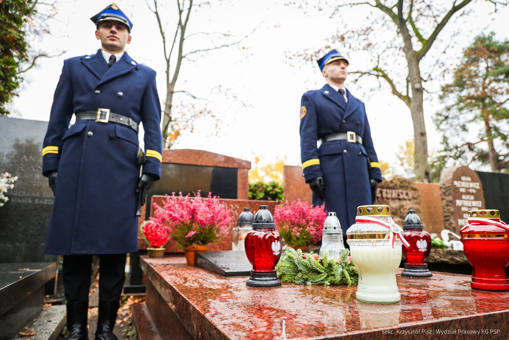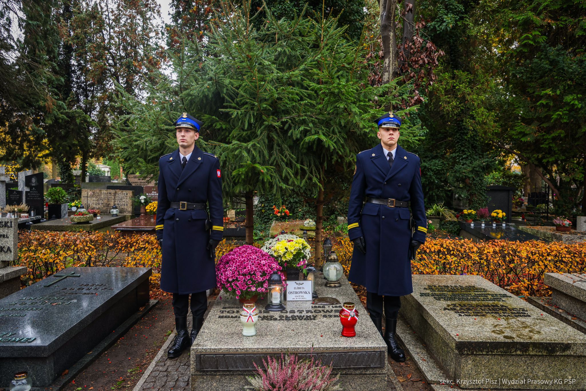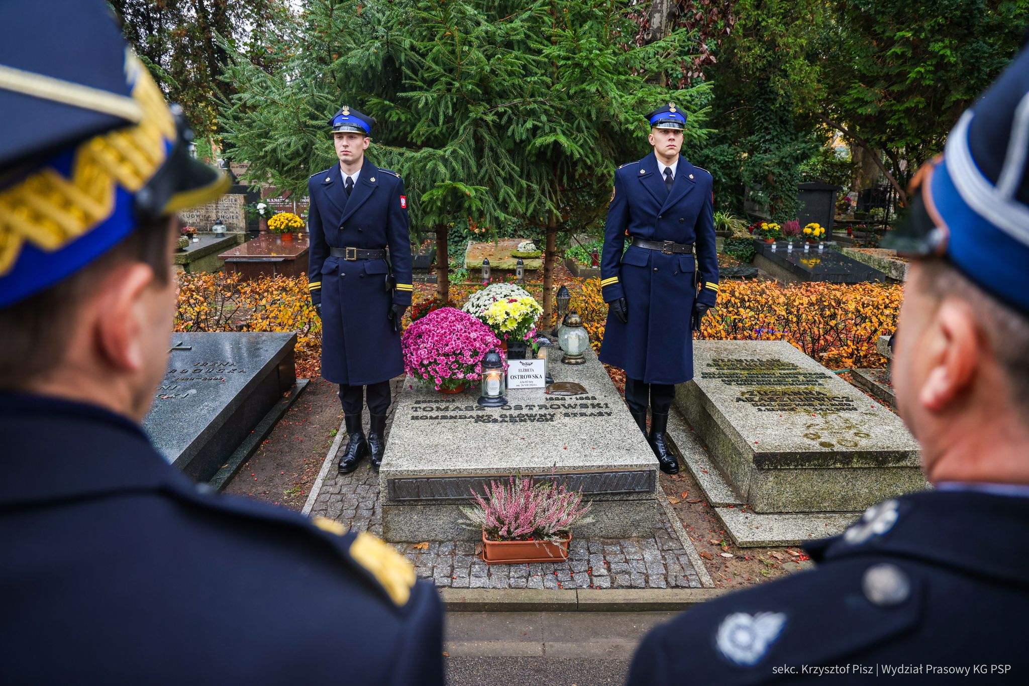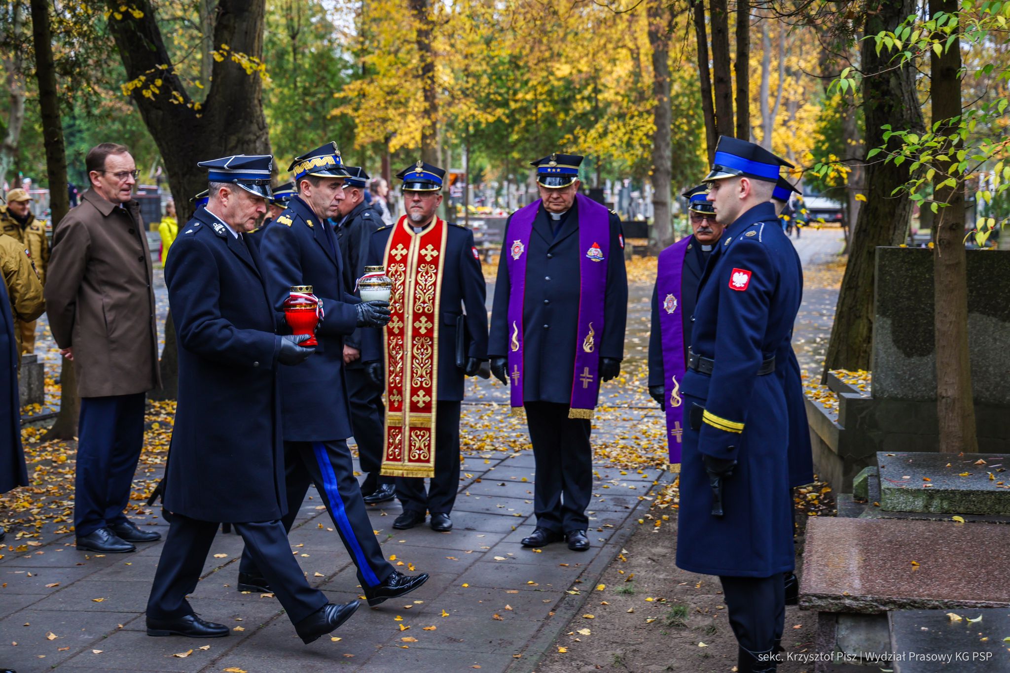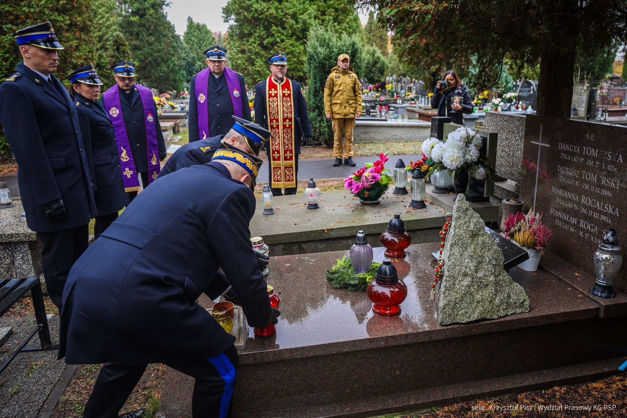 We wtorek, 29 października, delegacja Państwowej Straży Pożarnej pod przewodnictwem nadbryg. dr. inż. Mariusza Feltynowskiego wraz z przedstawicielami Związku Ochotniczych Straży Pożarnych RP na czele z Panem Edwardem Siarka, wiceprezesem Zarządu Głównego ZOSP RP, oddali hołd strażakom spoczywającym na cmentarzu Powązkowskim w Warszawie.