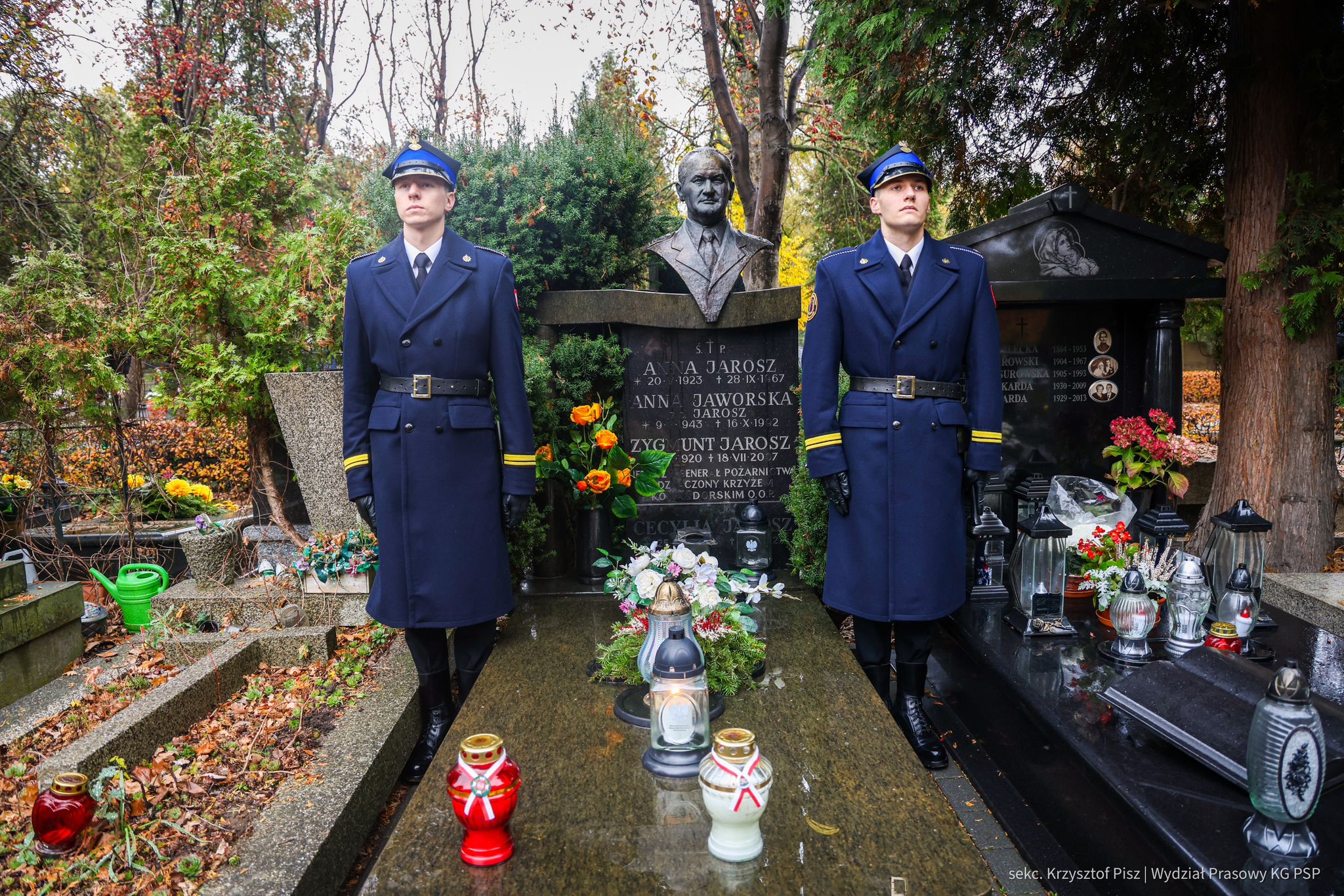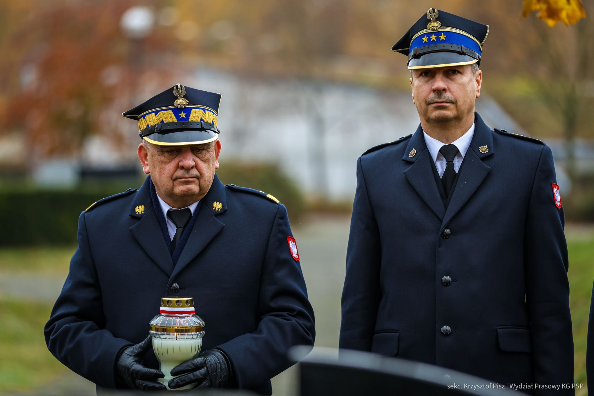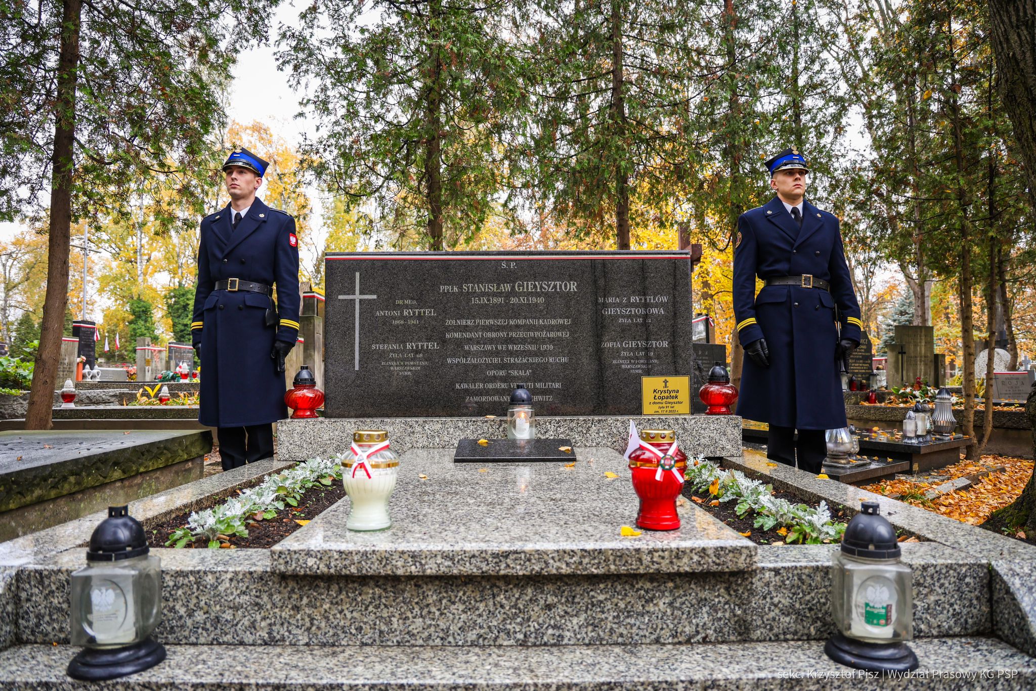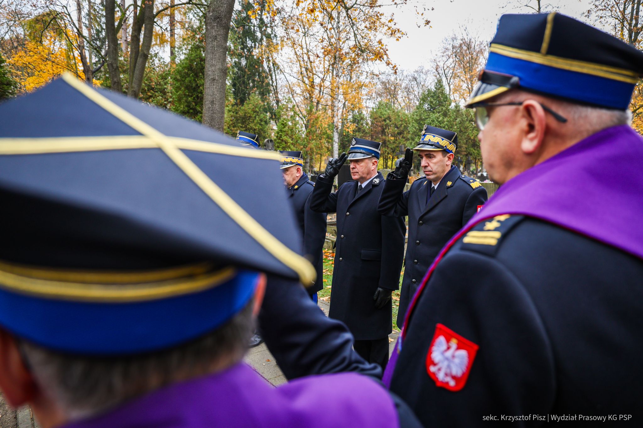 We wtorek, 29 października, delegacja Państwowej Straży Pożarnej pod przewodnictwem nadbryg. dr. inż. Mariusza Feltynowskiego wraz z przedstawicielami Związku Ochotniczych Straży Pożarnych RP na czele z Panem Edwardem Siarka, wiceprezesem Zarządu Głównego ZOSP RP, oddali hołd strażakom spoczywającym na cmentarzu Powązkowskim w Warszawie.