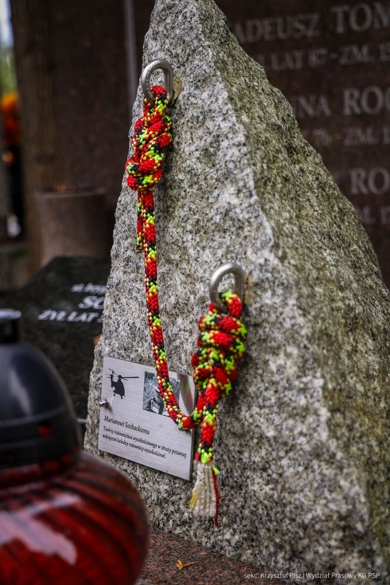 Szczególną pamięcią otaczamy również Strażaków, którzy poświęcili swoje życie w służbie innym, realizując słowa przysięgi: „...ślubuję być odważnym i mężnym w ratowaniu zagrożonego życia ludzkiego oraz wszelkiego mienia – nawet z narażeniem życia...”.
