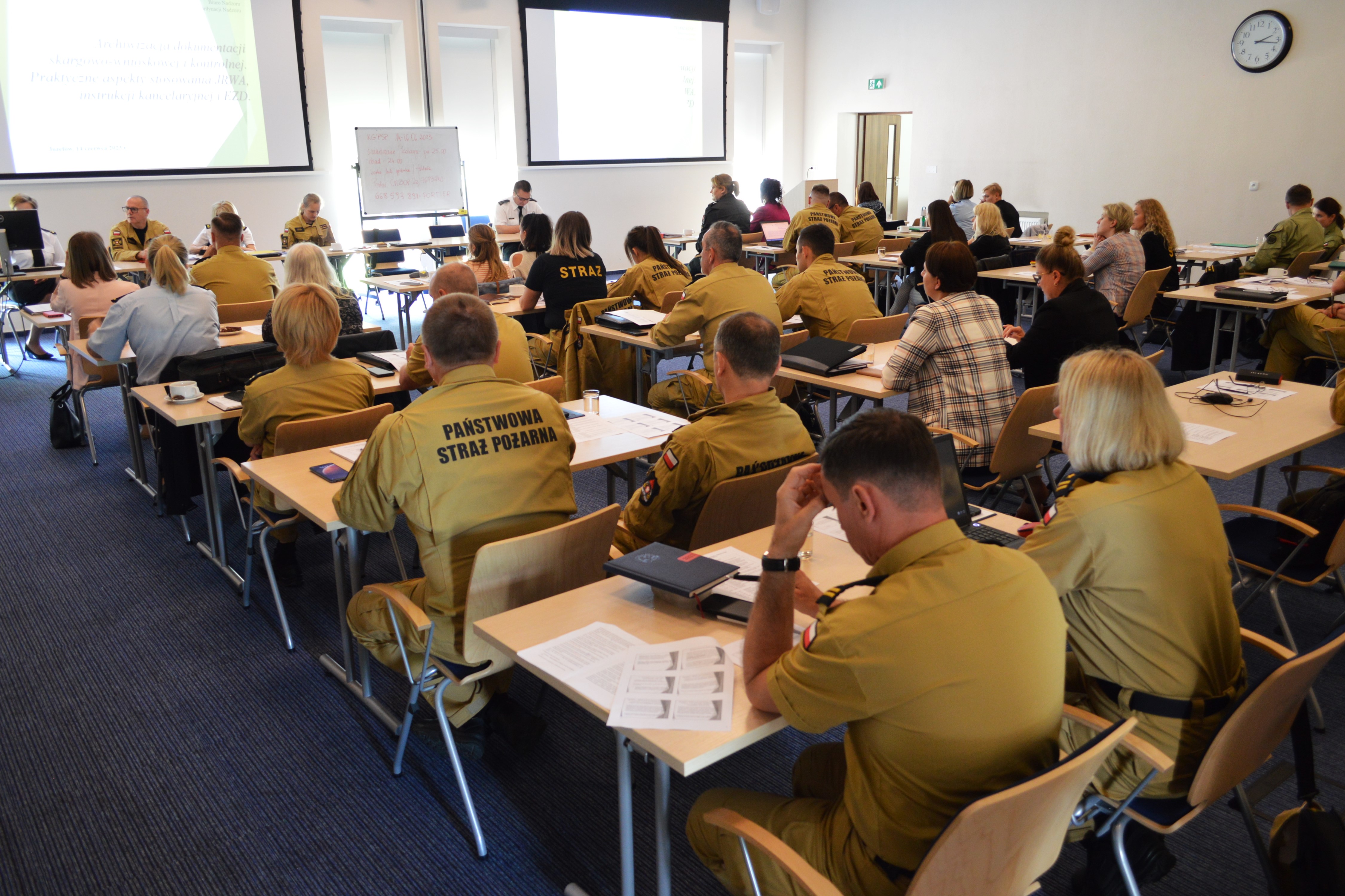 W dniach 14-16 czerwca 2023 r. Biuro Nadzoru Komendy Głównej Państwowej Straży Pożarnej realizuje na terenie CNBOP-PIB w Józefowie doskonalenie zawodowe dedykowane dla kadry nadzorującej i realizującej zadania kontrolne oraz zadania z zakresu przyjmowania i załatwiania skarg i wniosków w jednostkach organizacyjnych Państwowej Straży Pożarnej.