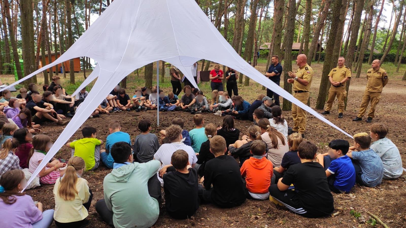 - współpracę z organizatorami (kierownikami wypoczynku): strażacy weryfikują czy wdrożono odpowiednie procedury i zasady bezpieczeństwa na terenie obozów (m.in. codziennego zapoznawania się z prognozą pogody i ostrzeżeniami meteo oraz hydrologicznymi) jak również przeprowadzają praktyczne sprawdzenie organizacji i warunków ewakuacji.