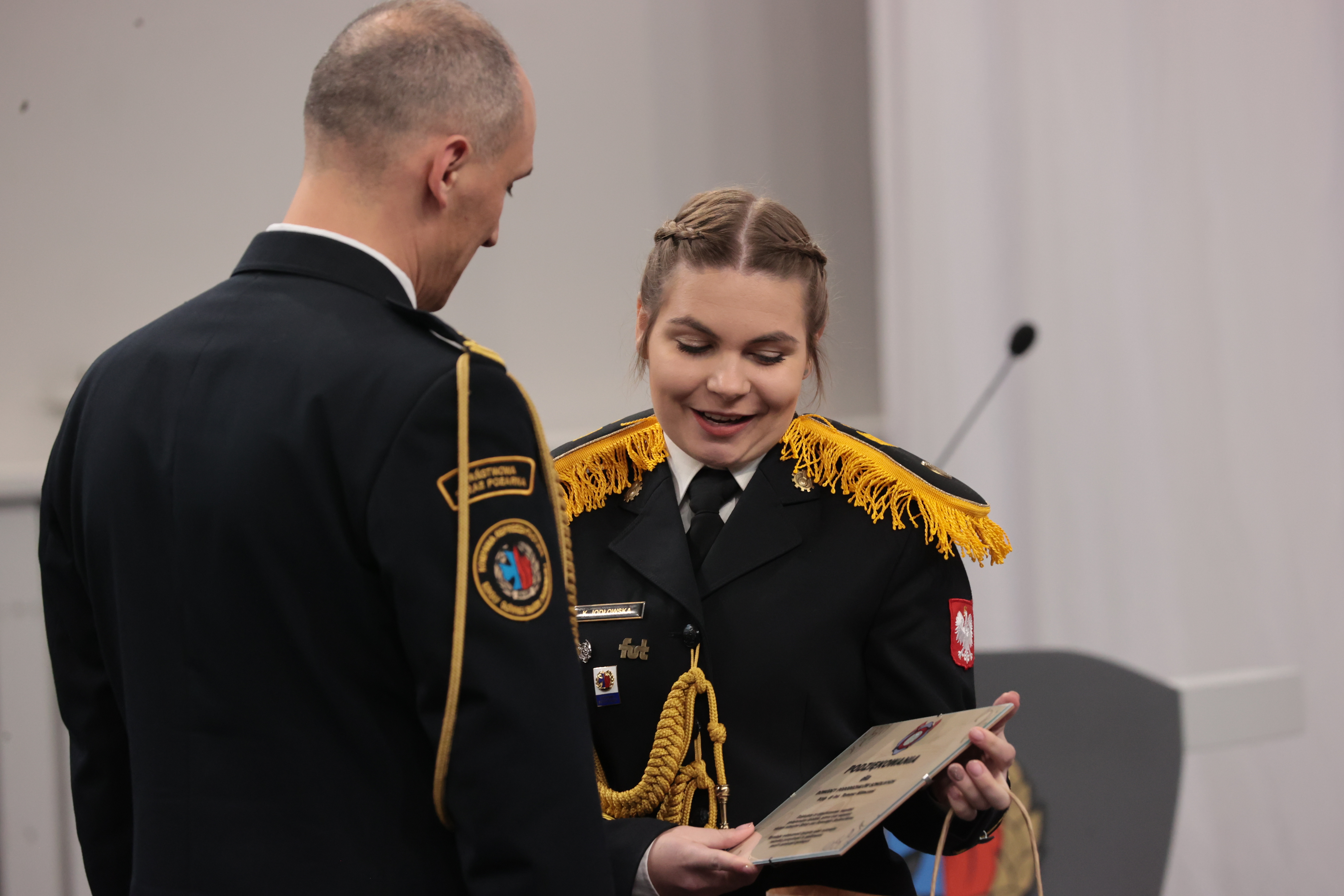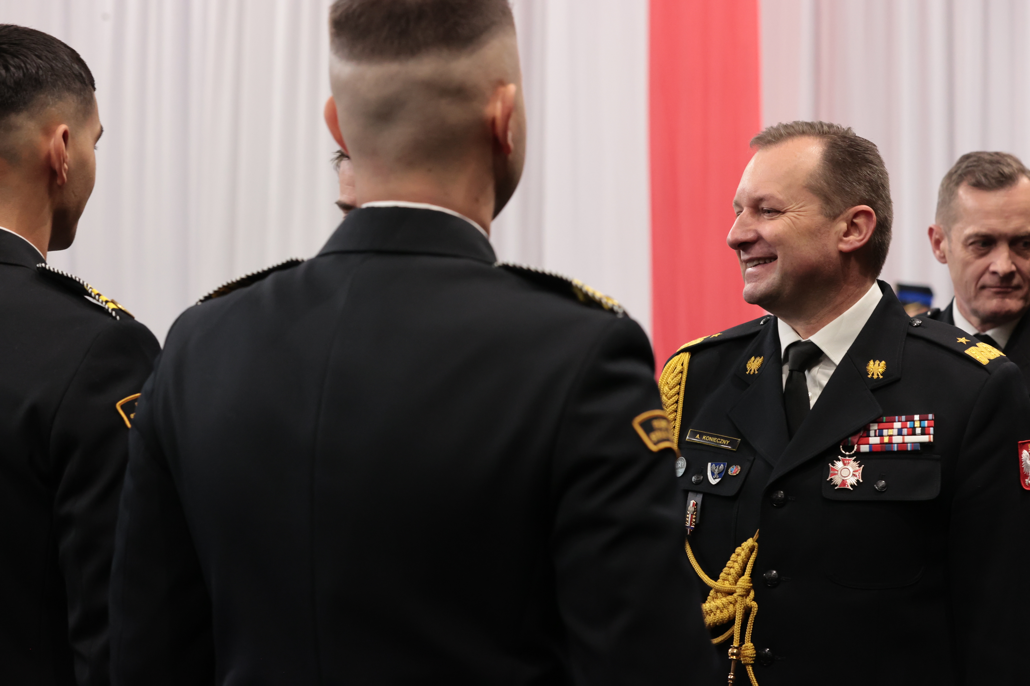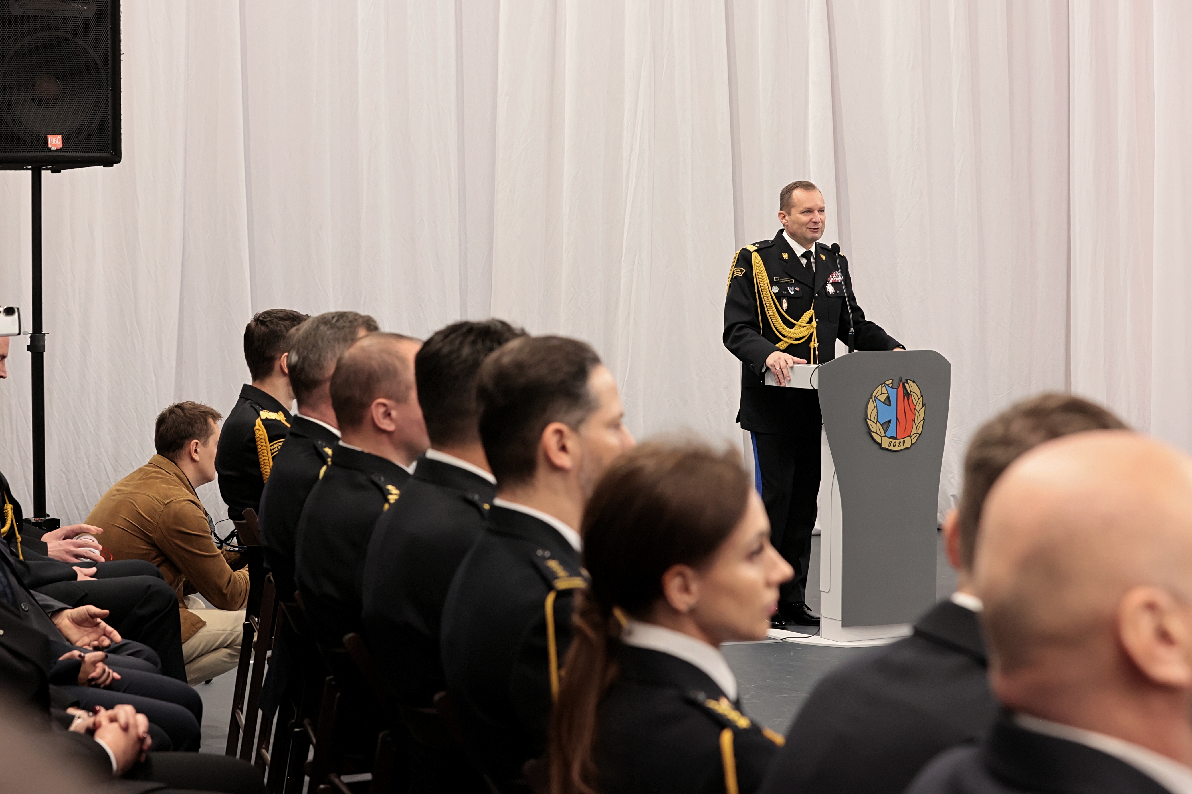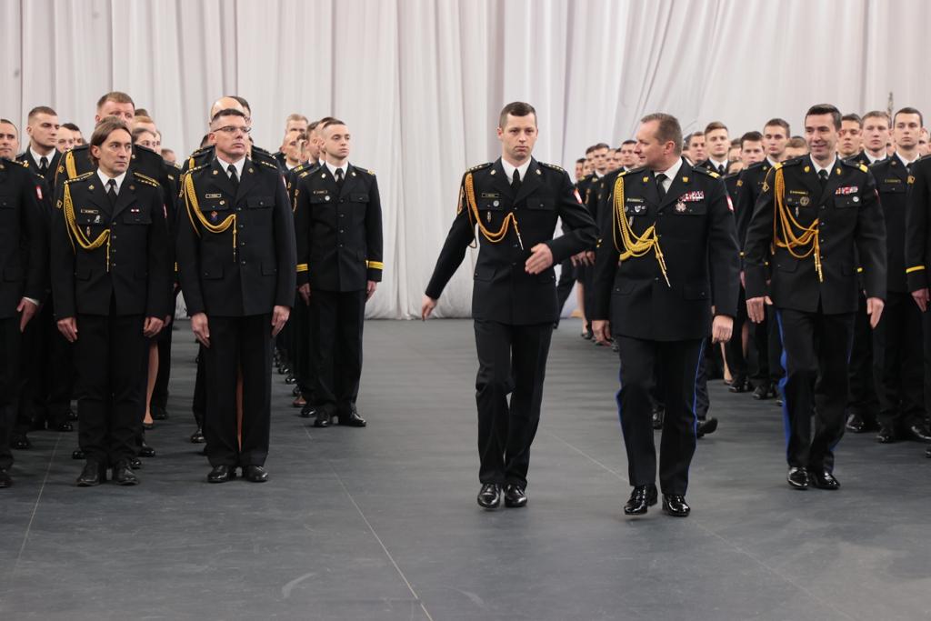 „Czerpcie z pobytu w szkole jak najwięcej… Dziękuję, że kształcicie się w zawodzie inżyniera pożarnictwa. To bardzo dla nas ważne, szczególnie, kiedy, jak wiemy mija 30 lat PSP i wracamy do jubileuszu strajku, jubileuszu uchwalenia naszych ustaw. Tak potężnie się od tego czasu rozwinęliśmy i stworzyliśmy Krajowy System Ratowniczo – Gaśniczy, który dzisiaj okazuje się, że może przyjmować więcej zadań ale to też za sprawą strażaków i kadry, która kształci ich. Życzę Wam wytrwałości, zaangażowania, pracy indywidulanej nad sobą… Zobaczycie jak piękna jest to służba, jakim honorem jest nosić ten mundur, jakie wspaniałe to są wartości służyć drugiemu człowiekowi…”.