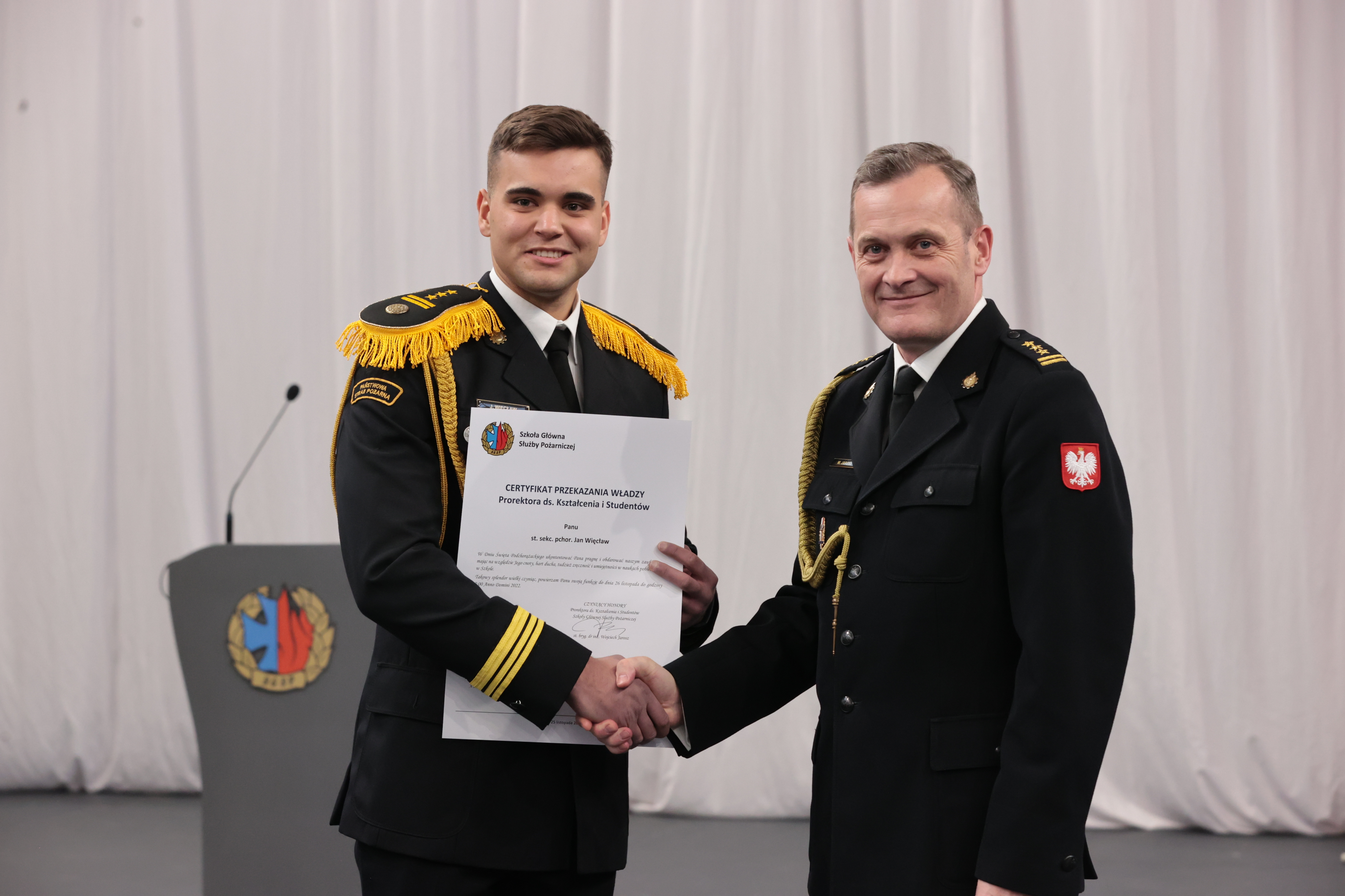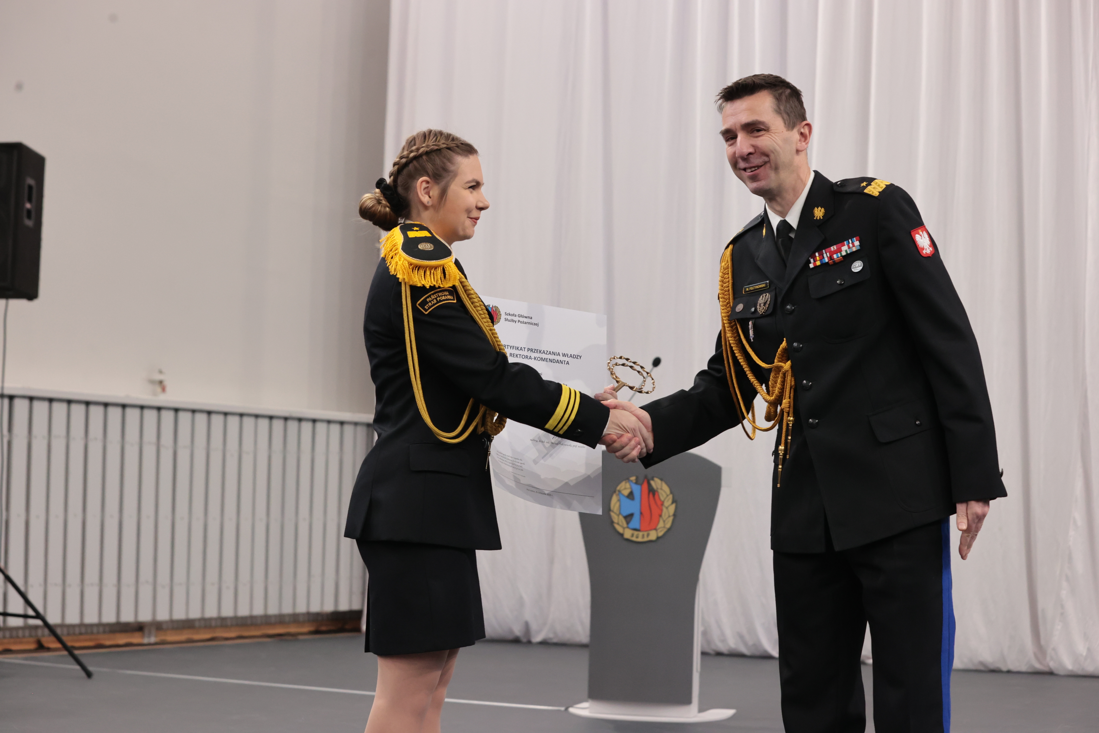 Zakończenie apelu poprzedzone zostało symbolicznym przekazaniem podchorążym władzy w Szkole Głównej Służby Pożarniczej.