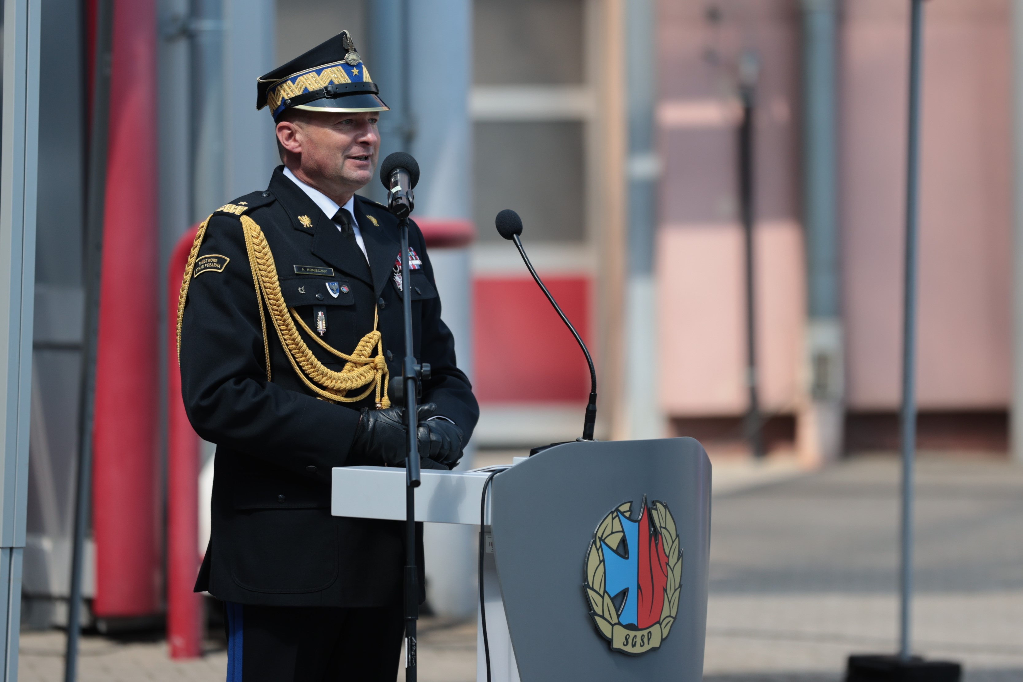 „W ocenie pana Prezydenta RP oraz pana Premiera RP ochrona przeciwpożarowa zajmuje ważne miejsce w systemie bezpieczeństwa publicznego, stanowi fundament. Zostało to zauważone i podkreślone przez najwyższe władze państwowe.” – przekazał zebranym nadbryg. Adam Konieczny.