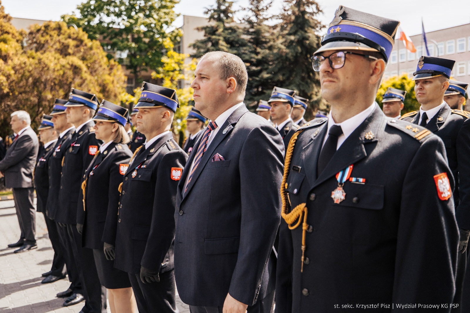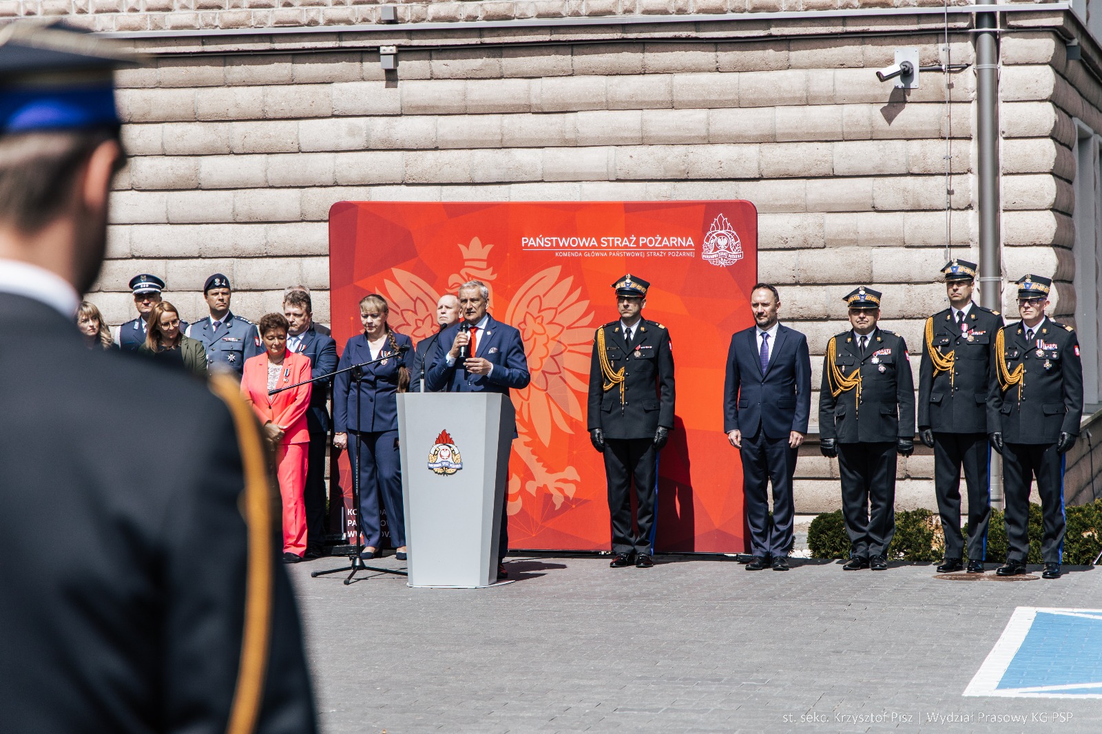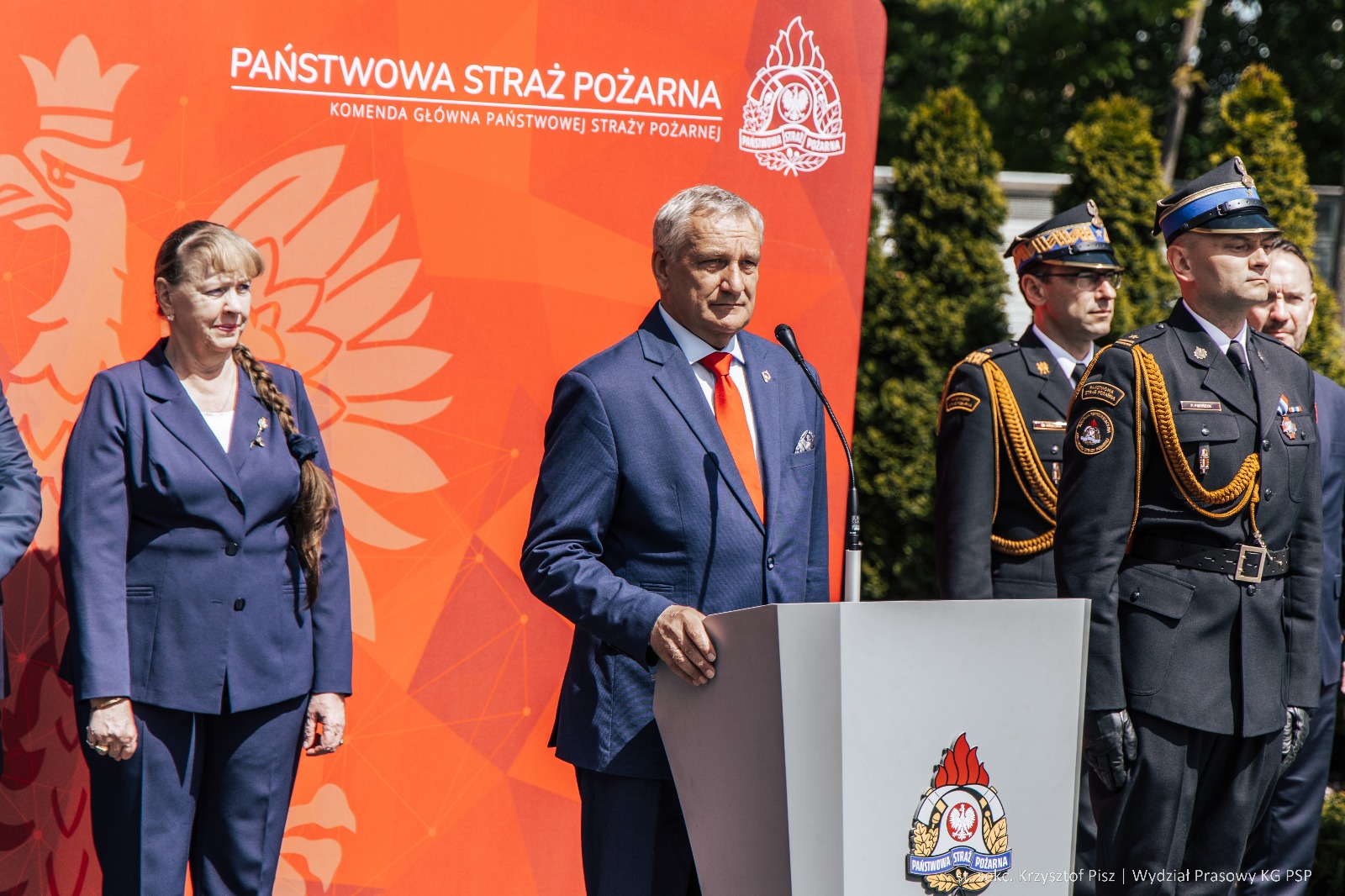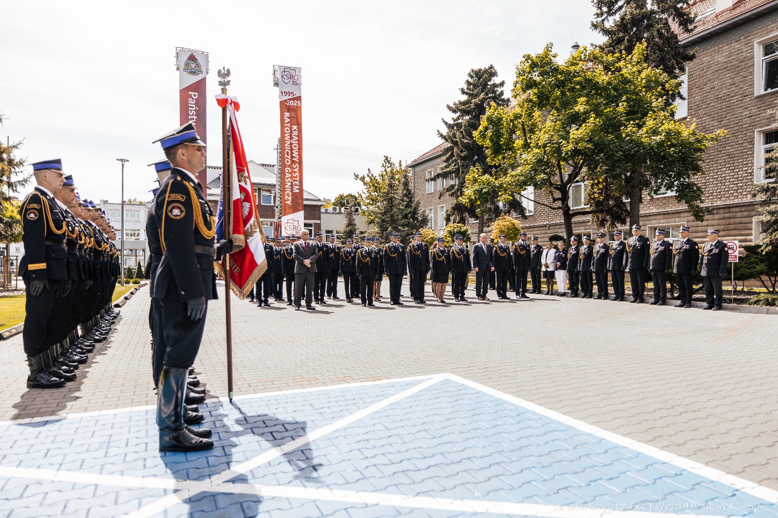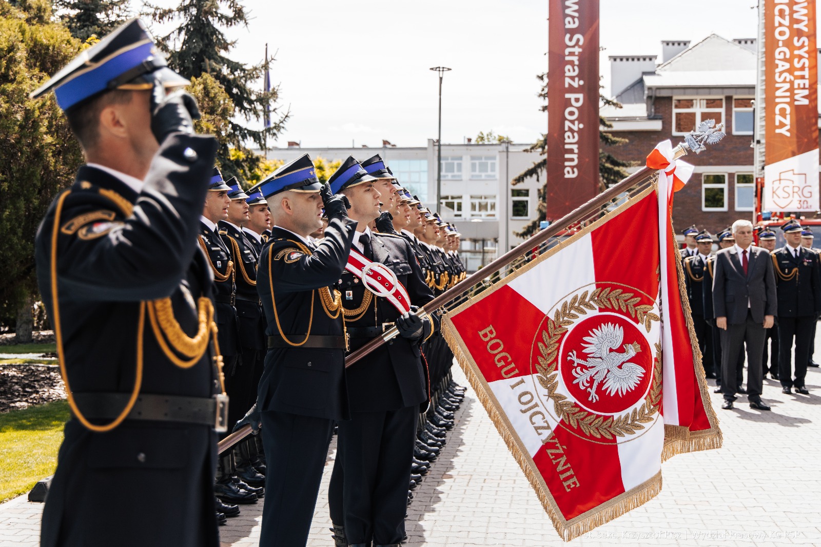 W środę 7 maja 2025 roku, na placu wewnętrznym Komendy Głównej Państwowej Straży Pożarnej odbył się uroczysty apel z okazji Dnia Strażaka. W wydarzeniu uczestniczyli: