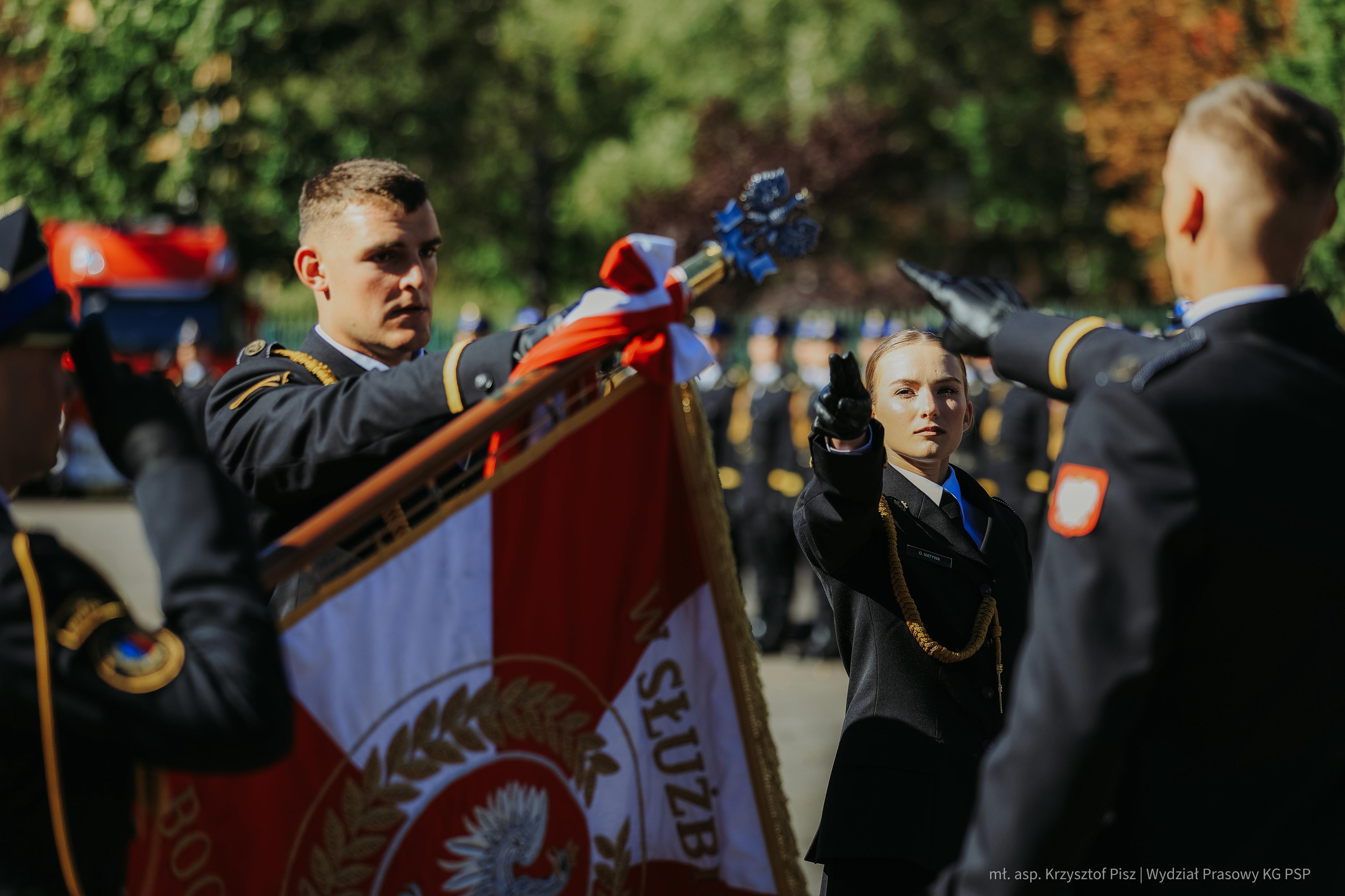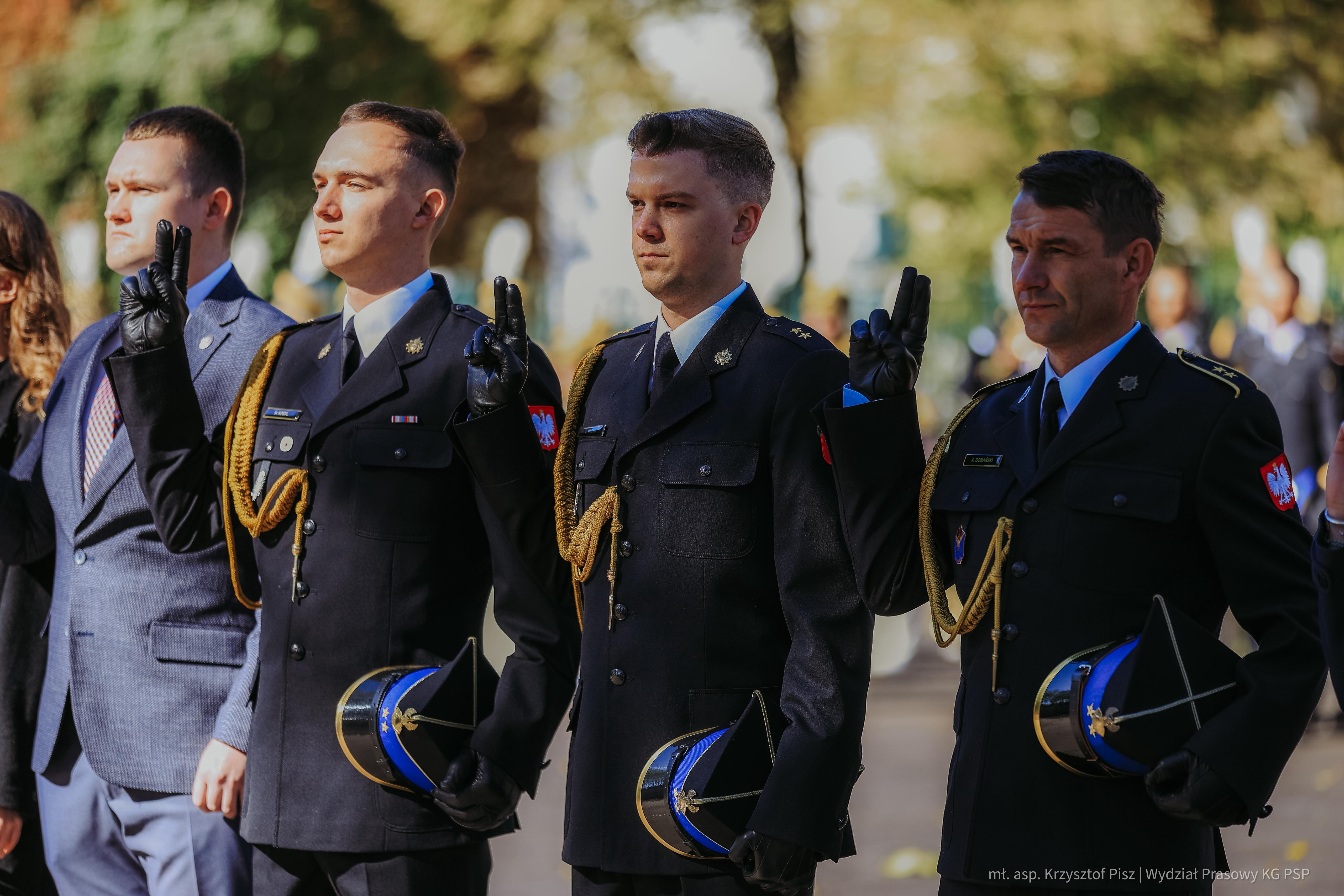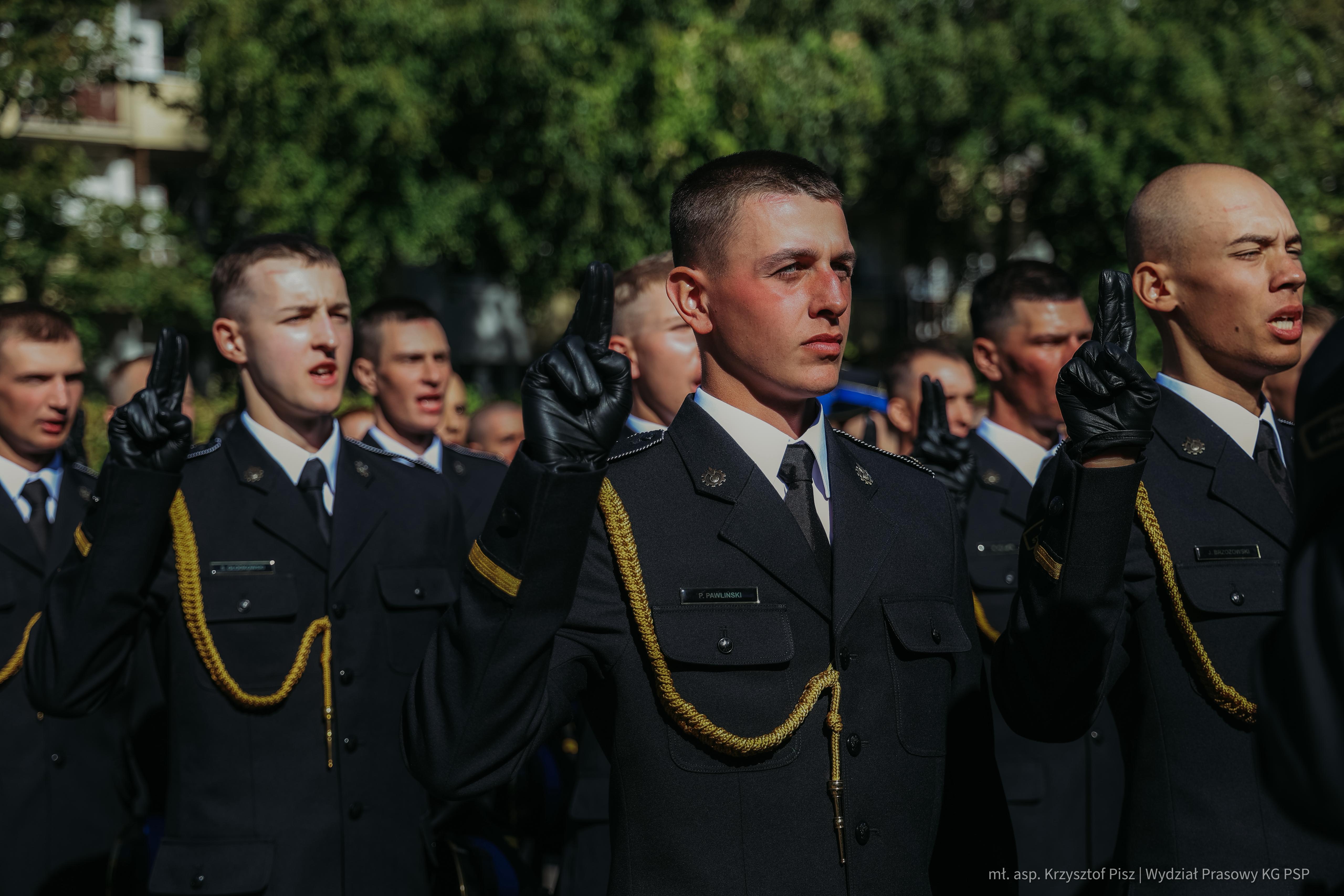 Podczas uroczystości miały miejsce ślubowania studentów Akademii Pożarniczej oraz strażaków Państwowej Straży Pożarnej w służbie kandydackiej, które nadały wydarzeniu szczególną rangę. W obecności wzruszonych rodzin i gości, wybrzmiały słowa ślubowania podchorążych: