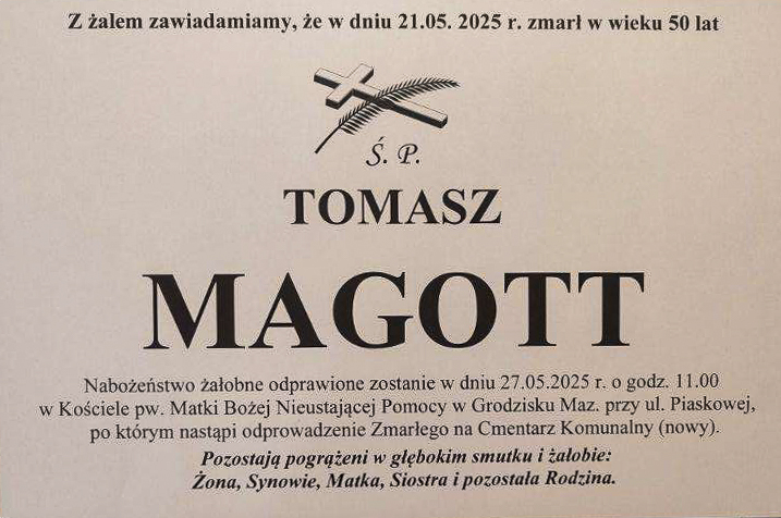 Informacja o uroczystości pogrzebowej śp. Tomasza Magotta