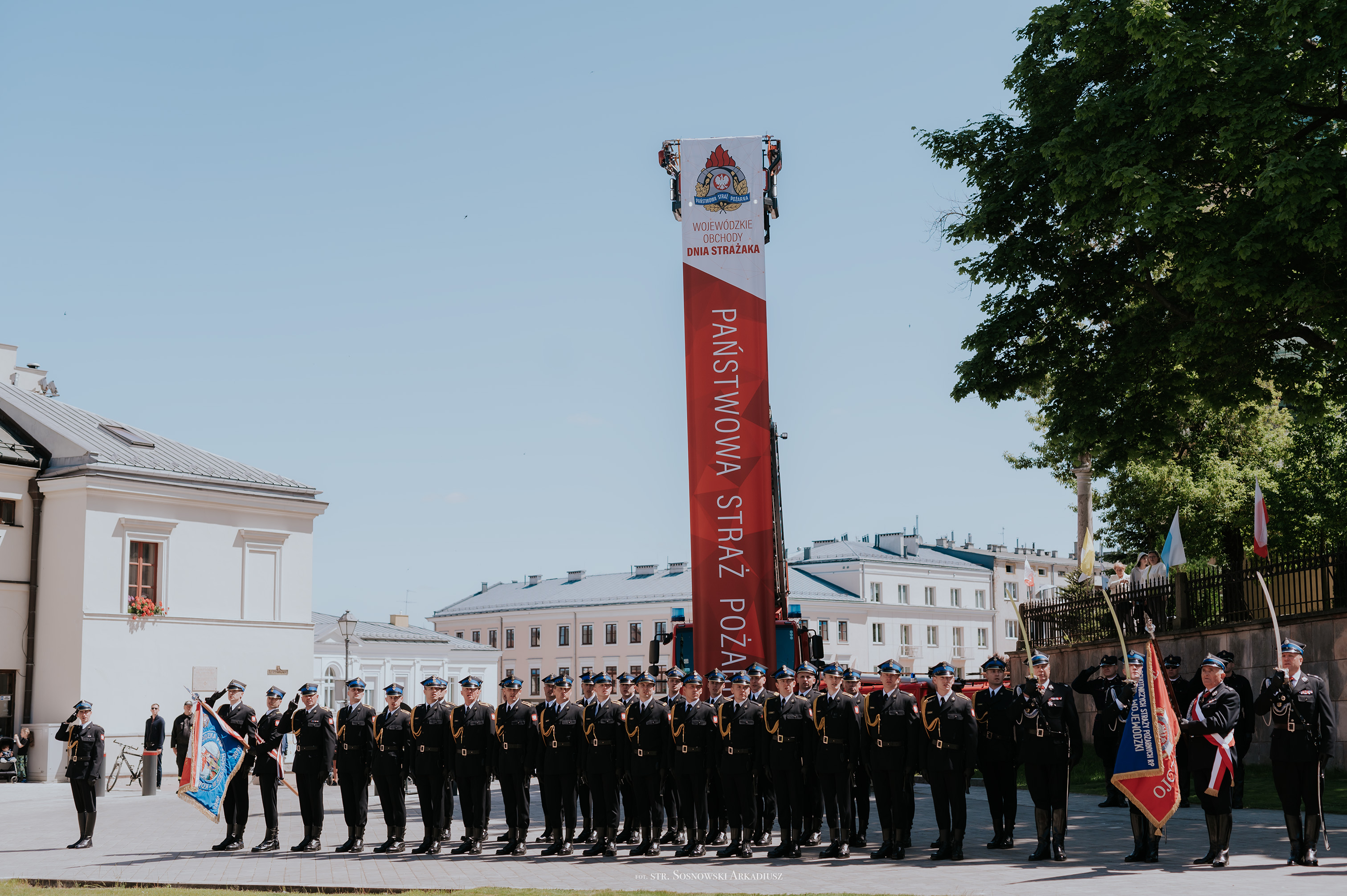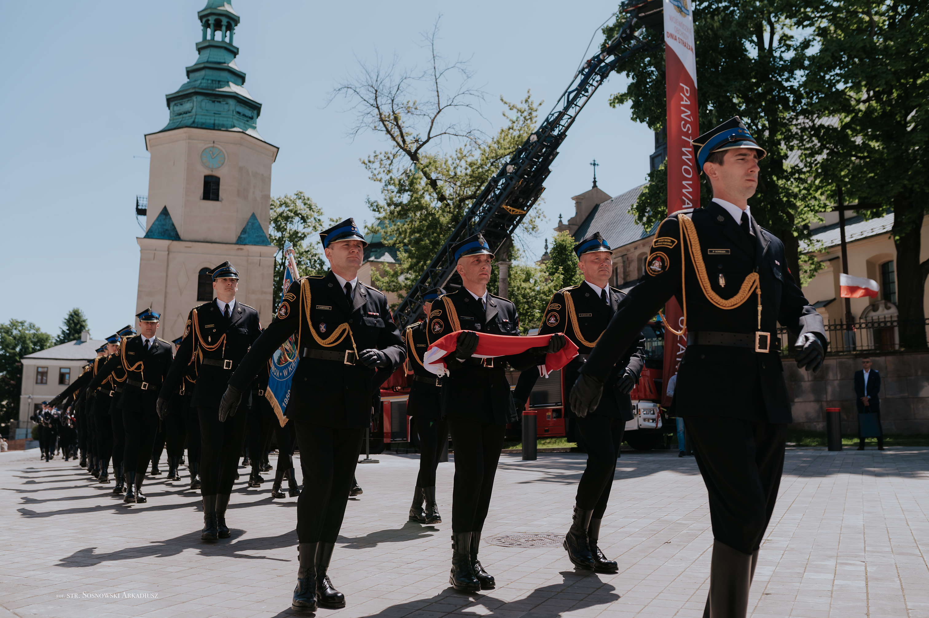 Zwieńczeniem uroczystości była defilada pododdziałów pożarniczych, w których zaprezentowały się kompanie reprezentacyjne oraz poczty sztandarowe PSP i OSP.