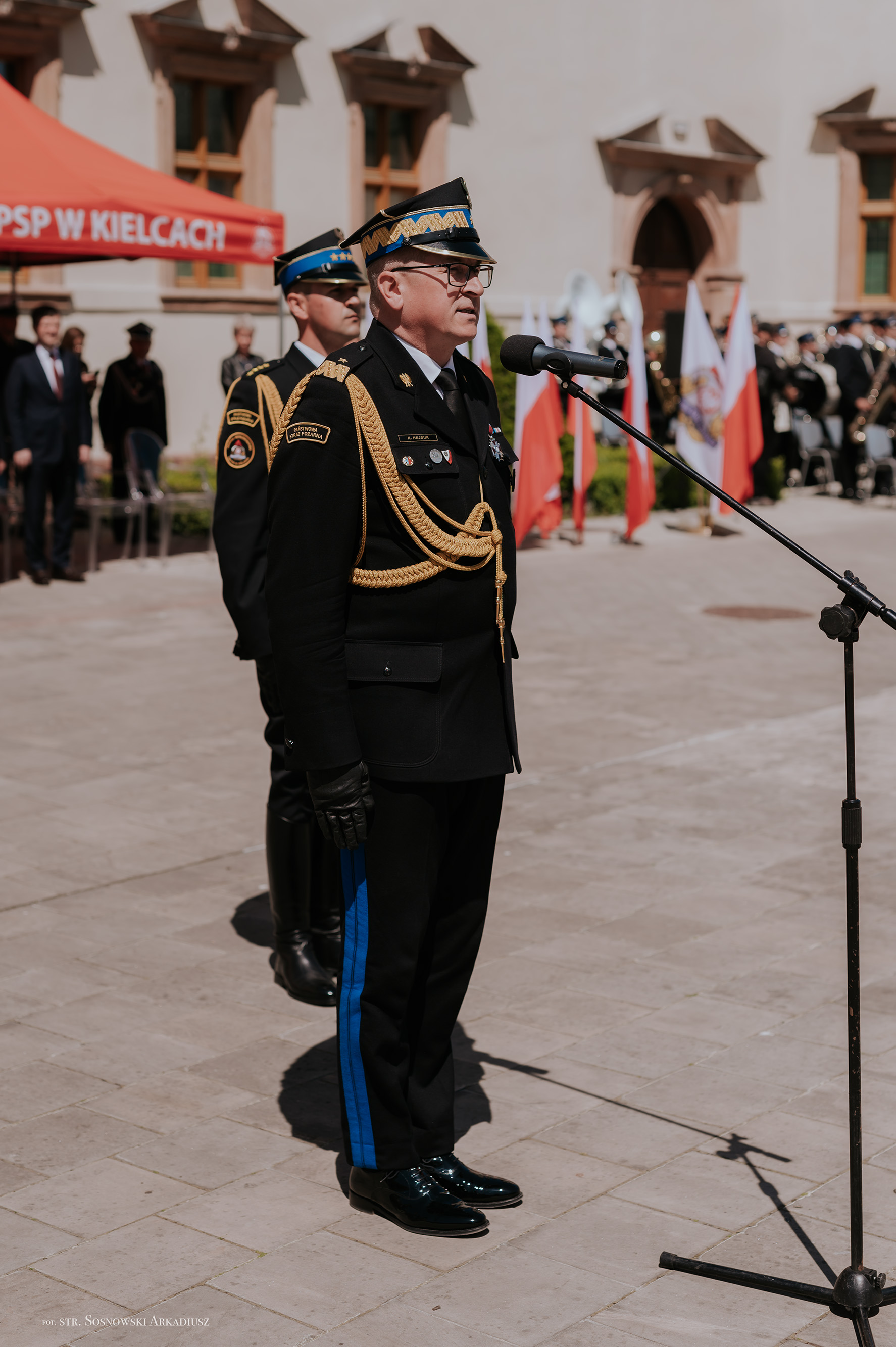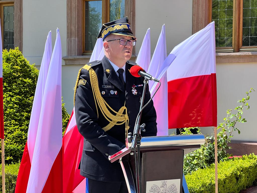 Zastępca komendanta głównego Państwowej Straży Pożarnej nadbryg. Krzysztof Hejduk w przemówieniu okolicznościowym zwrócił się do zebranych słowami: