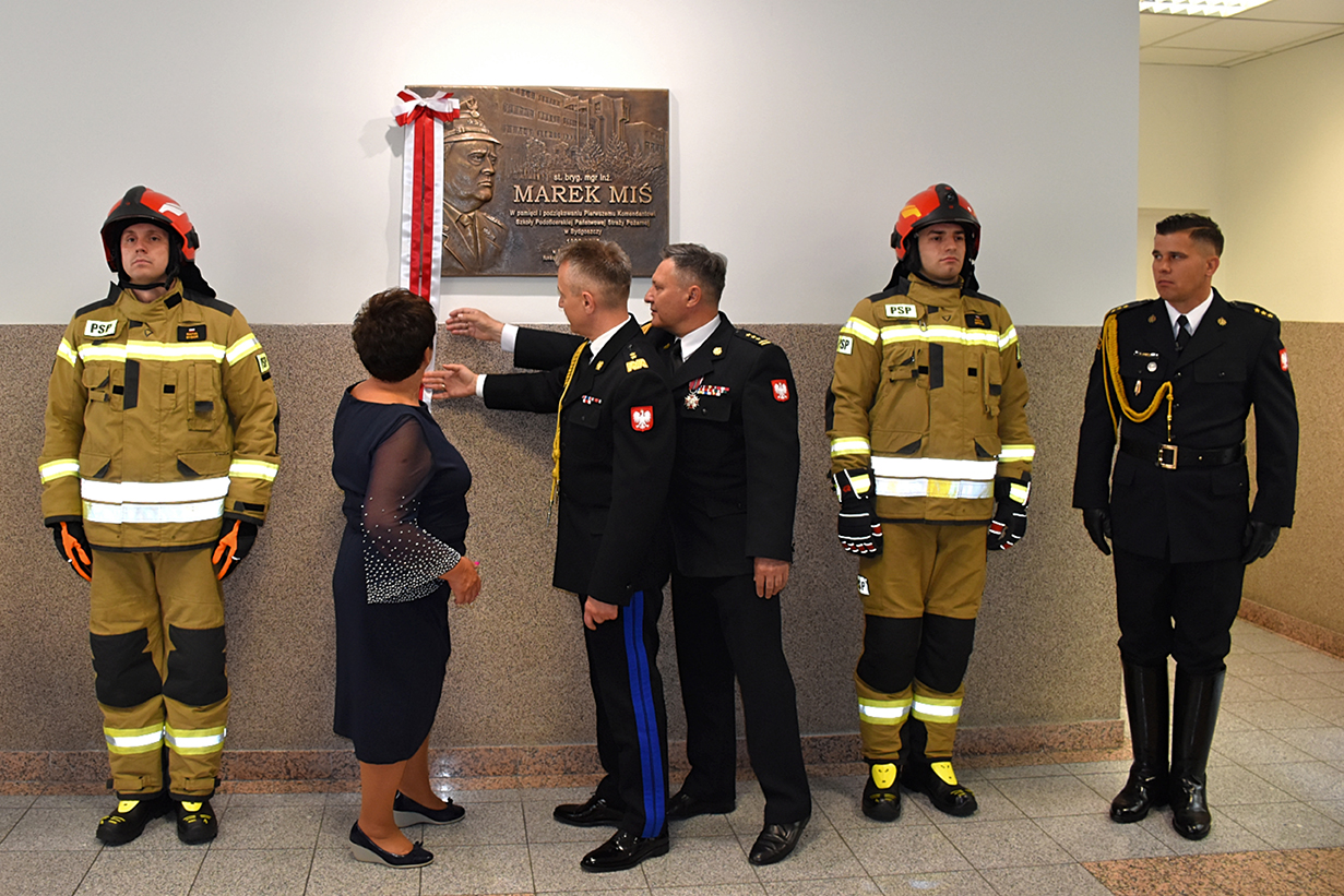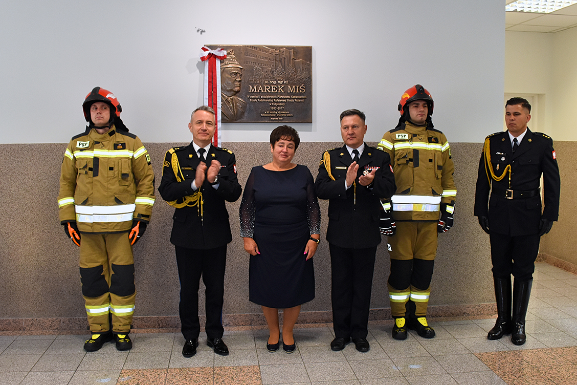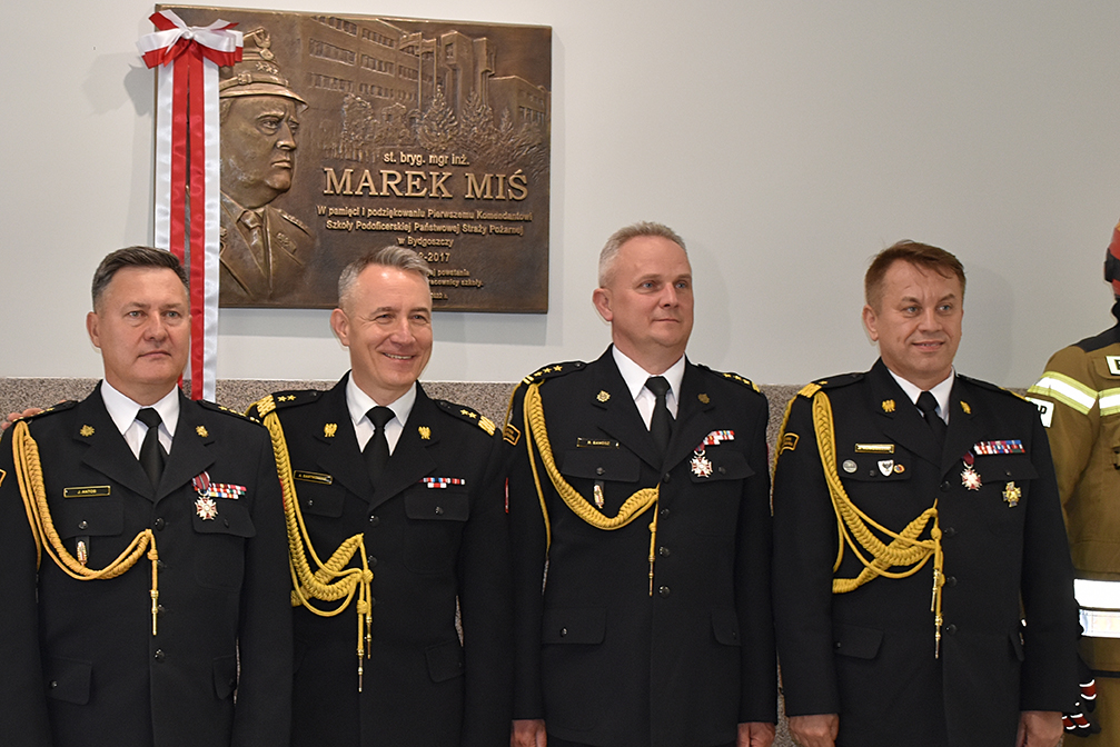 Wyjątkowym elementem ceremoni było odsłonięcie tablicy pamiątkowej pierwszego komendanta Szkoły Podoficerskiej Państwowej Straży Pożarnej w Bydgoszczy st. bryg. mgr inż. Marka Misia przez komendanta głównego PSP, komendanta Szkoły Podoficerskiej PSP st. bryg. Jacka Antosa oraz st. ogn. w st. spocz. Jadwigę Miś która przybyła wraz z rodziną. Komendant Miś zapisał się w historii szkoły jako wspaniały lider i menedżer, dzięki któremu kolejne pokolenia słuchaczy zdobywały wiedzę i umiejętności na wysokim poziomie i w komfortowych warunkach.