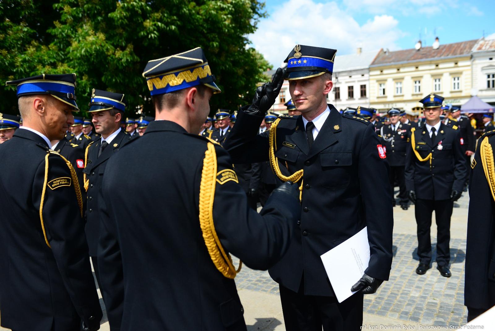 Wspólnie ze strażakami i pracownikami cywilnymi Państwowej Straży Pożarnej oraz druhami Ochotniczych Straży Pożarnych udział w uroczystości wziął komendant główny Państwowej Straży Pożarnej nadbryg. dr inż. Mariusz Feltynowski.
