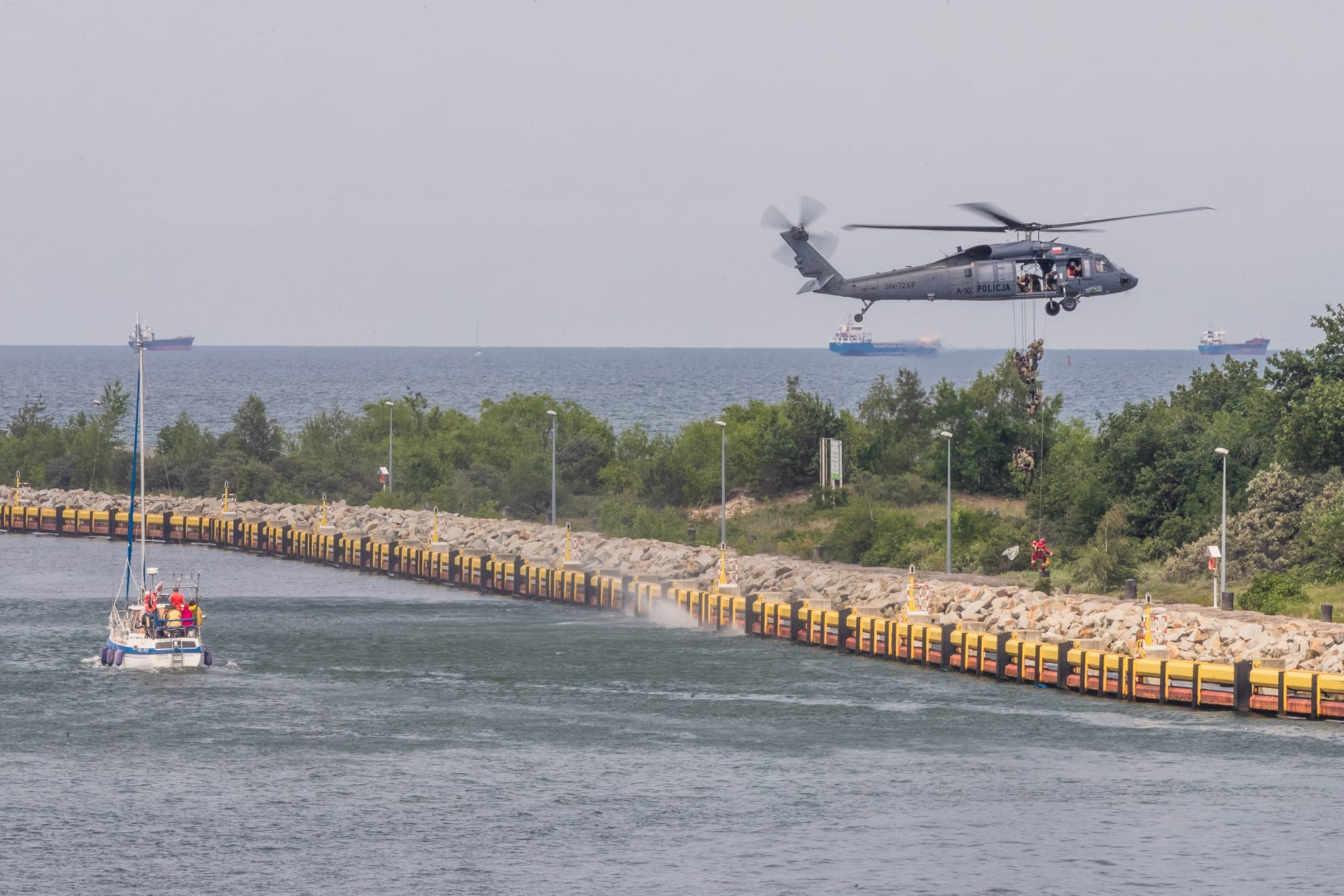 Kolejna odsłona ćwiczeń zgrywających Specjalistycznych Grup Ratownictwa Wysokościowego Państwowej Straży Pożarnej i załóg śmigłowców Policji, odbyła się 30 czerwca na terenie Portu Gdańskiego.