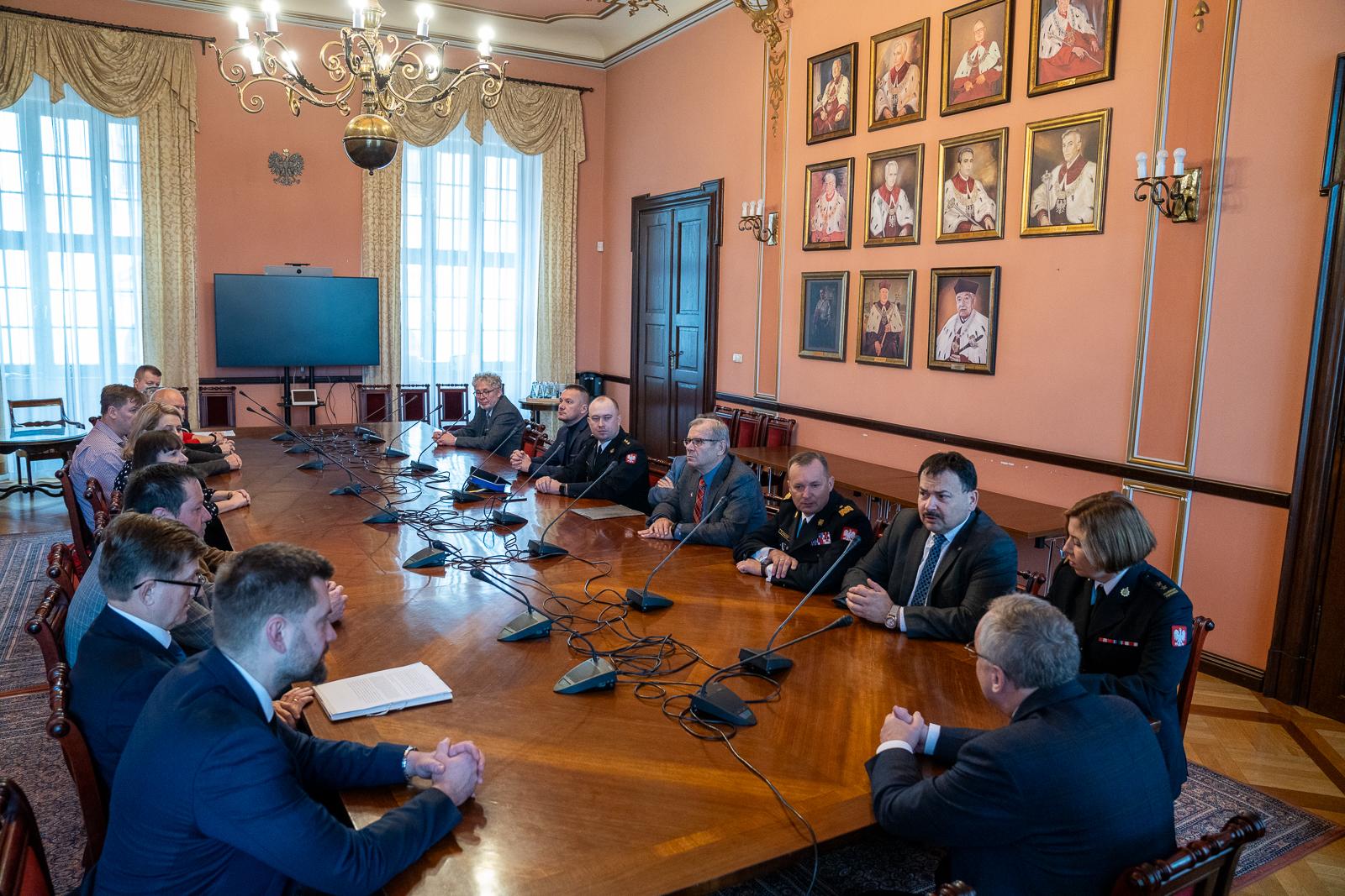 W spotkaniu udział wzięli nadbryg. dr inż. Adam Konieczny - zastępca komendanta głównego PSP, prof. dr hab. Robert Olkiewicz - rektor Uniwersytetu Wrocławskiego, prof. dr hab. Jacek Przygodzki - dziekan Wydziału Prawa, Administracji i Ekonomii, bryg. dr hab. inż. Bożena Kukfisz, prof. uczelni - kierownik Projektu GOSPOSTRATEG IX oraz znamienici zaproszeni goście - członkowie Komitetu Sterującego i Wykonawcy merytoryczni projektu.
