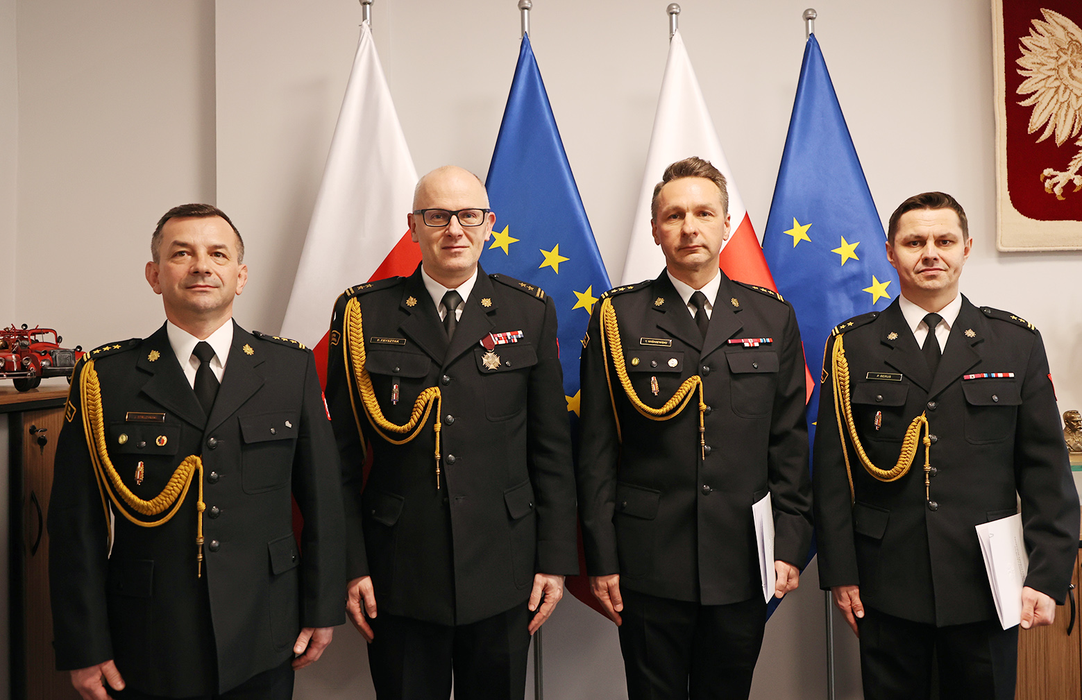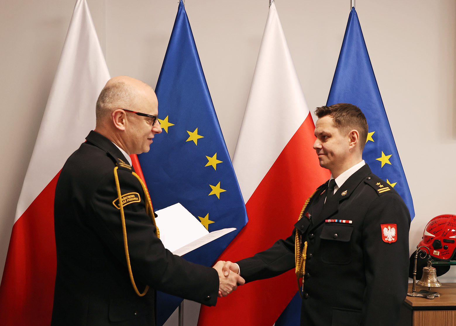 Decyzje personalne wręczył zastępca komendanta głównego PSP bryg. Paweł Frysztak w obecności p.o. wielkopolskiego komendanta wojewódzkiego PSP st. bryg. Jacka Strużyńskiego.