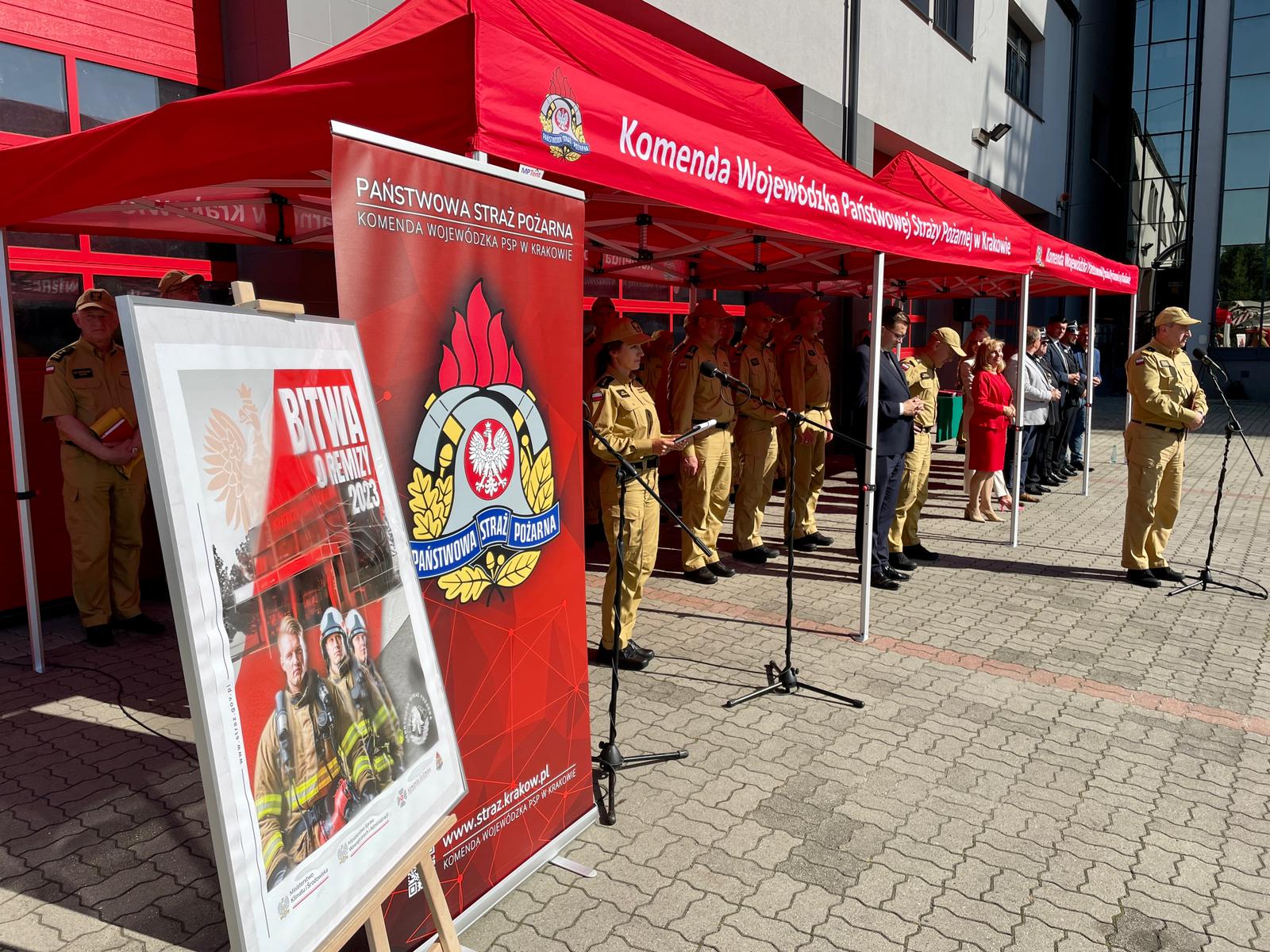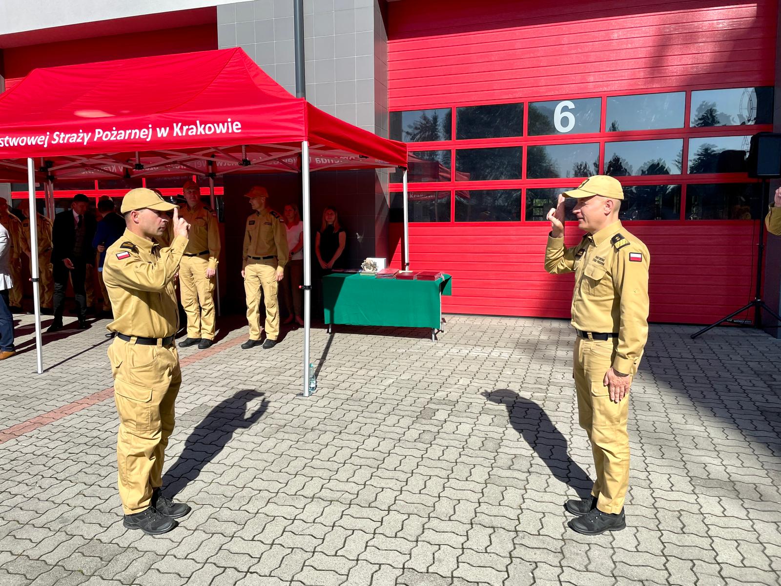 W czwartek 28 września 2023 r. w Komendzie Wojewódzkiej PSP w Krakowie odbyła się uroczysta zbiórka podczas której, komendant główny PSP gen. brygadier Andrzej Bartkowiak wspólnie z wojewodą małopolskim Panem Łukaszem Kmita oraz małopolskim komendantem wojewódzkim PSP nadbryg. Piotrem Filipkiem, wręczył promesy finansowe dla 25 jednostek Ochotniczych Straży Pożarnych województwa małopolskiego z przeznaczeniem na utrzymanie gotowości bojowej jednostek a także budowę i modernizację strażnic.