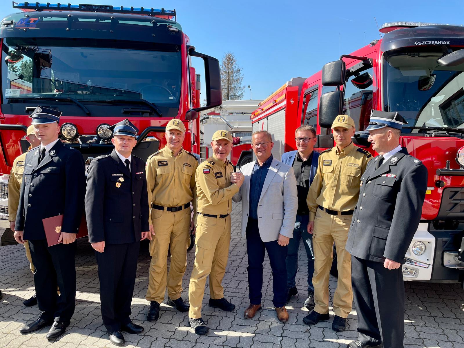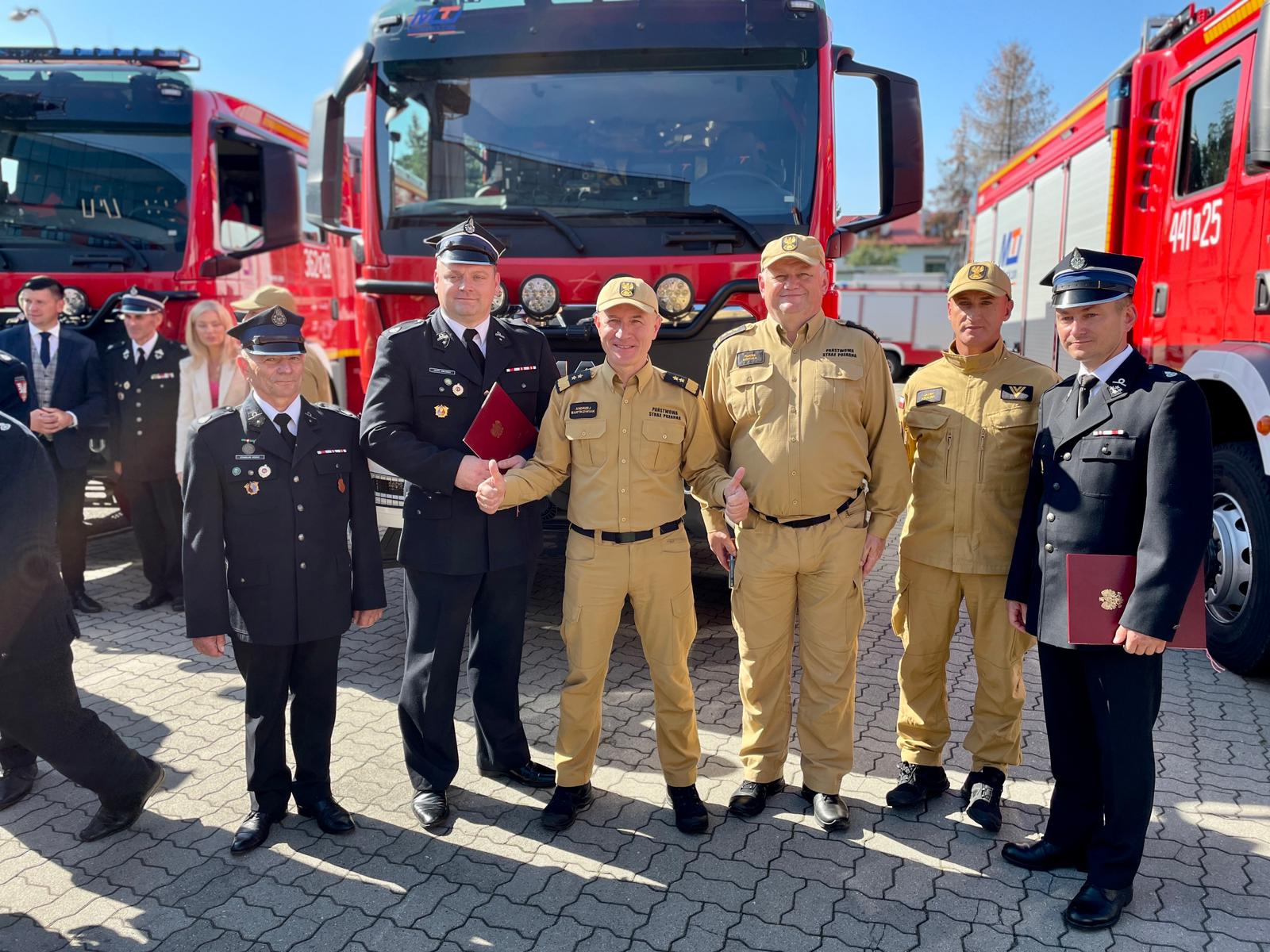 Podczas wydarzenia, jednostki Państwowej Straży Pożarnej otrzymały natomiast wsparcie sprzętowe w postaci agregatów prądotwórczych oraz samochodów ratowniczo – gaśniczych.