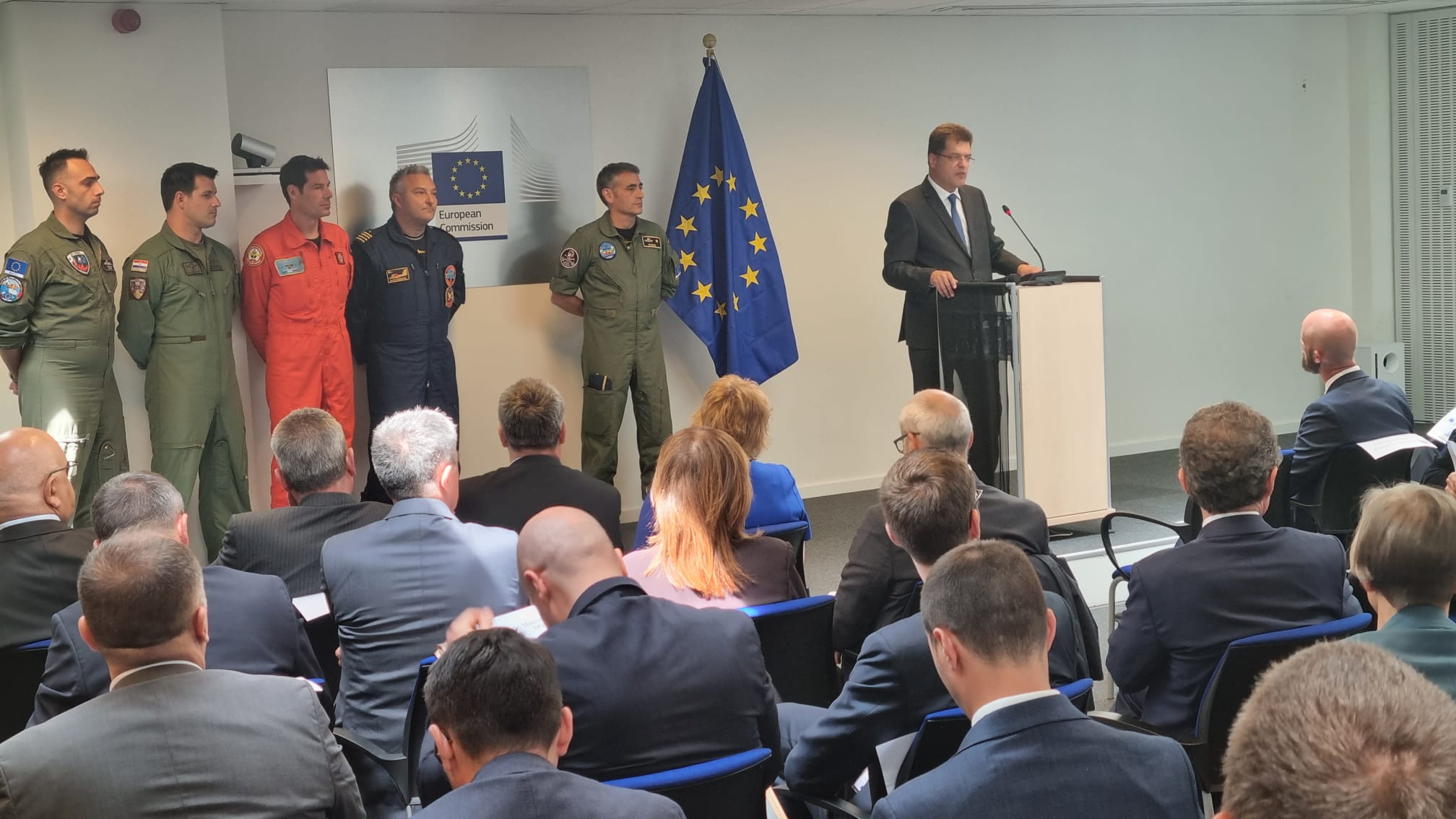 W trakcie wydarzenia w Brukseli pan Janez Lenarčič komisarz UE ds. zarządzania kryzysowego przekazał gratulacje zespołom lądowym i powietrznym, które w tym roku stanowić będą rdzeń reagowania Unii Europejskiej w rozpoczynającym się sezonie pożarów lasów. Piloci samolotów i śmigłowców gaśniczych oraz przedstawiciele grup ratowniczych działających z ziemi, w tym mł. kpt. Waldemar Wielgosz z modułu GFFFV Poznań, wzięli również udział w odprawie z pracownikami ERCC, stanowiącej kulminację przygotowań do nadchodzącego lata. W tym roku m.in. dwie kilkunastoosobowe zmiany strażaków PSP towarzyszyć będą strażakom z południowej Francji, stanowiąc dla nich wsparcie na miejscu i jednocześnie szkoląc się z technik gaszenia pożarów lasów stosowanych w tej części kontynentu.