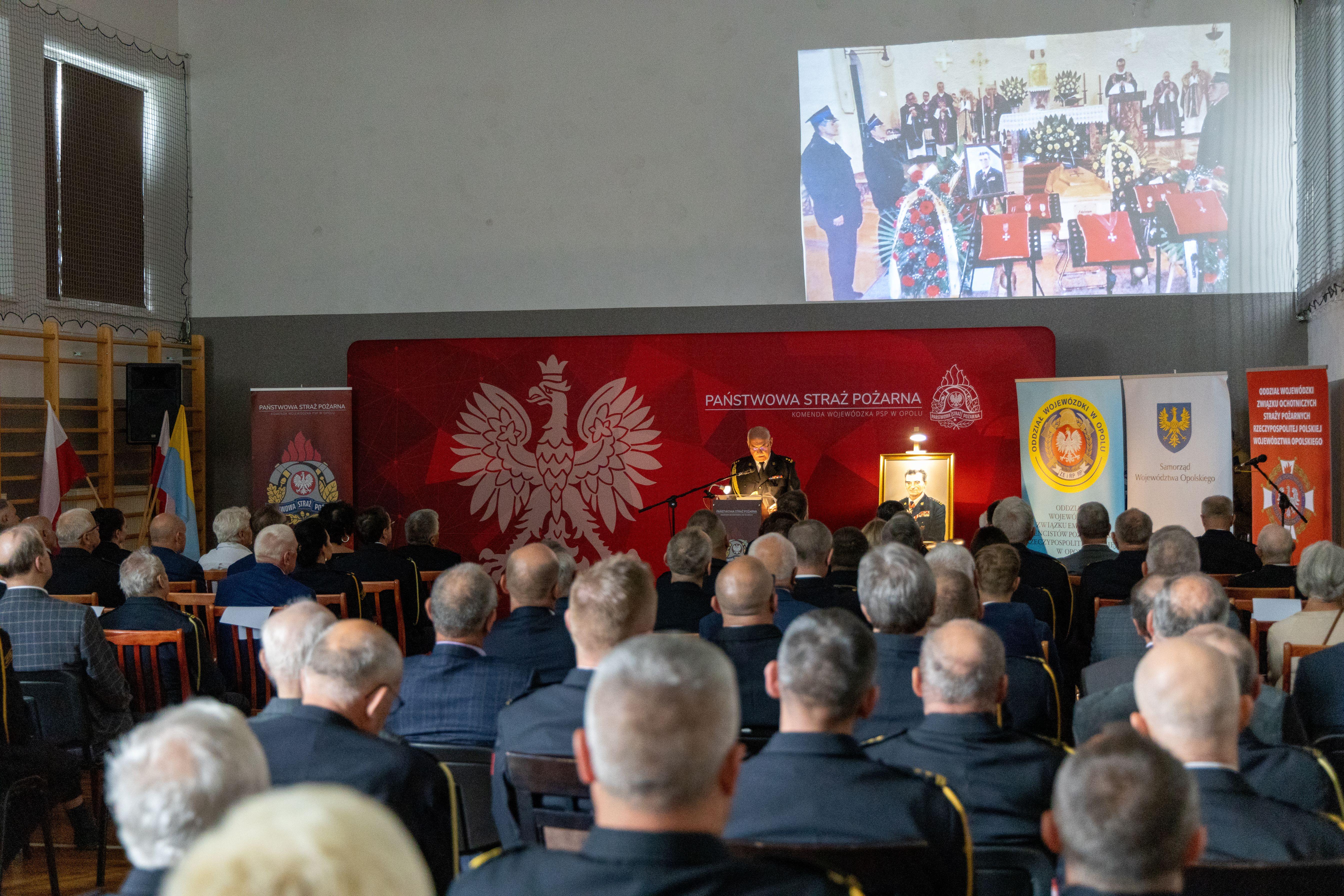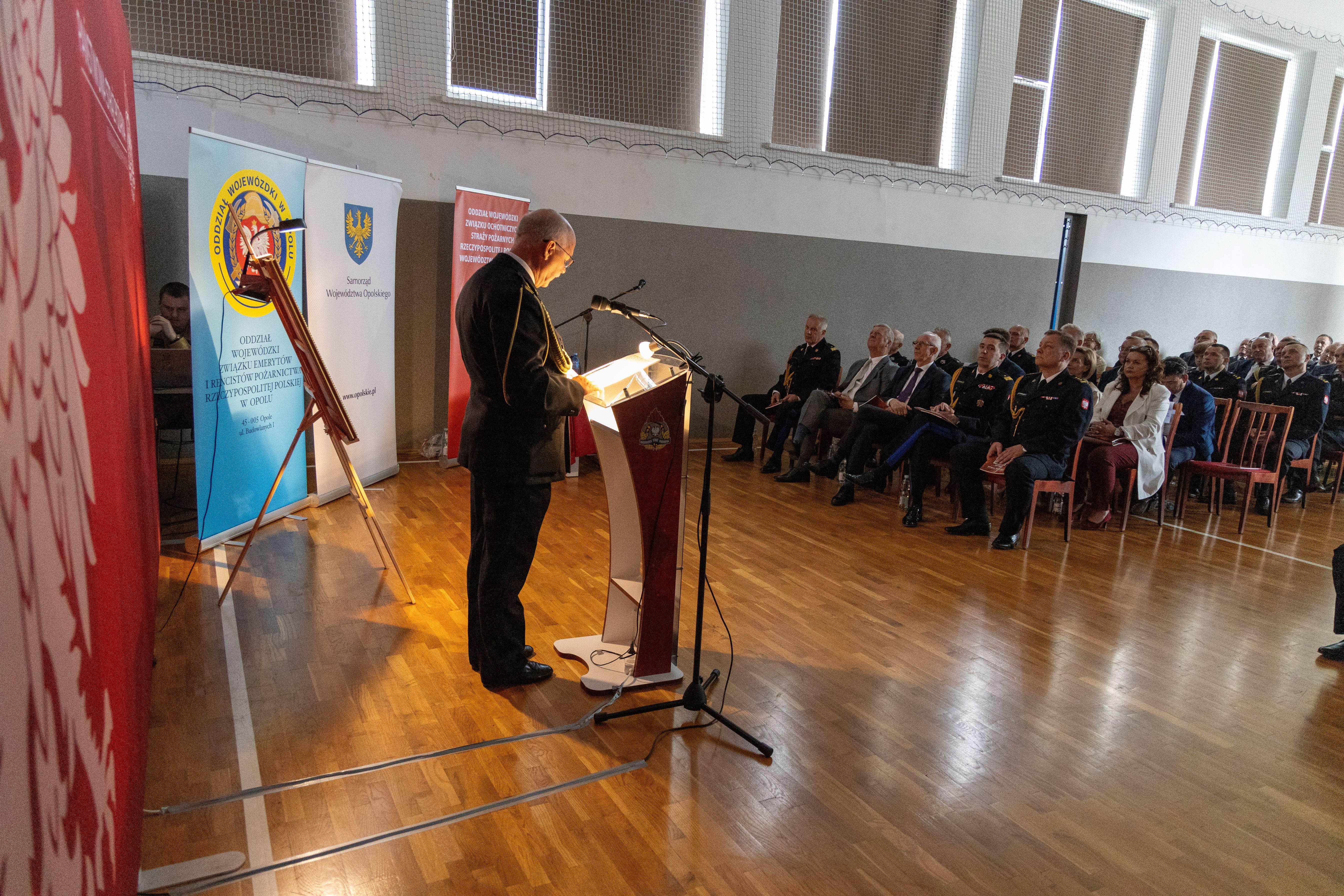 Po uroczystym odsłonięciu tablicy st. bryg. Paweł Kielar, opolski Komendant Wojewódzki PSP zaprosił uczestników uroczystości na konferencję pt. „Zachowanie i upowszechnianie historii i tradycji pożarniczych w województwie opolskim. Dziedzictwo nestora polskiego pożarnictwa płk. poż. Zdzisława Filingiera”.