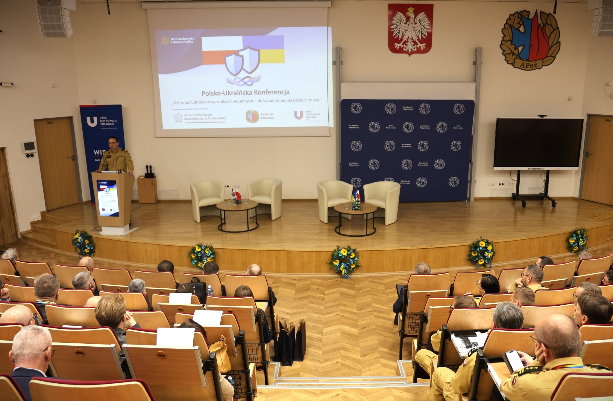 W dniach 17–18 listopada 2025 r. w Akademii Pożarniczej odbywa się konferencja „Ochrona ludności w warunkach wojennych – doświadczenia miast ukraińskich”, zorganizowana pod honorowym patronatem MSWiA. Jej współorganizatorami były Unia Metropolii Polskich oraz Ministerstwo Spraw Wewnętrznych i Administracji, przy współudziale Akademii Pożarniczej.