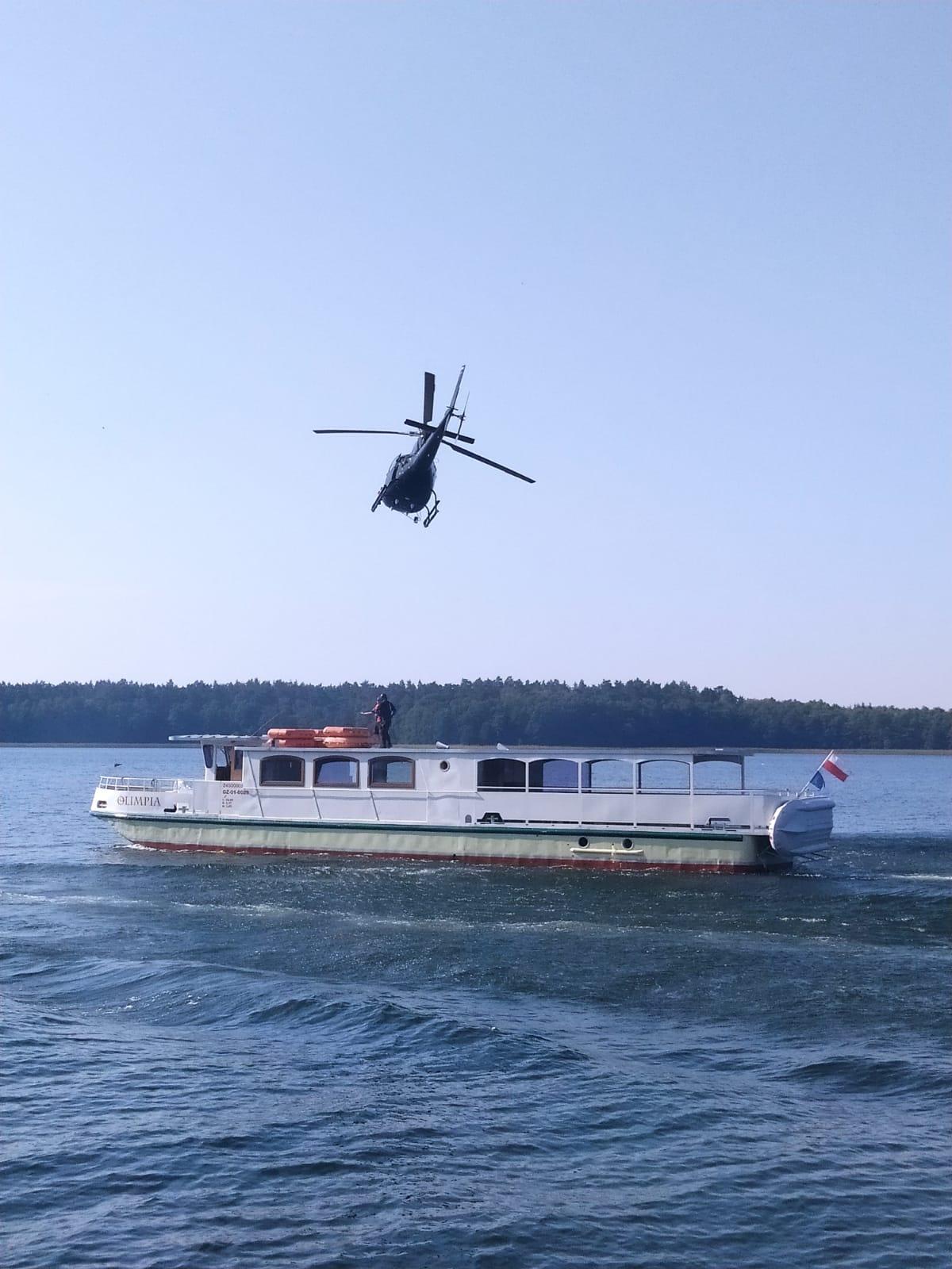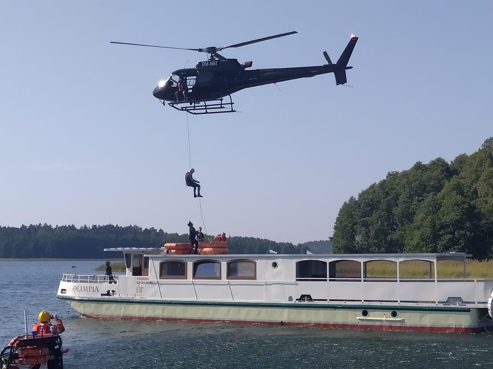 W części warsztatowej przećwiczono operacje prowadzone ze śmigłowca AS350 w zakresie desantu w miejsca trudnodostępne, w tym na jednostki pływające oraz do wody.