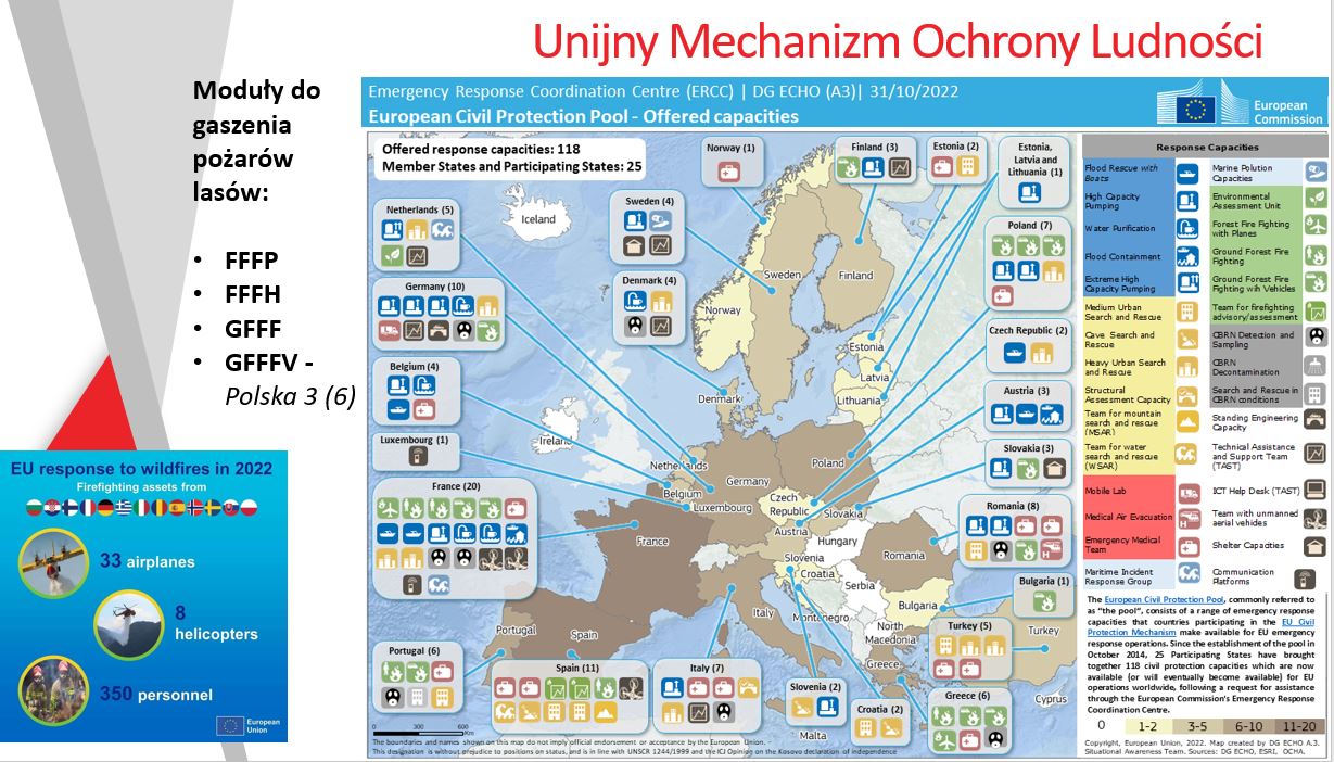 - Unijnego Mechanizmu Ochrony Ludności przez pryzmat modułów do gaszenia pożarów lasów,