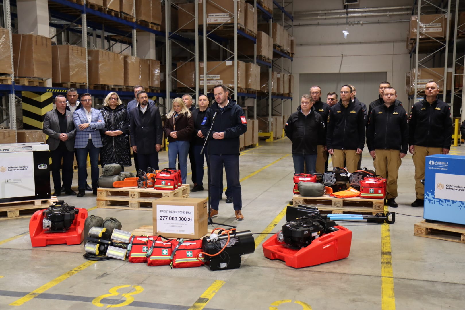 Dziś w Niemcach (woj. lubelskie) na terenie składnicy Rządowej Agencji Rezerw Strategicznych odbyła się konferencja prasowa Ministra Spraw Wewnętrznych i Administracji Marcina Kierwińskiego poświęcona tematyce ochrony ludności i obrony cywilnej.