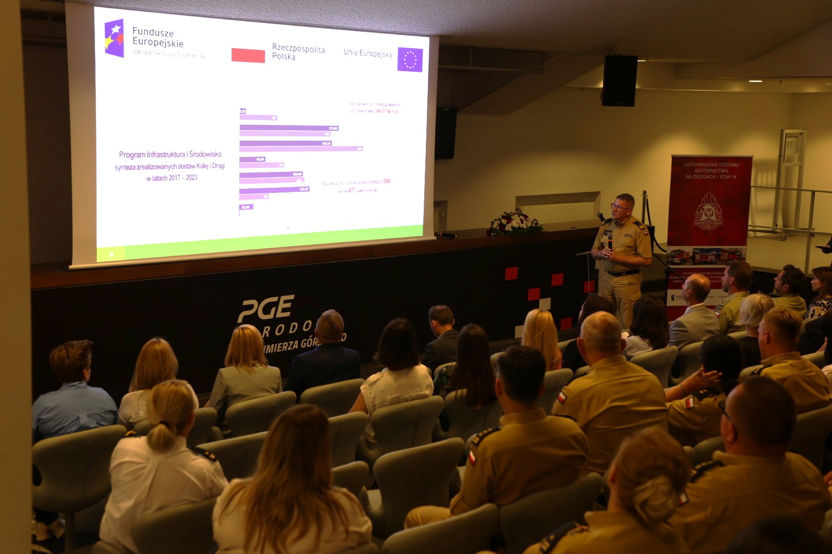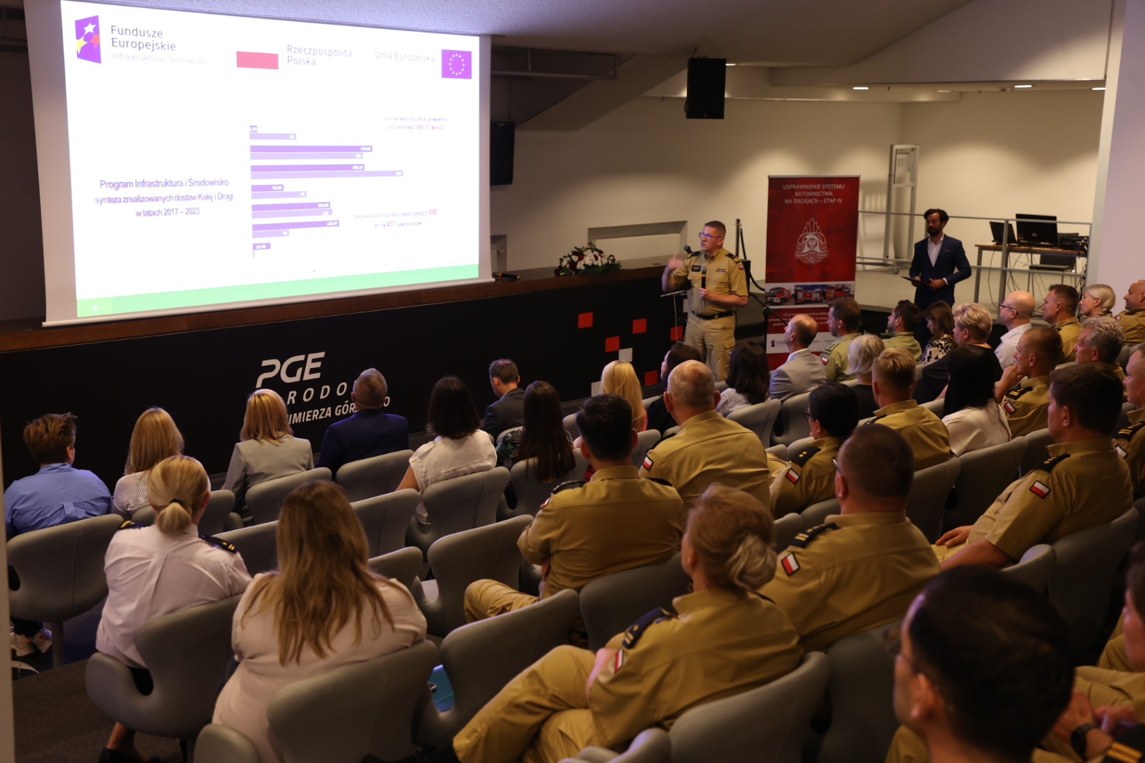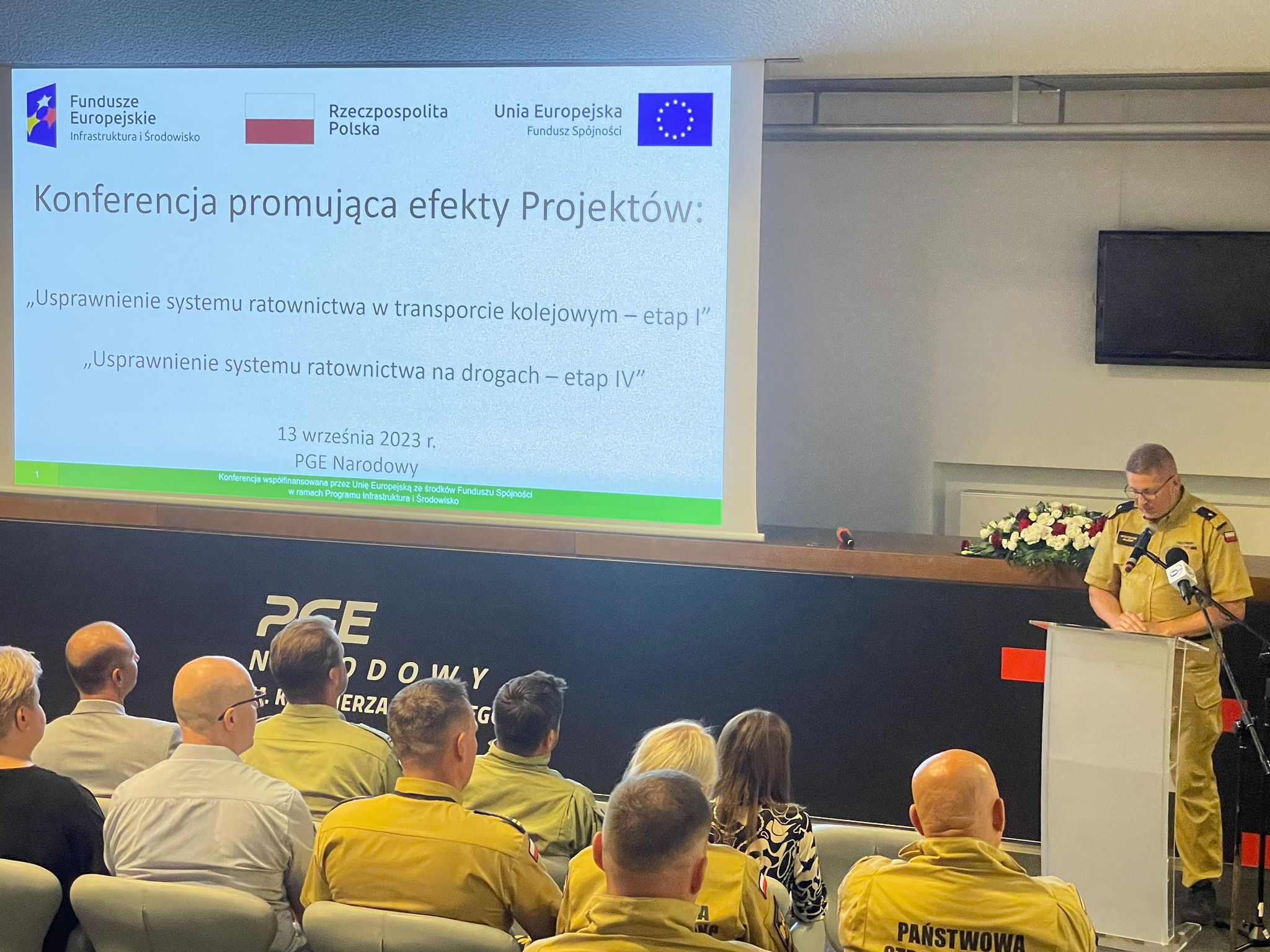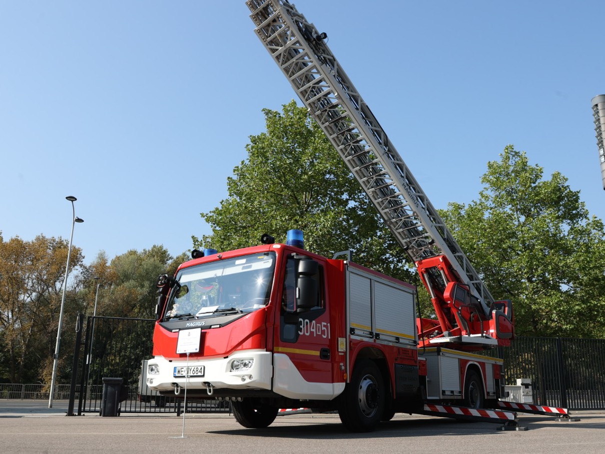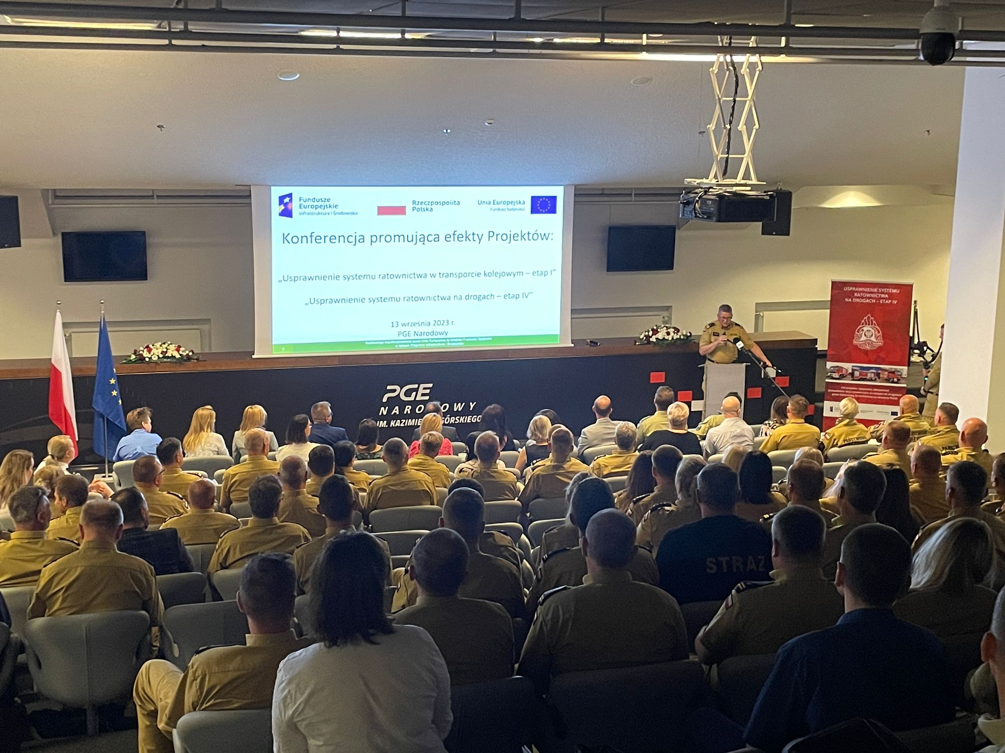 13 września 2023 r. na terenie stadionu PGE Narodowy w Warszawie odbyła się konferencja prezentująca efekty realizacji zakupu sprzętu dla Państwowej Straży Pożarnej, w ramach dwóch projektów współfinansowanych z funduszy Unii Europejskiej tj.: