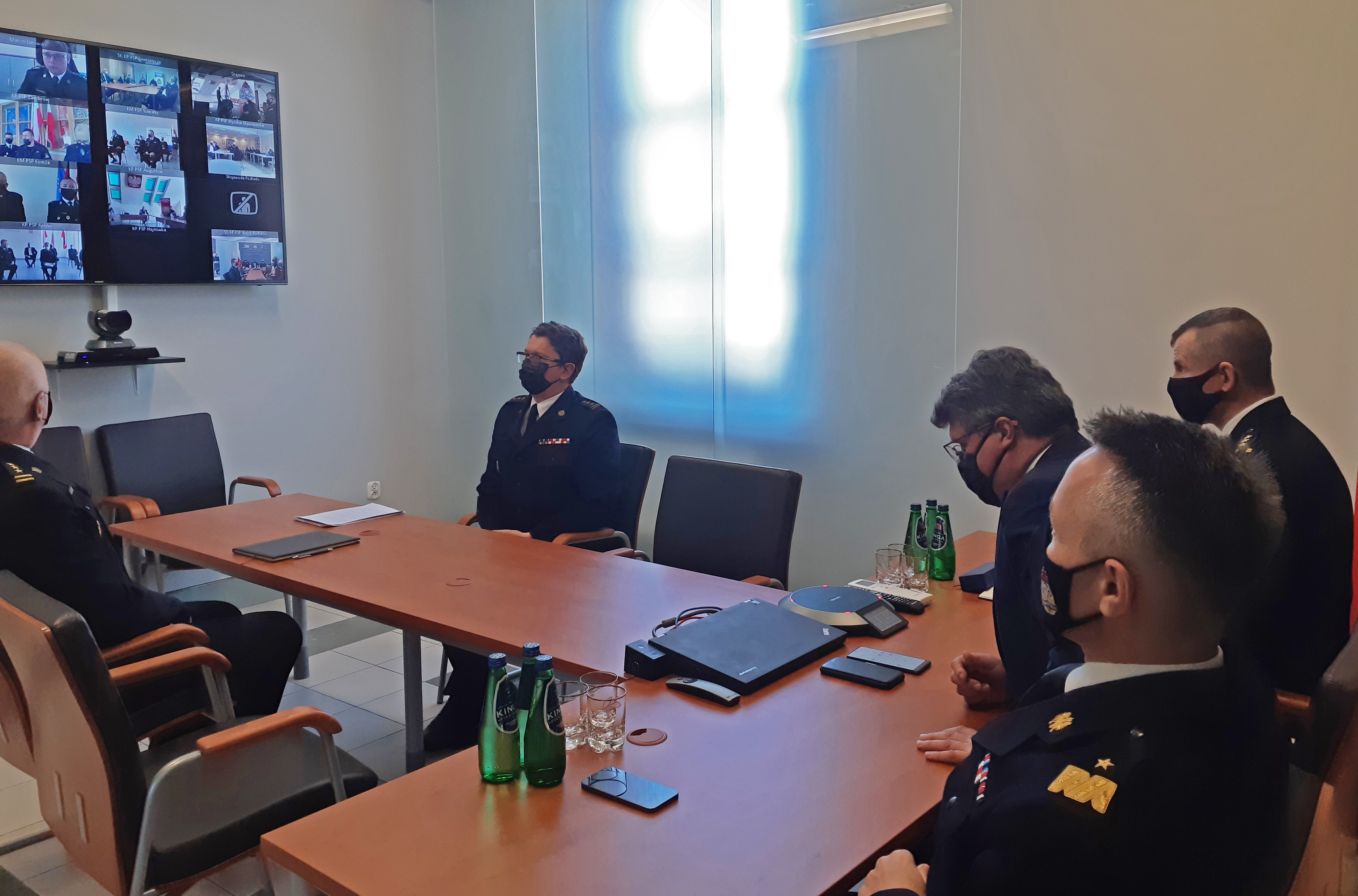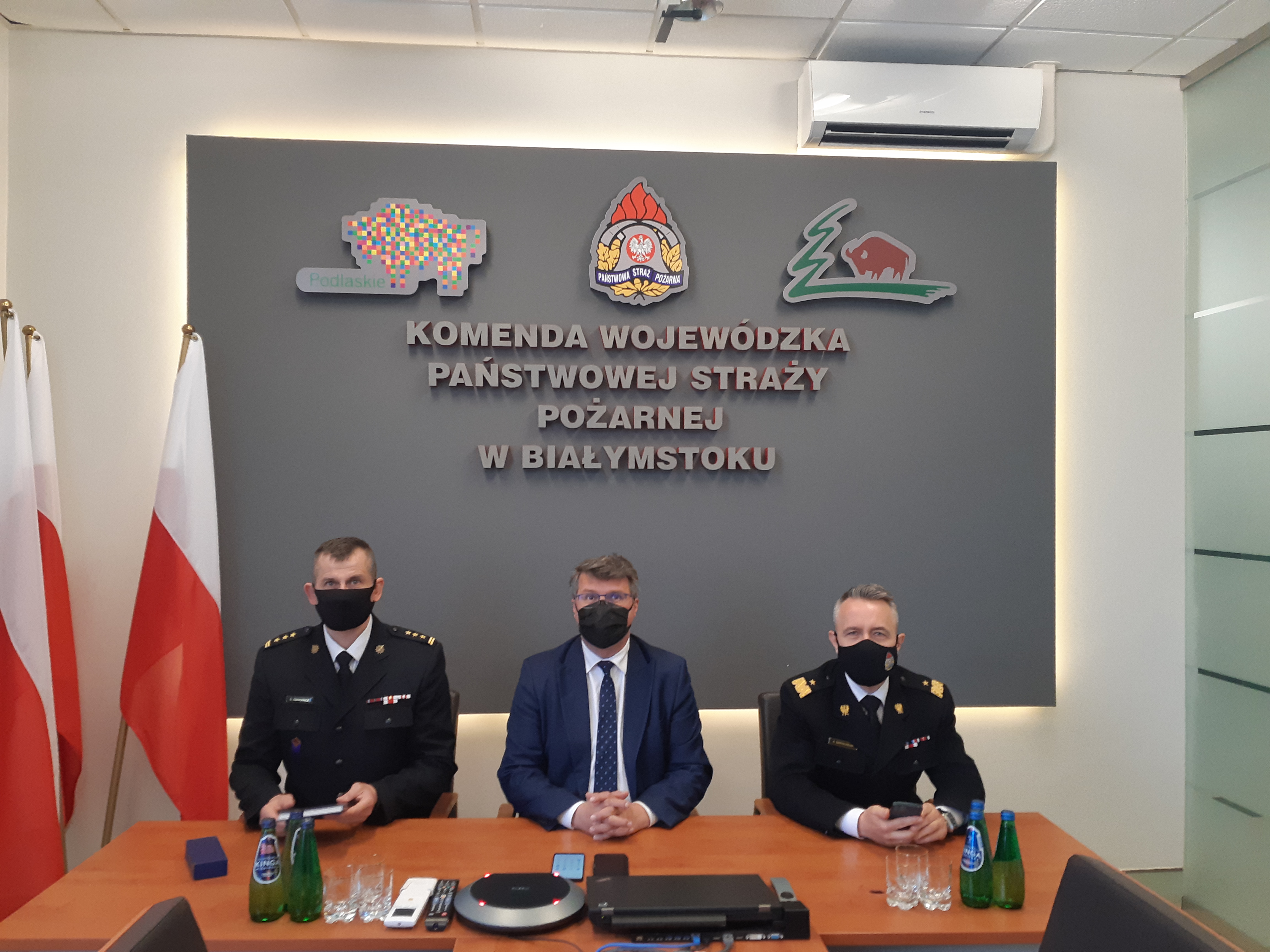 - w siedzibie KW PSP w Białymstoku w formie wideokonferencji, w której uczestniczyli również: przedstawiciel Wojewody Podlaskiego, Pan Adam Czubaty; Podlaski Komendant Wojewódzki PSP, st. bryg. Sebastian Zdanowicz wraz z Zastępcami; Komendanci Powiatowi/Miejscy PSP województwa podlaskiego; Prezes Zarządu Oddziału Wojewódzkiego Związku Ochotniczych Straży Pożarnych RP w Białymstoku, dh Andrzej Koc; Prezesi Powiatowi Związku Ochotniczych Straży Pożarnych RP województwa podlaskiego; Komendanci Gminni OSP województwa podlaskiego.