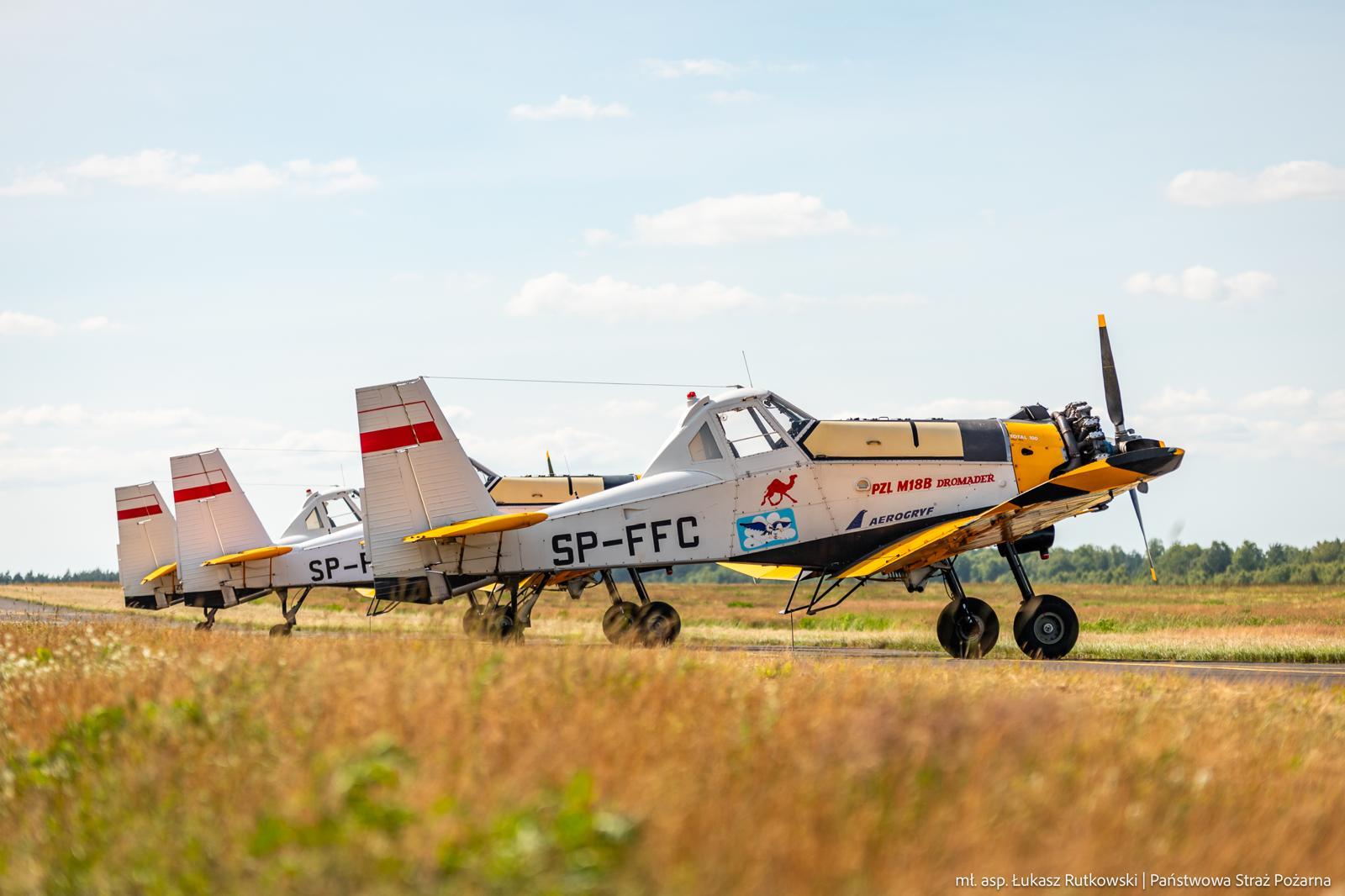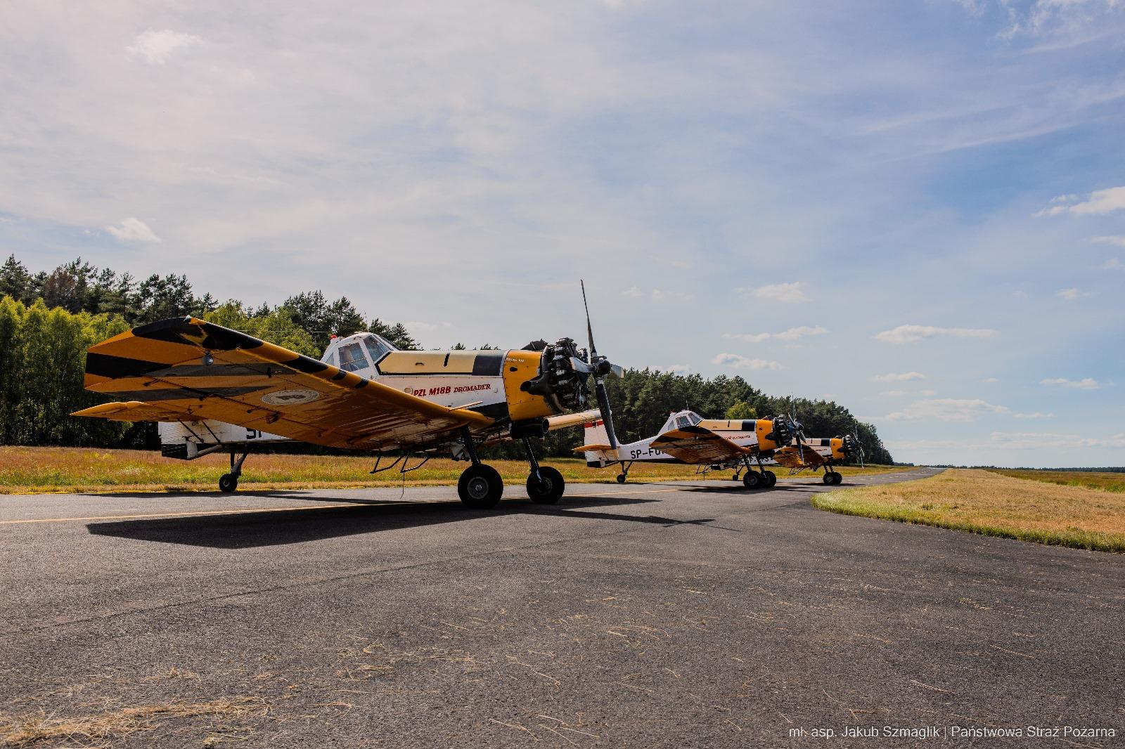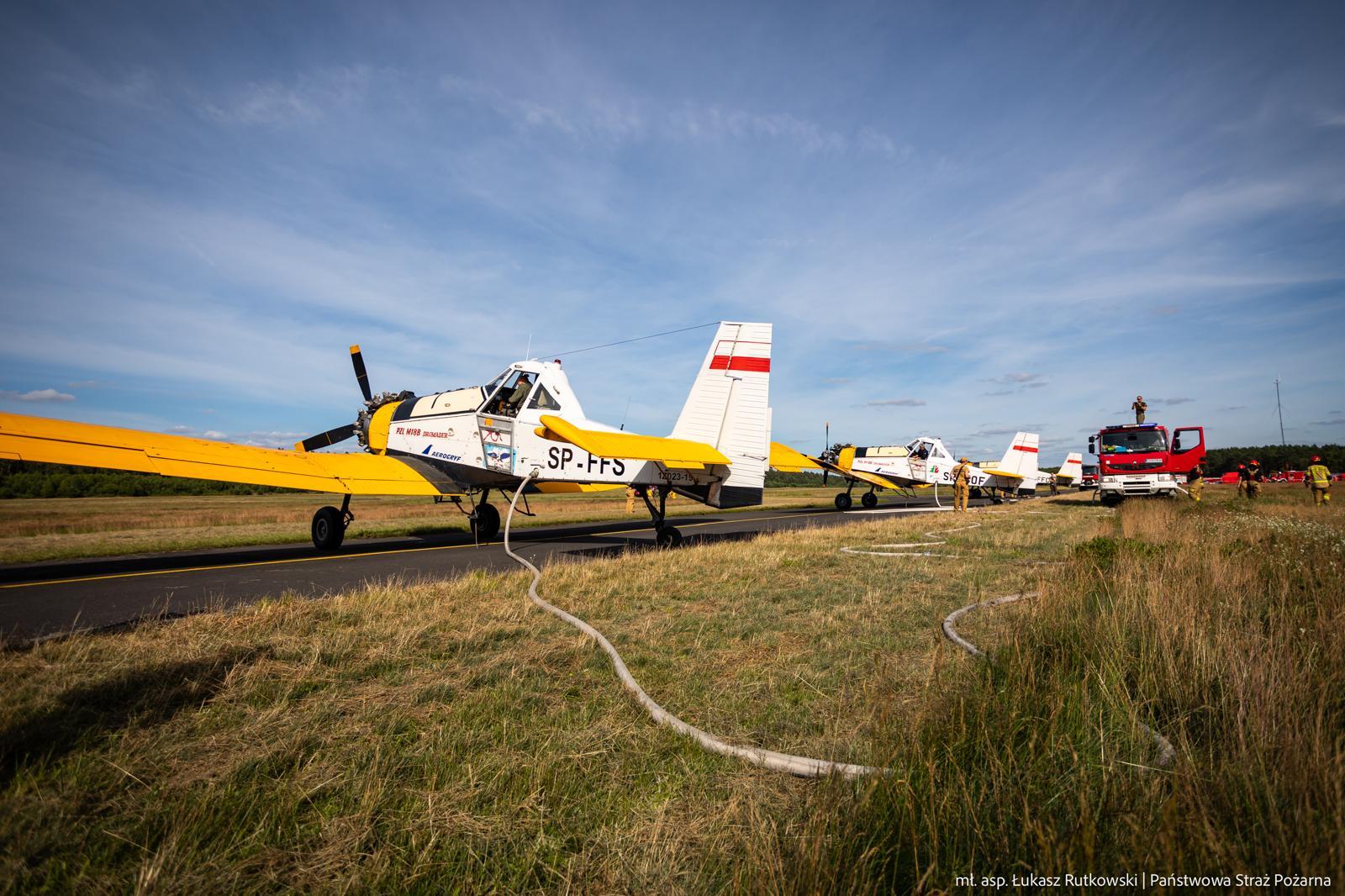 Na pomoc w gaszeniu gigantycznego pożaru lasu w okolicach Góry Hetmańskiej, Lasy Państwowe zaangażowały trzy samoloty gaśnicze typu Dromader. (Zdjęcia prezentują tankowanie maszyn, które wtórują w krajowych ćwiczeniach Drawsko2024).