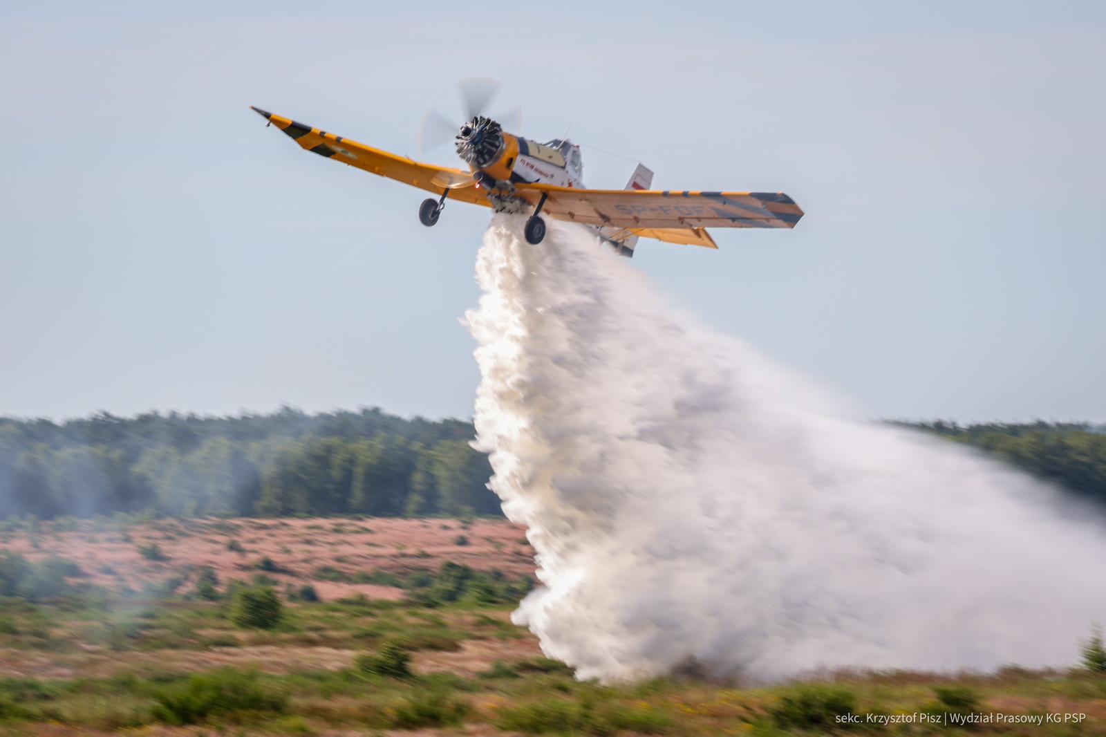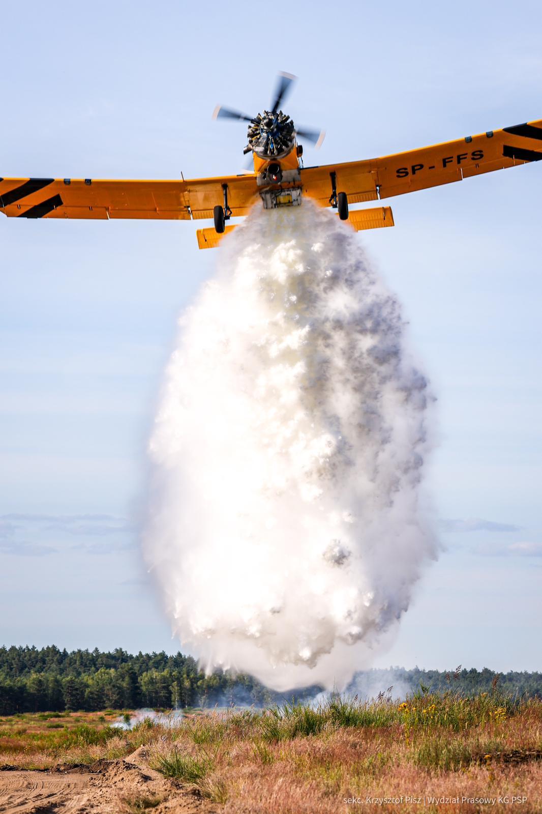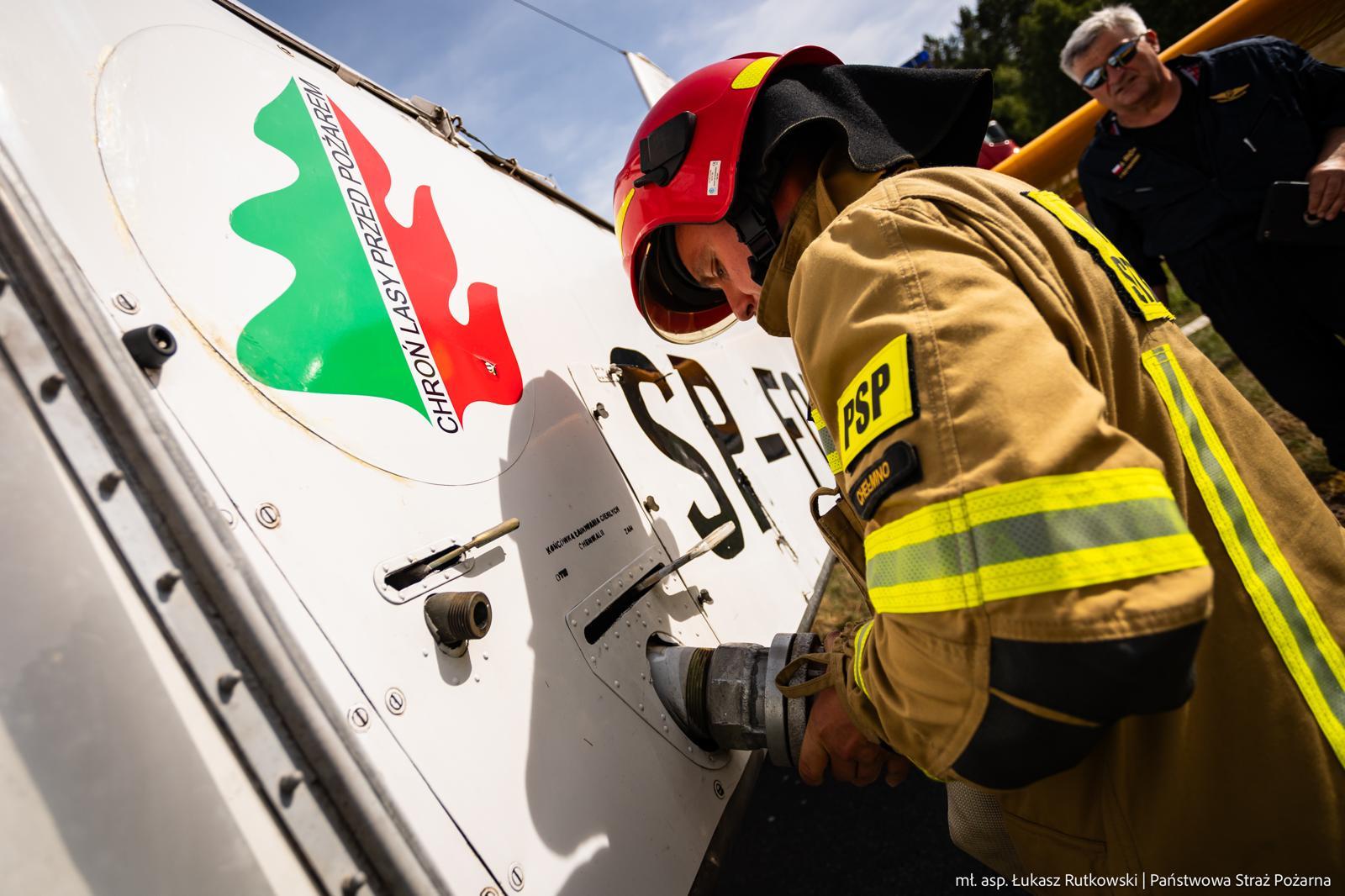 Na pomoc w gaszeniu gigantycznego pożaru lasu w okolicach Góry Hetmańskiej, Lasy Państwowe zaangażowały trzy samoloty gaśnicze typu Dromader. (Zdjęcia prezentują tankowanie maszyn, które wtórują w krajowych ćwiczeniach Drawsko2024).