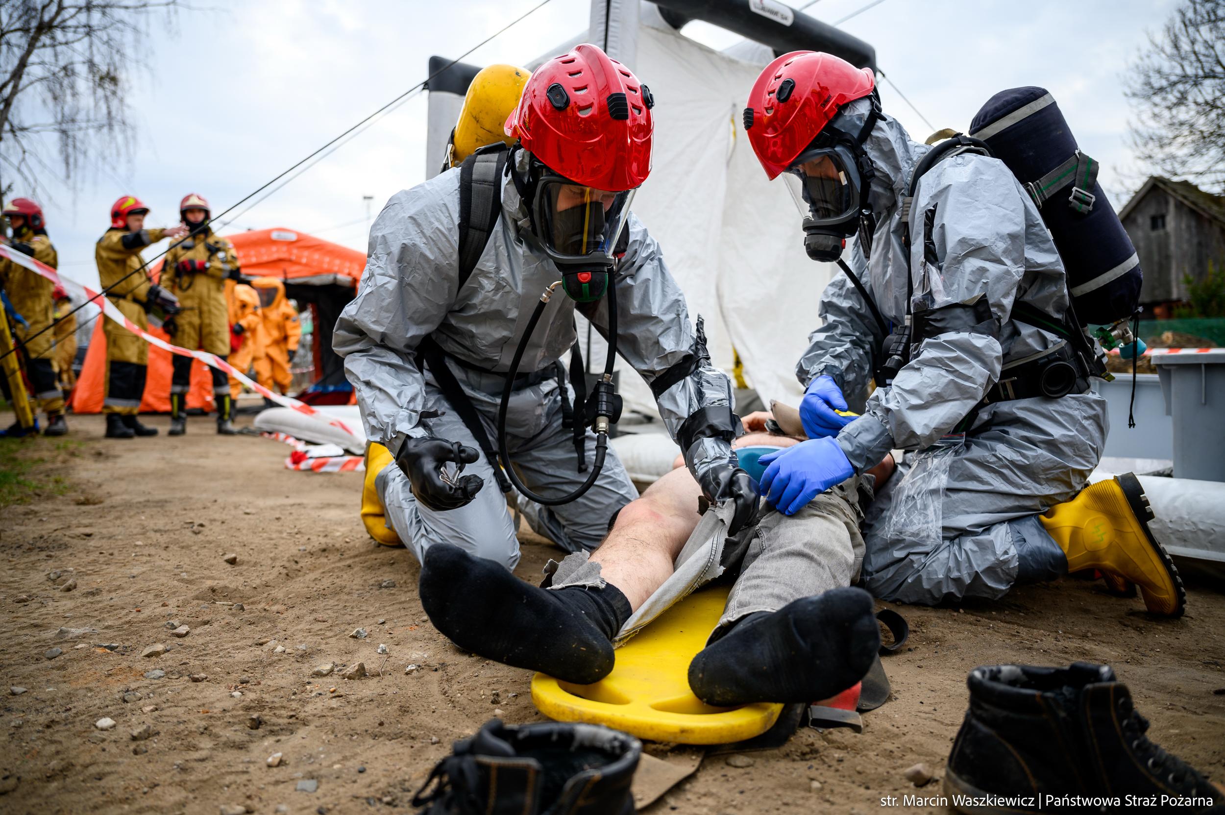 Nie zabrakło również scenariuszy wymagających współpracy z Wojewódzką Stacją Sanitarno-Epidemiologiczną w zakresie reagowania na zagrożenia biologiczne, w tym procedur dekontaminacji osób i pomieszczeń podejrzanych o skażenie niebezpiecznym wirusem.